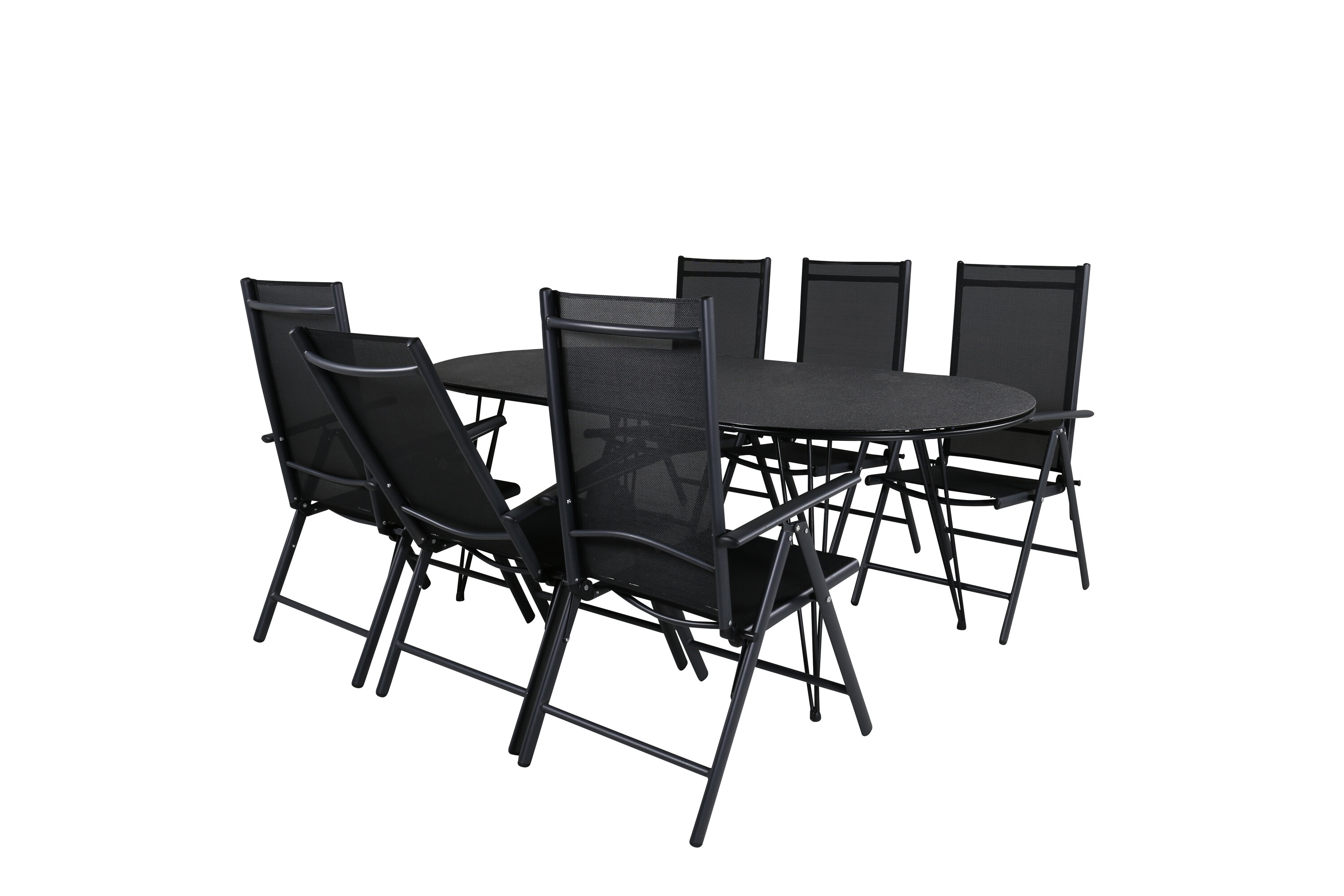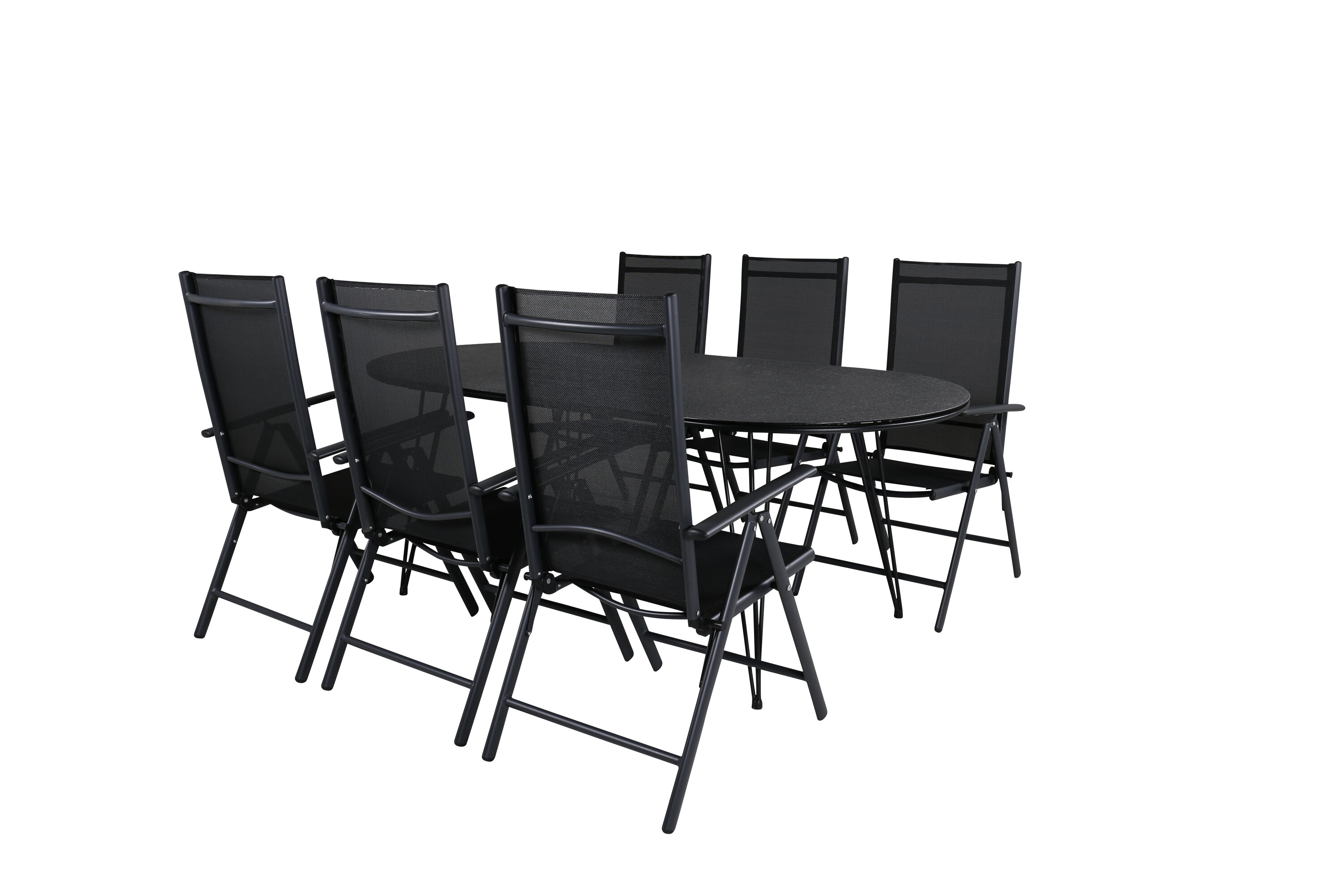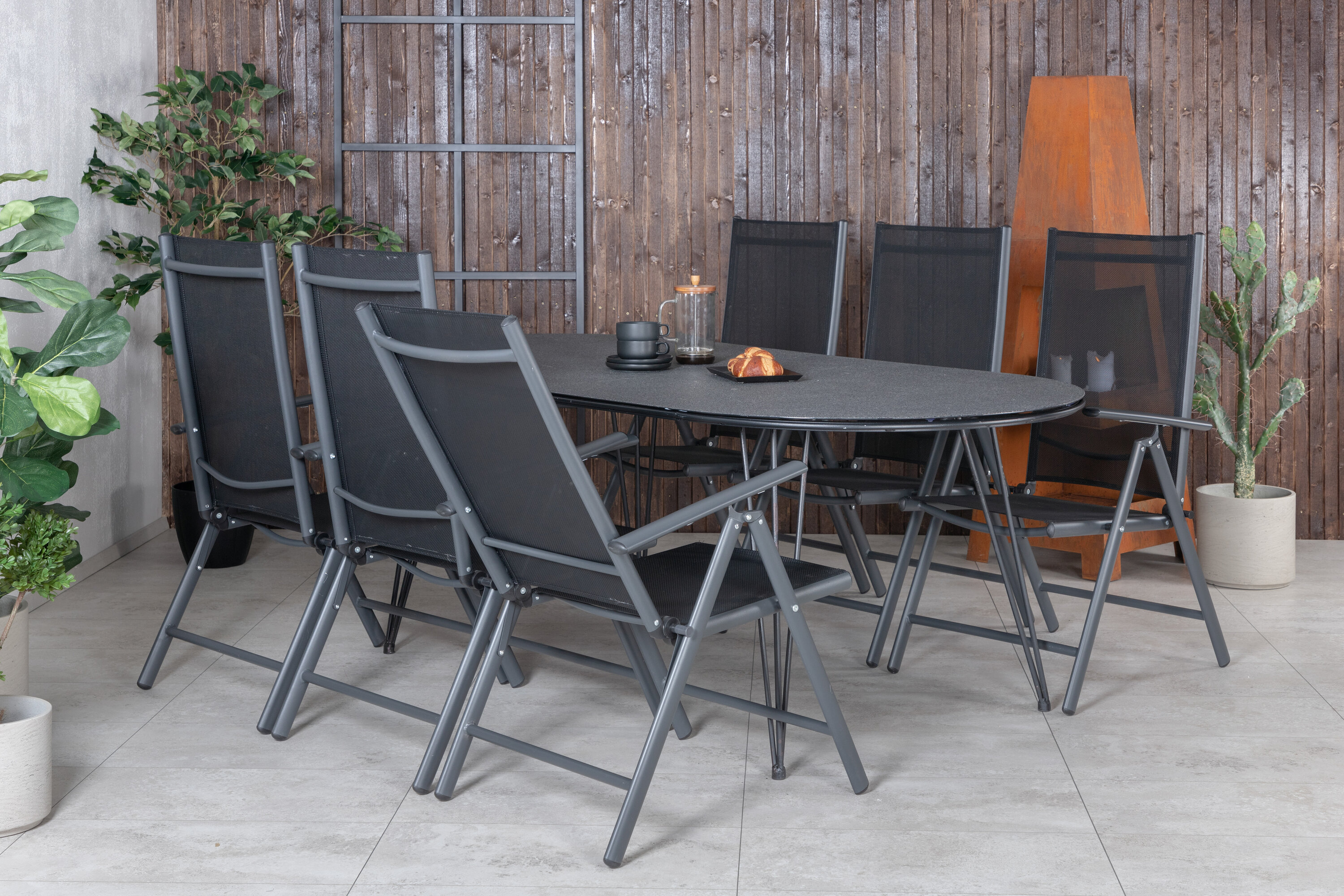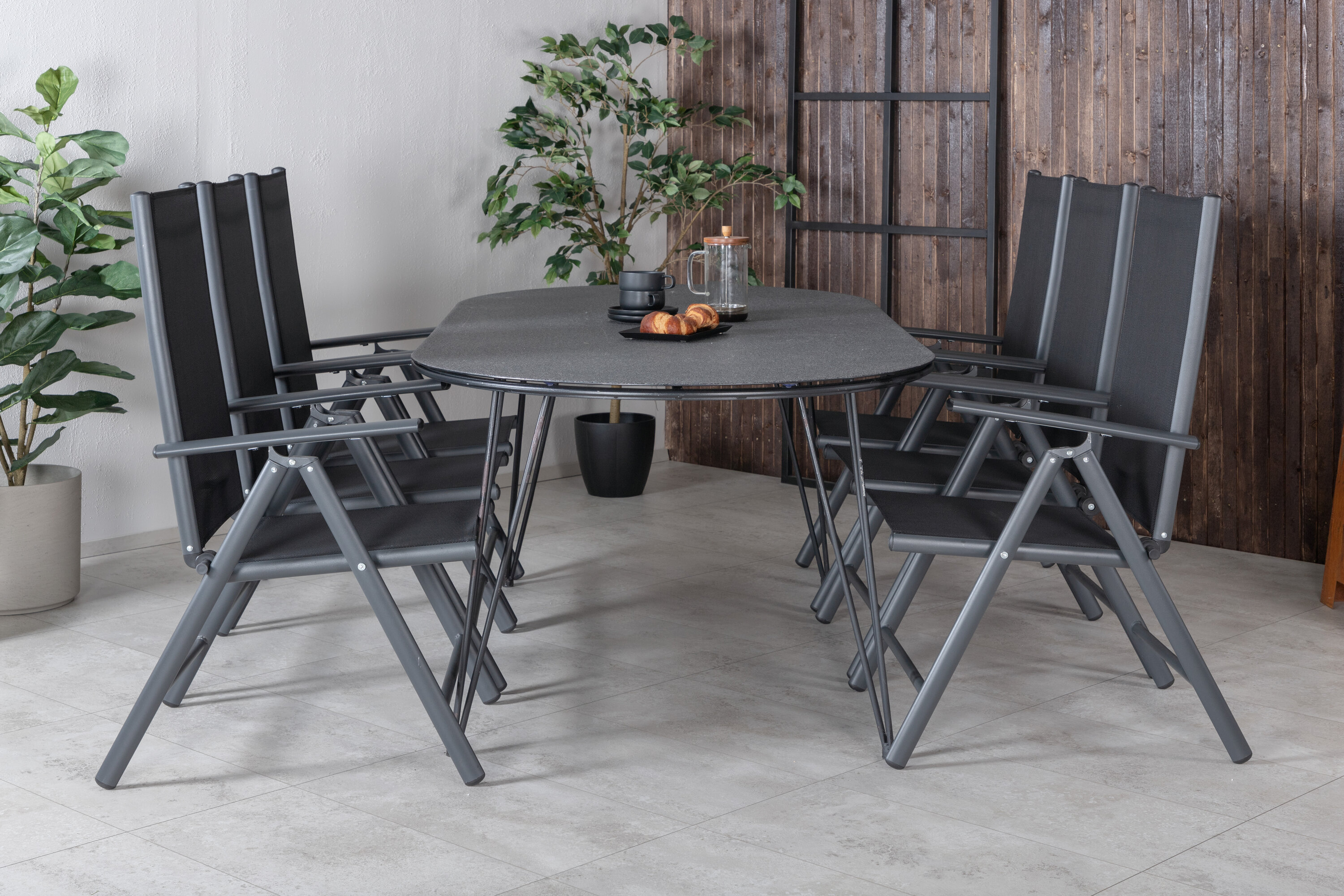 Mugav, praktiline ja stiilne! See toidugrupp on sel suvel teie terrassil edukas. Söögilaual Viga on elegantne pihustatud kiviklaasist lauaplaat. Siin koos kokkupandavate söögitoolidega sarjast Break. Reguleerige seljatuge mugavuse järgi ja nautige sel suvel koos pikki mõnusaid õhtusööke!
