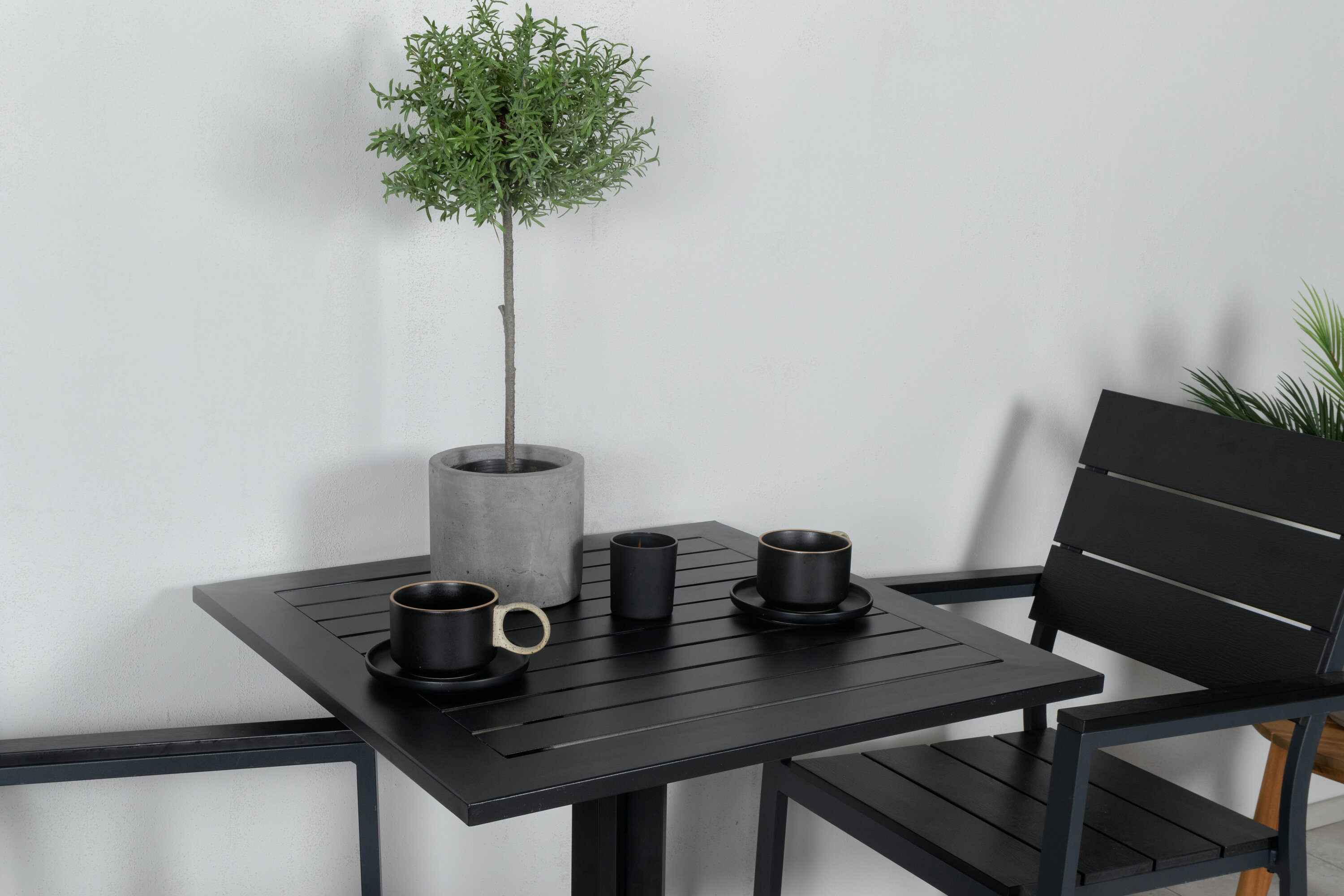Klassikaline kohvikulaud Way on edukas enamikul terrassidel. Siin on laud kombineeritud kahe söögitooliga sarjast Levels, mis on tõeline disainiikoon ja sobib sama hästi nii klassikasse kui ka kaasaegsesse keskkonda. Väike, ilus ja kaasaegne elegantse musta värvi toidugrupp, mis sobib ideaalselt rõdule või rõdule!