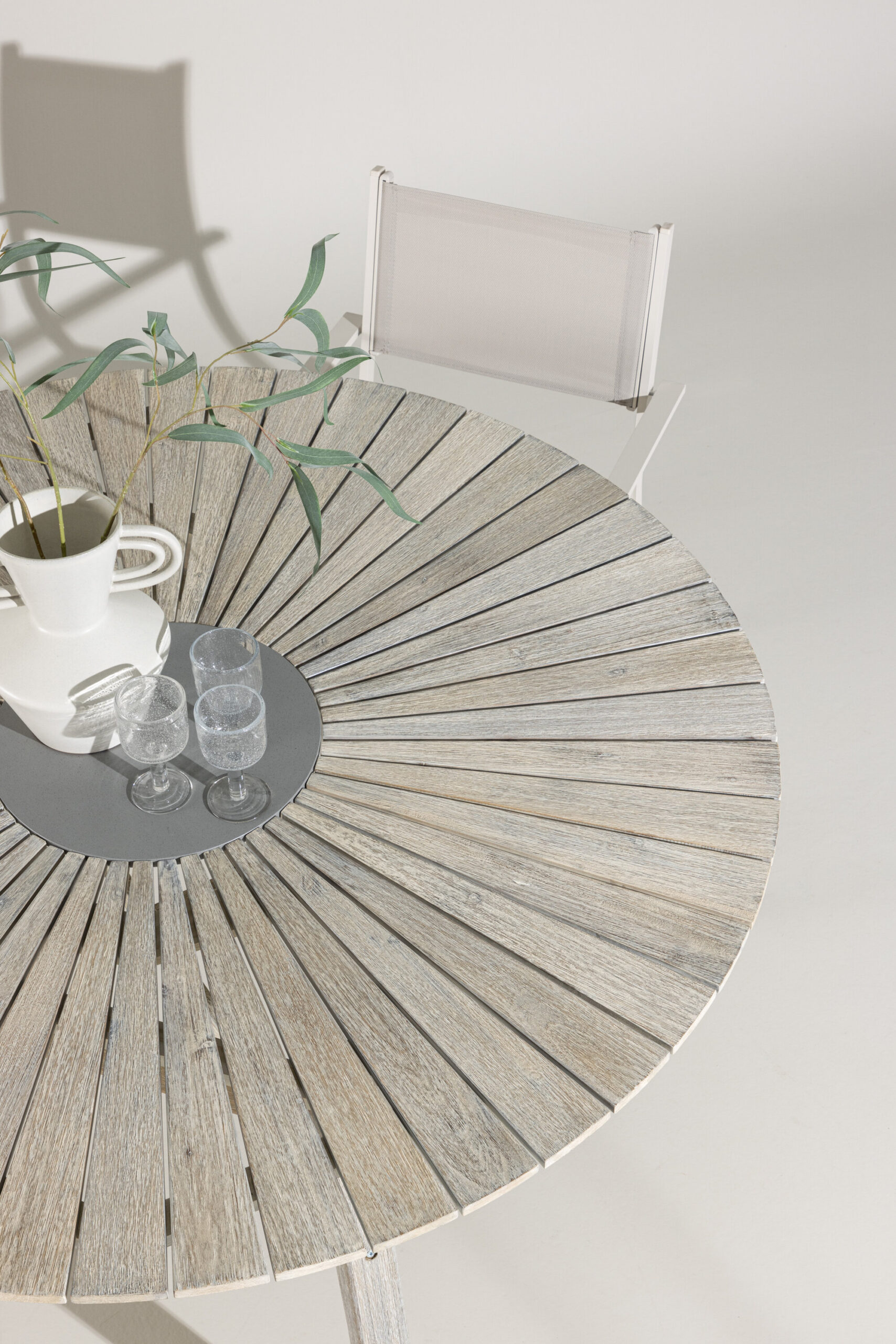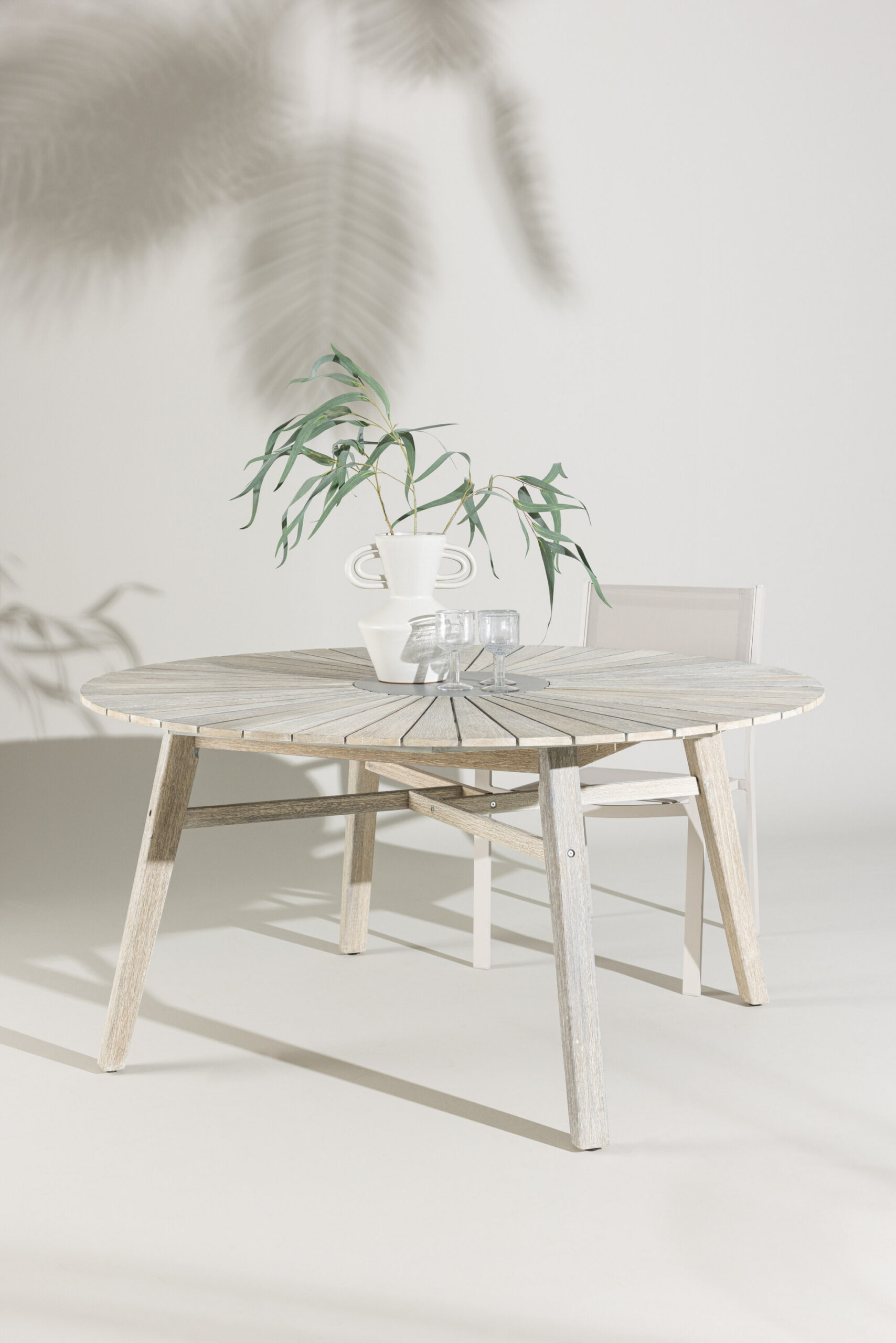 Looge võluv keskpunkt koos veetleva suvetundega, et koguda perekond! Rives on kaunilt heledaks värvitud akaatsiast ümmargune söögilaud, mille keskel on kiviplaat: nii pilkupüüdev kui praktiline, sest keegi ei satu servale. Parima vastupidavuse tagamiseks järgige meie hooldusjuhiseid ja teil on söögilaud, mis töötab sama hästi nii talveaias kui ka siseõuel!