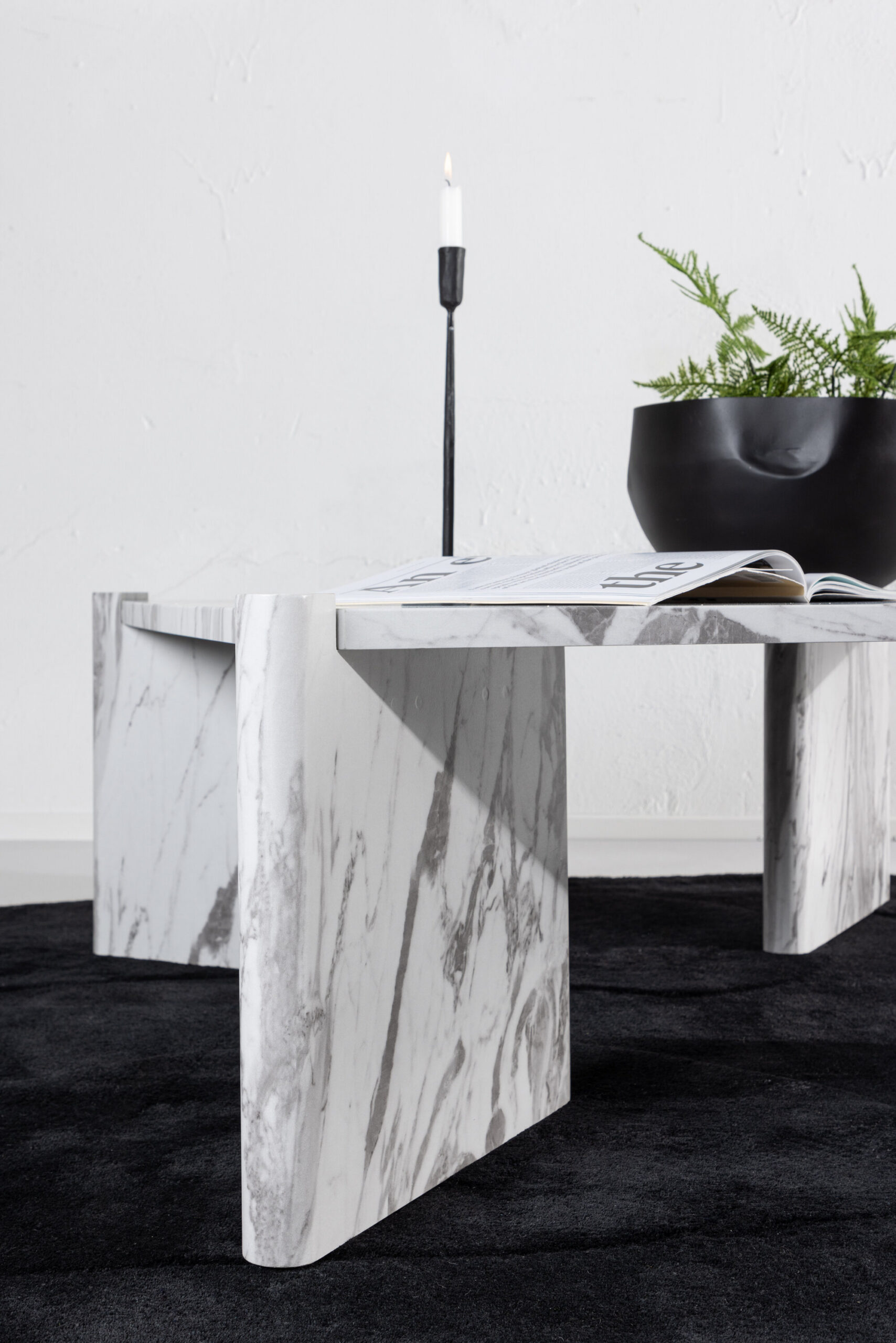 See elegantne kohvilaud on valmistatud kauni valge marmori välimusega MDF-materjalist. Hele värv ja ainulaadne marmor annab ruumile luksuse ja rafineerituse tunde.