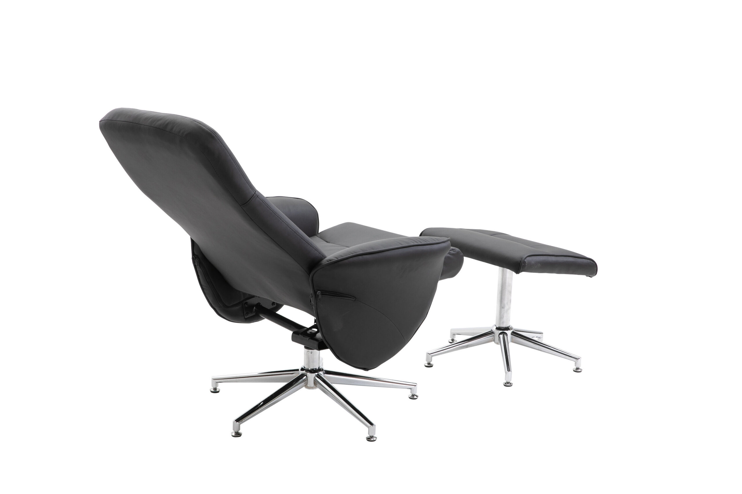 Experience maximum comfort and relaxation in our trend -safe and smart recliner armchair with Ottoman! The Rolf series not only has stylish design but also a great focus on high comfort. The backrest is foldable for optimal resting position and the footstool allows you to stretch your legs and enhance the relaxed feeling. The pompous black upholstery is in Smart PU artificial leather and is easy to match with other decor.