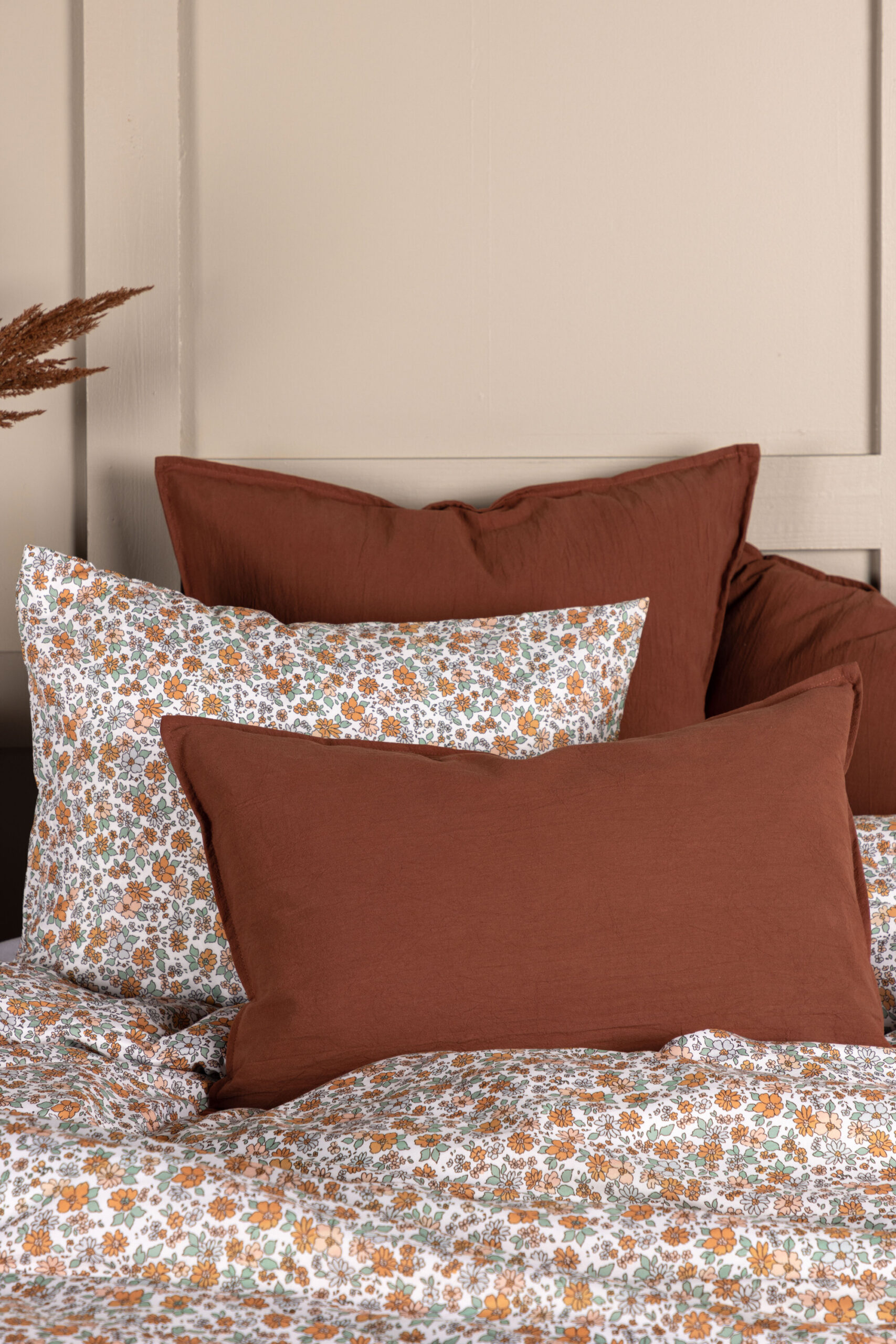 Padjapüür, mis kiirgab õdusaid sügispäevi ja sooja heaolutunnet! Sellel Ronja sarja padjapüüril on nõuetele vastav puuvillane kangas ning see on saadaval mitmes erinevas värvitoonis ja suuruses, mida on lihtne varieerida ja kombineerida teiste padjapüüridega. Siin on roostepunane värv, mis sobib hästi moodsate heledate toonidega. Kaunista oma diivan või voodi, et luua oma kodus pehme ja kutsuv tunne!