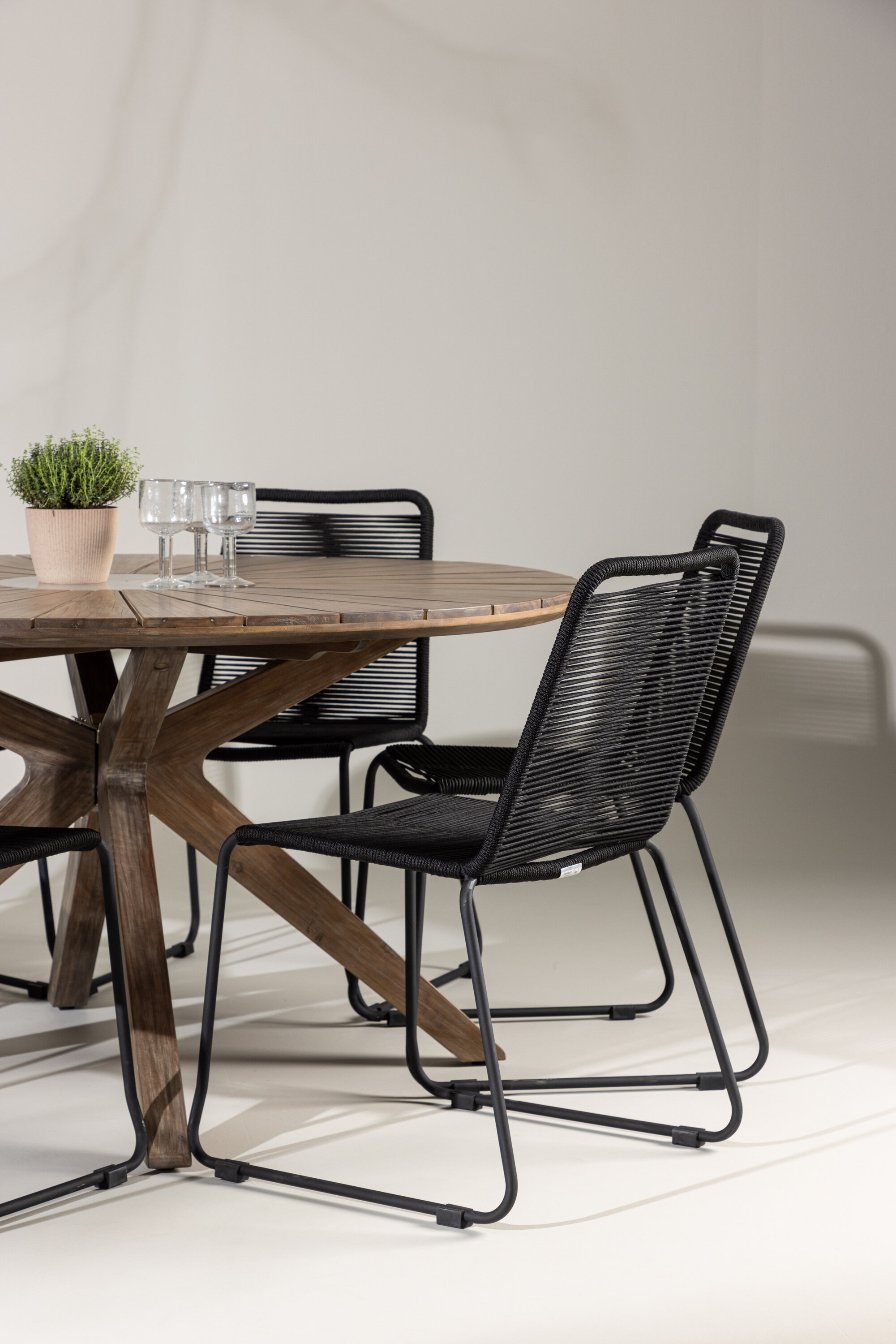 Sügavas mustas toonis Lindose toolid kiirgavad trendikat ja elegantset esteetikat. Iste on valmistatud vastupidavast köismaterjalist, pakkudes mugavat ja paindlikku tunnet. Elegantne terasraam tagab stabiilsuse ja tugevuse, täiustades samal ajal kaasaegset disaini.