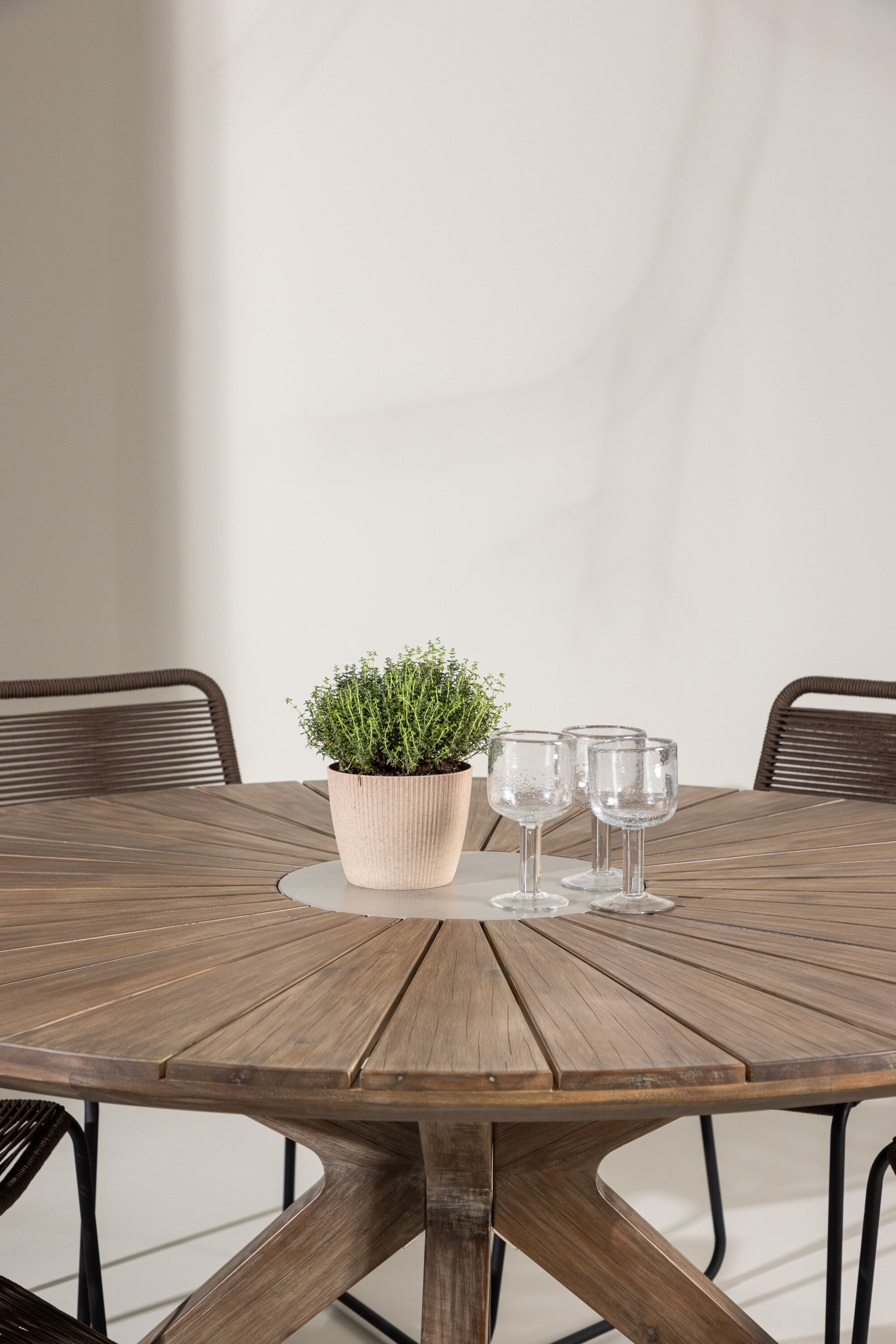 Akaatsiapuust valmistatud Rosario laud toob teie terrassile sooja ja kutsuva atmosfääri. 140 cm läbimõõduga pakub see mõnusate õuehetkede veetmiseks piisavalt ruumi kuuele inimesele.