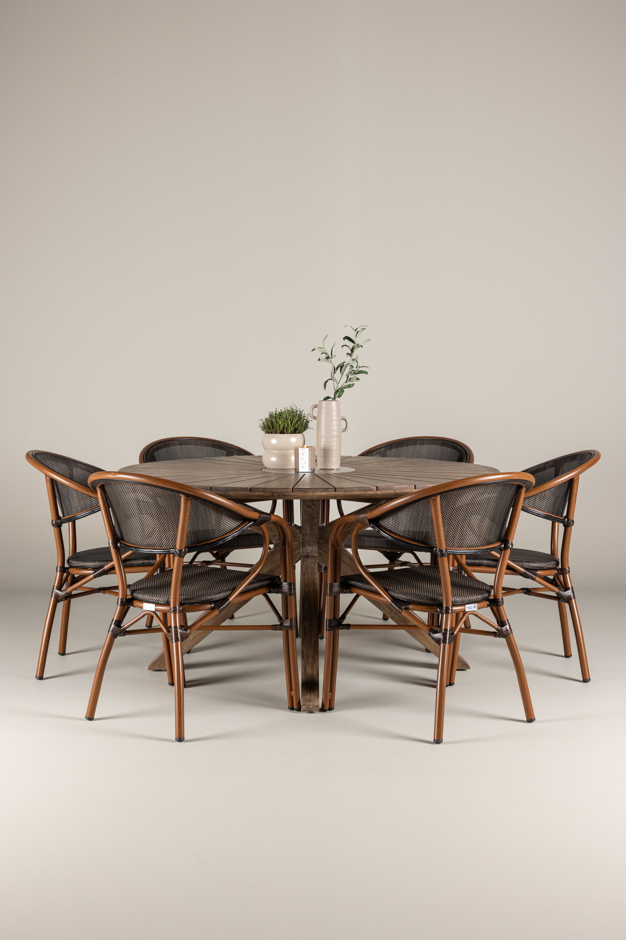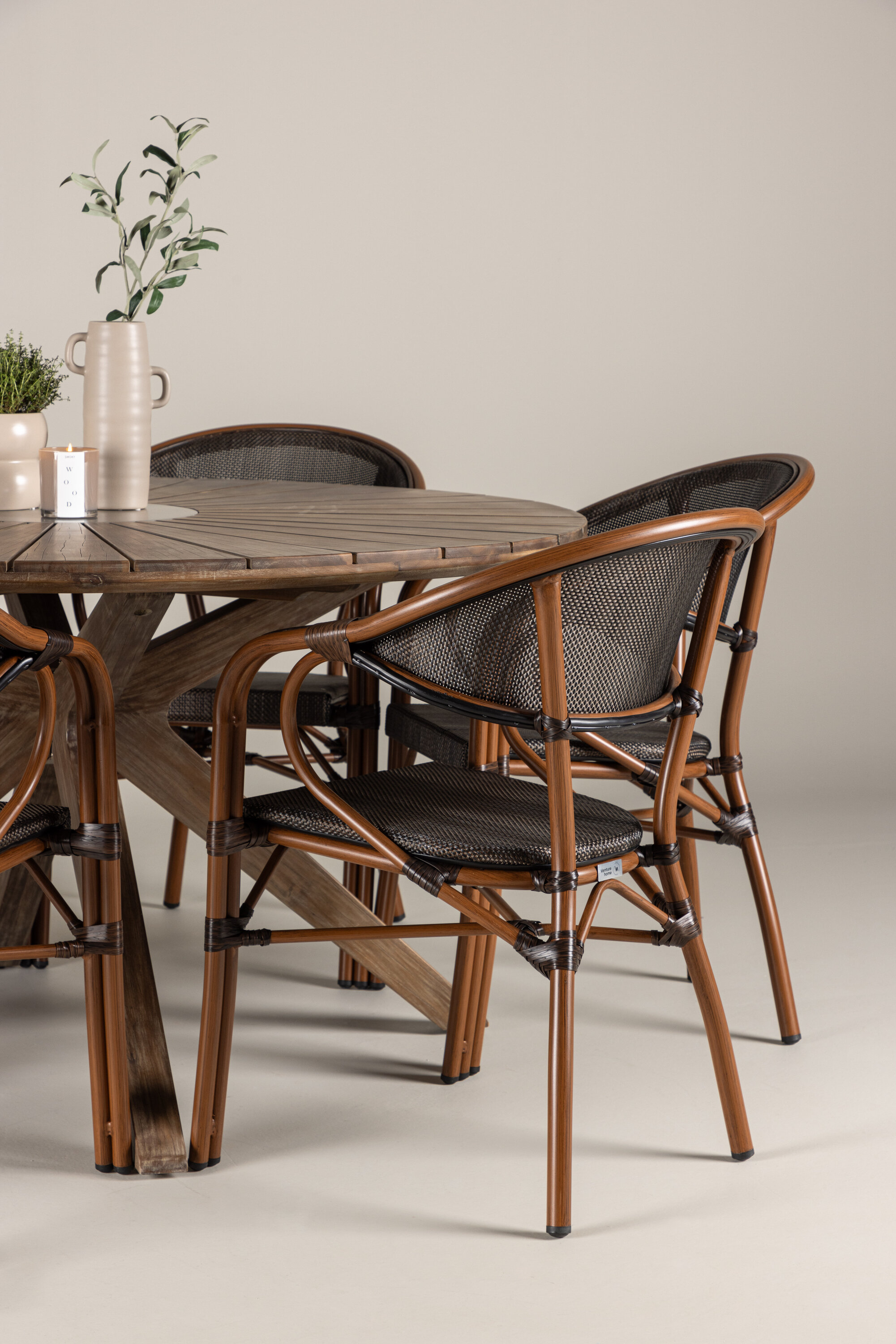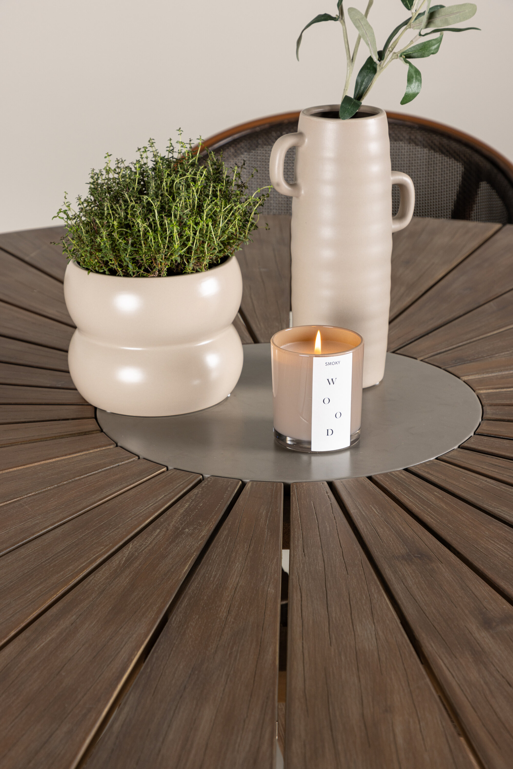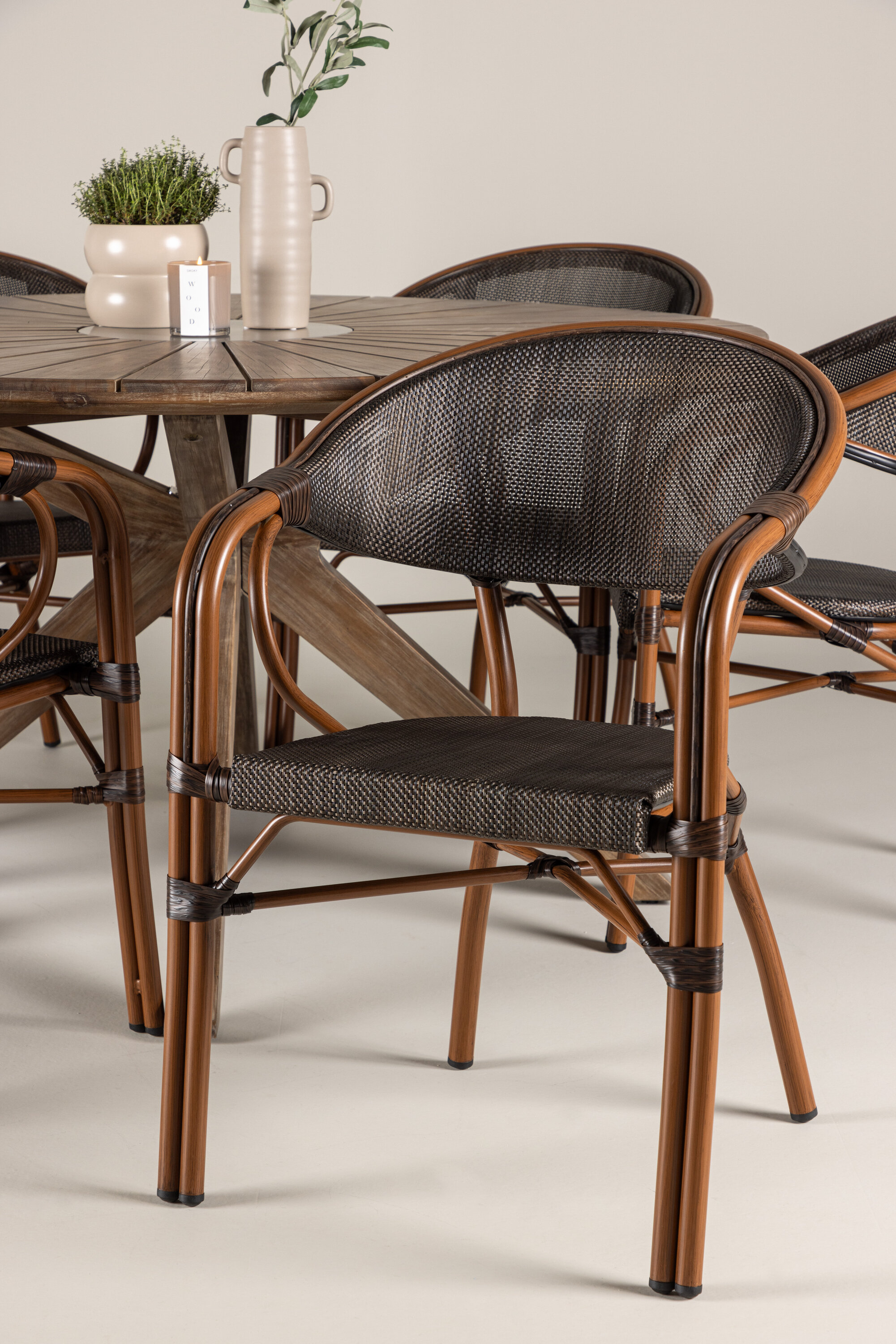 Selle ansambli keskpunkt on Rosario laud, millel on pruunist akaatsiapuidust konstruktsioon ja 140 cm läbimõõt. Selle avar suurus mahutab mugavalt kuus inimest meeldivateks koosviibimisteks õues.
