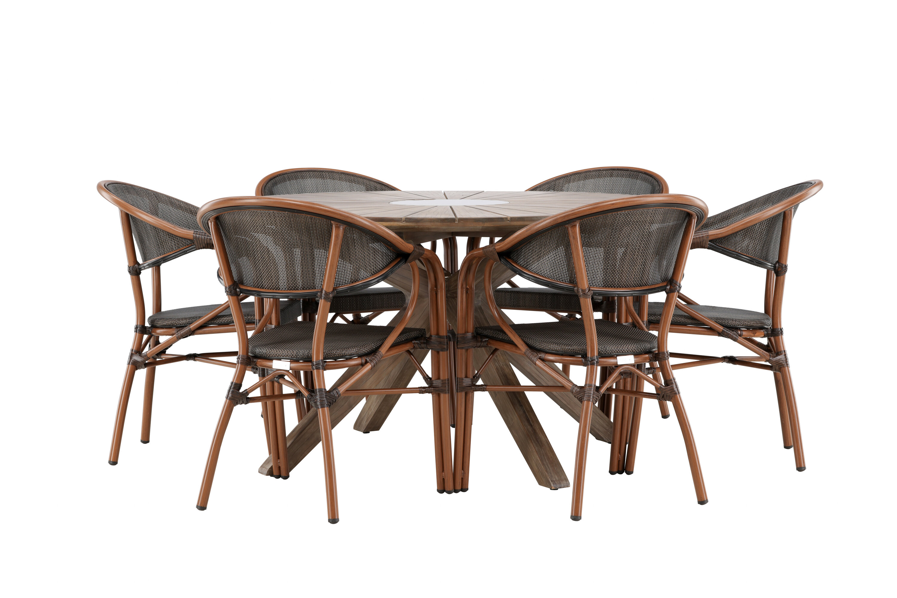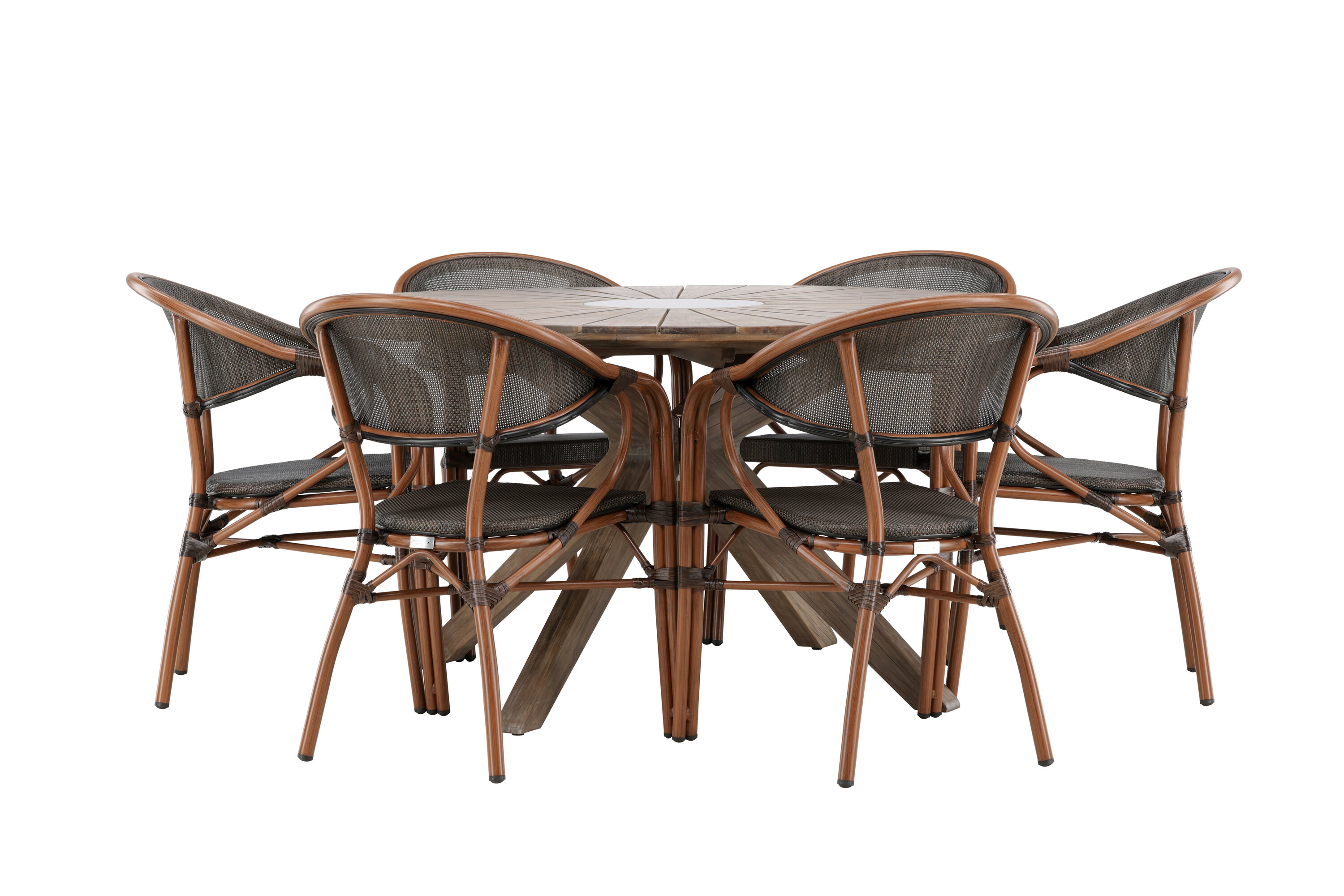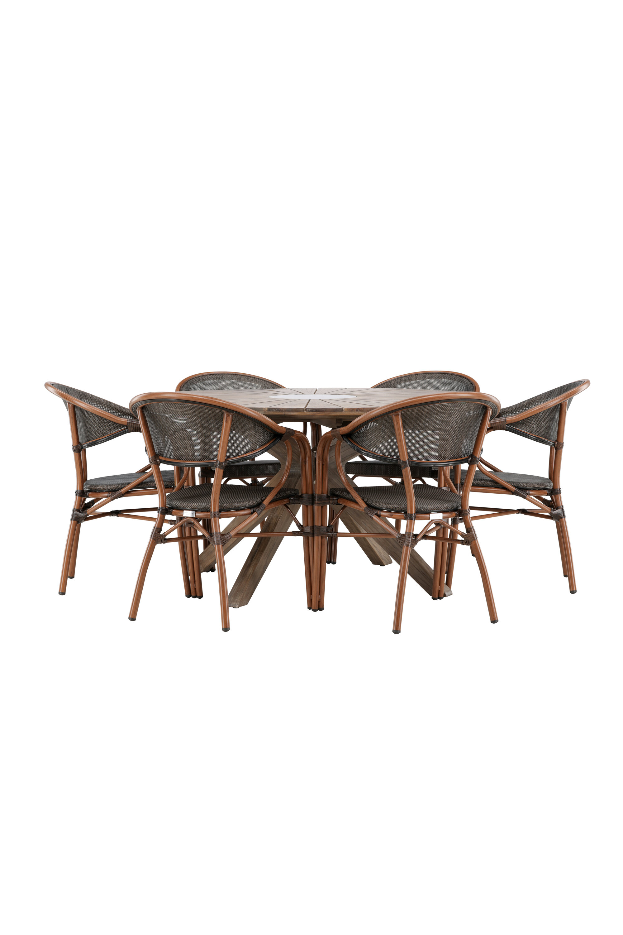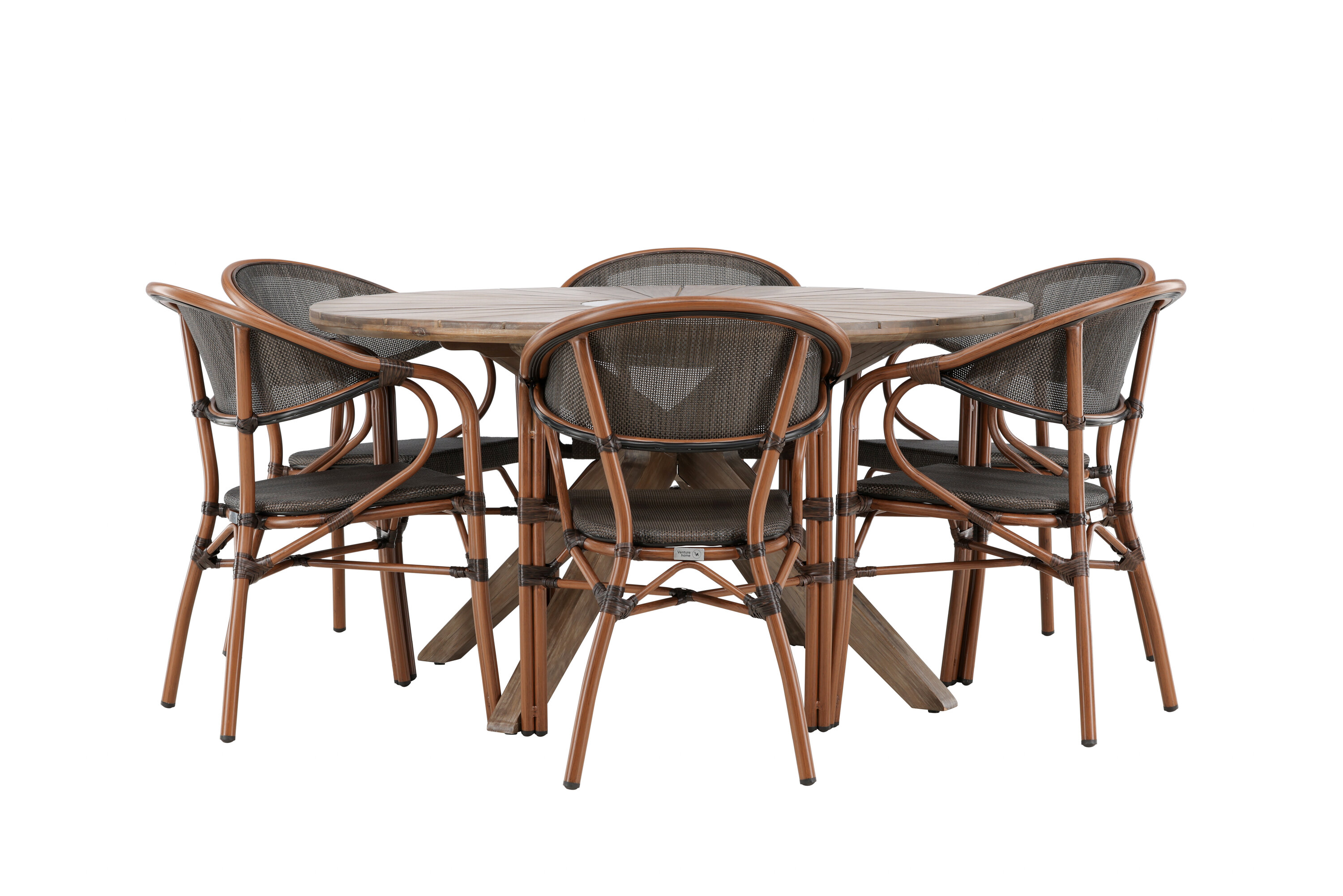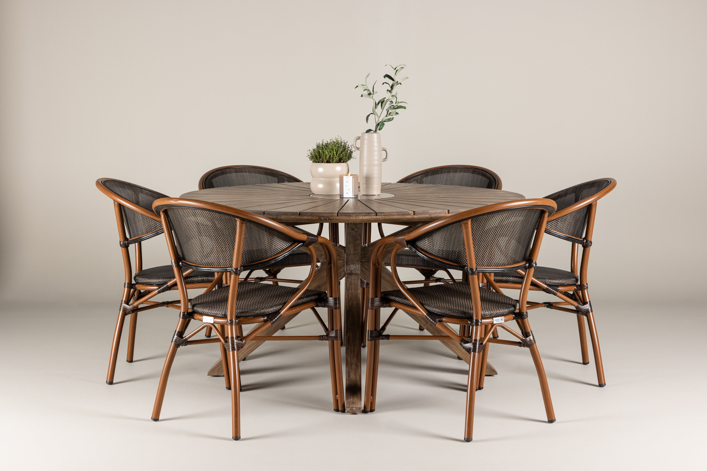 Selle ansambli keskpunkt on Rosario laud, millel on pruunist akaatsiapuidust konstruktsioon ja 140 cm läbimõõt. Selle avar suurus mahutab mugavalt kuus inimest meeldivateks koosviibimisteks õues.