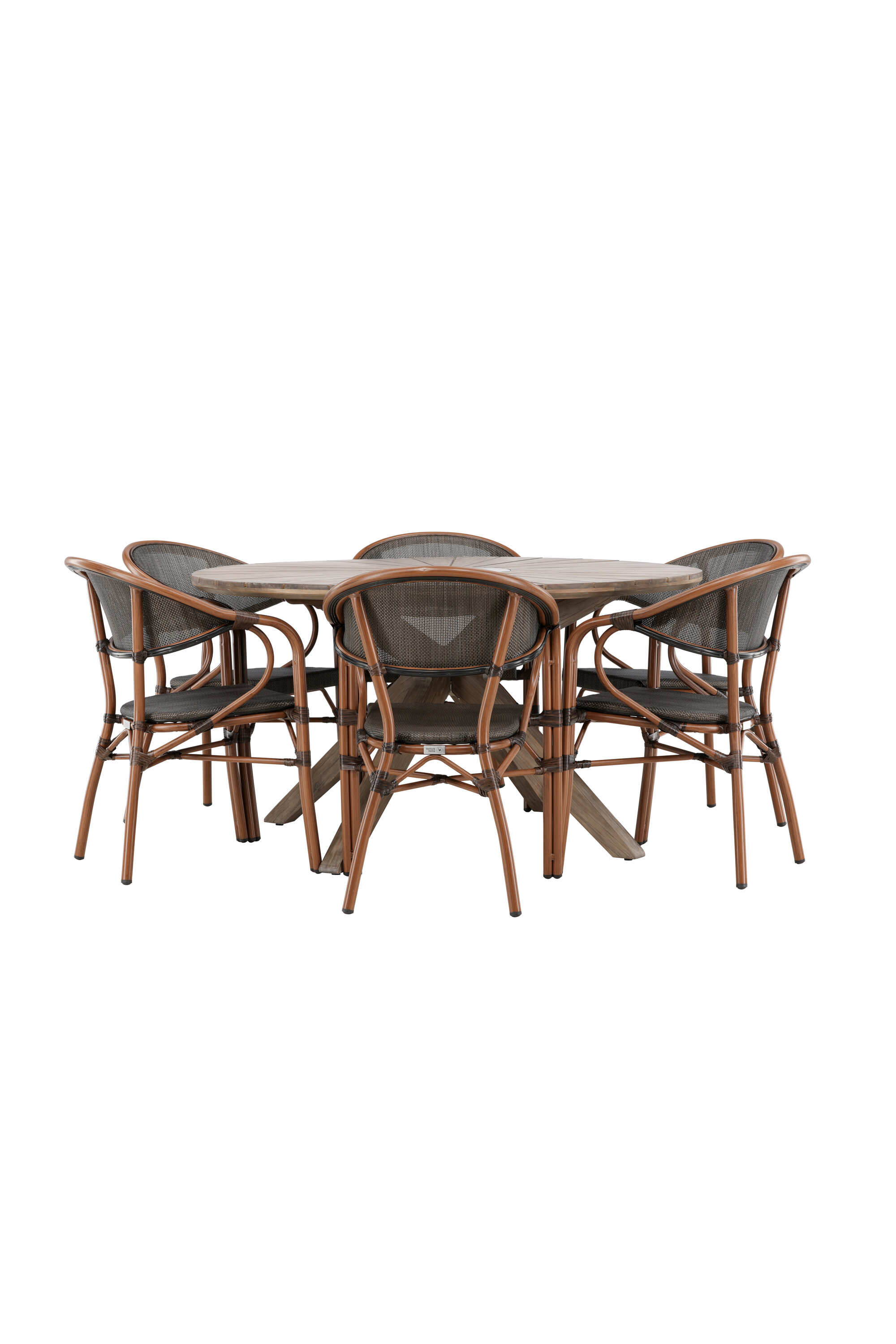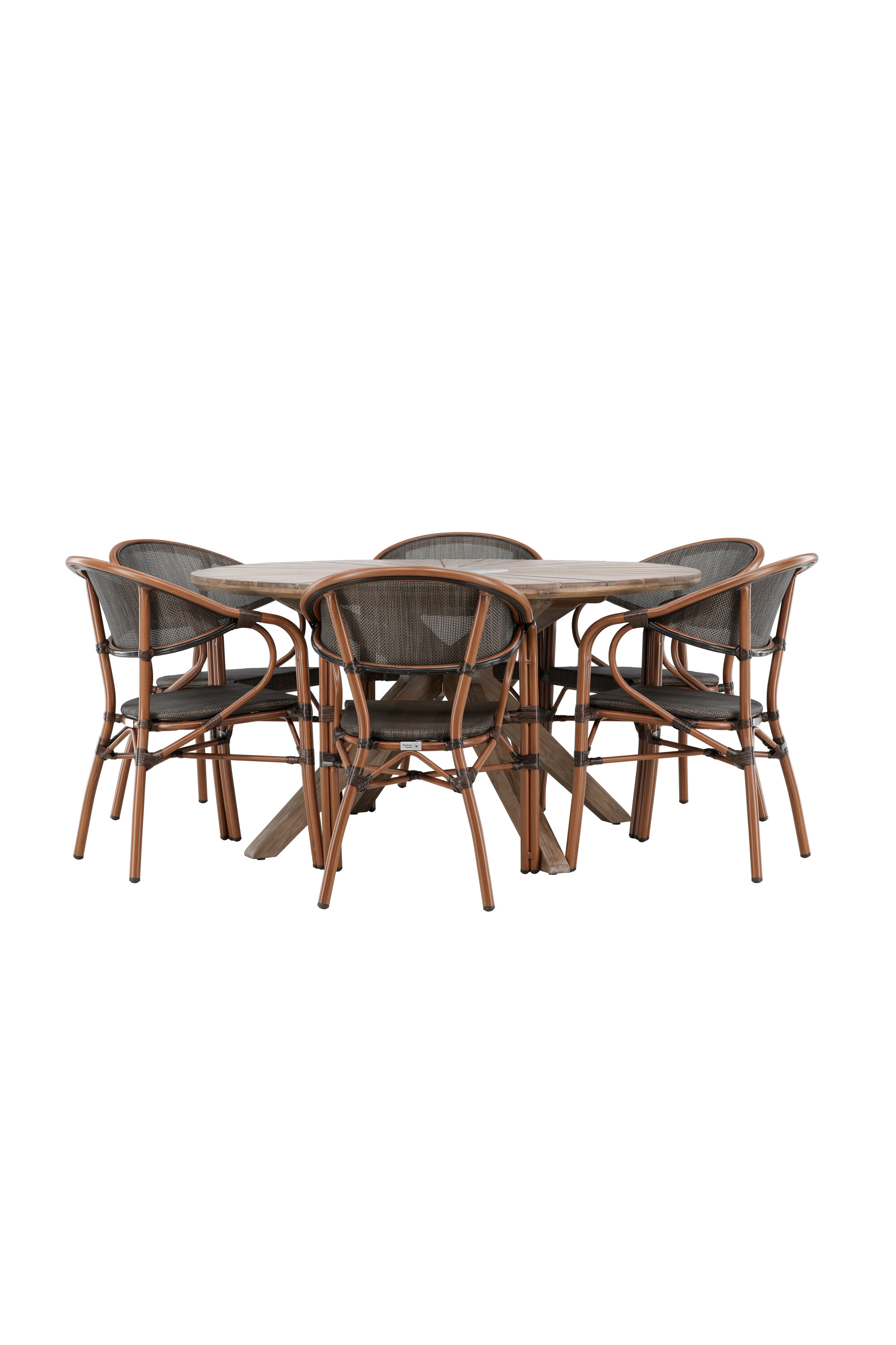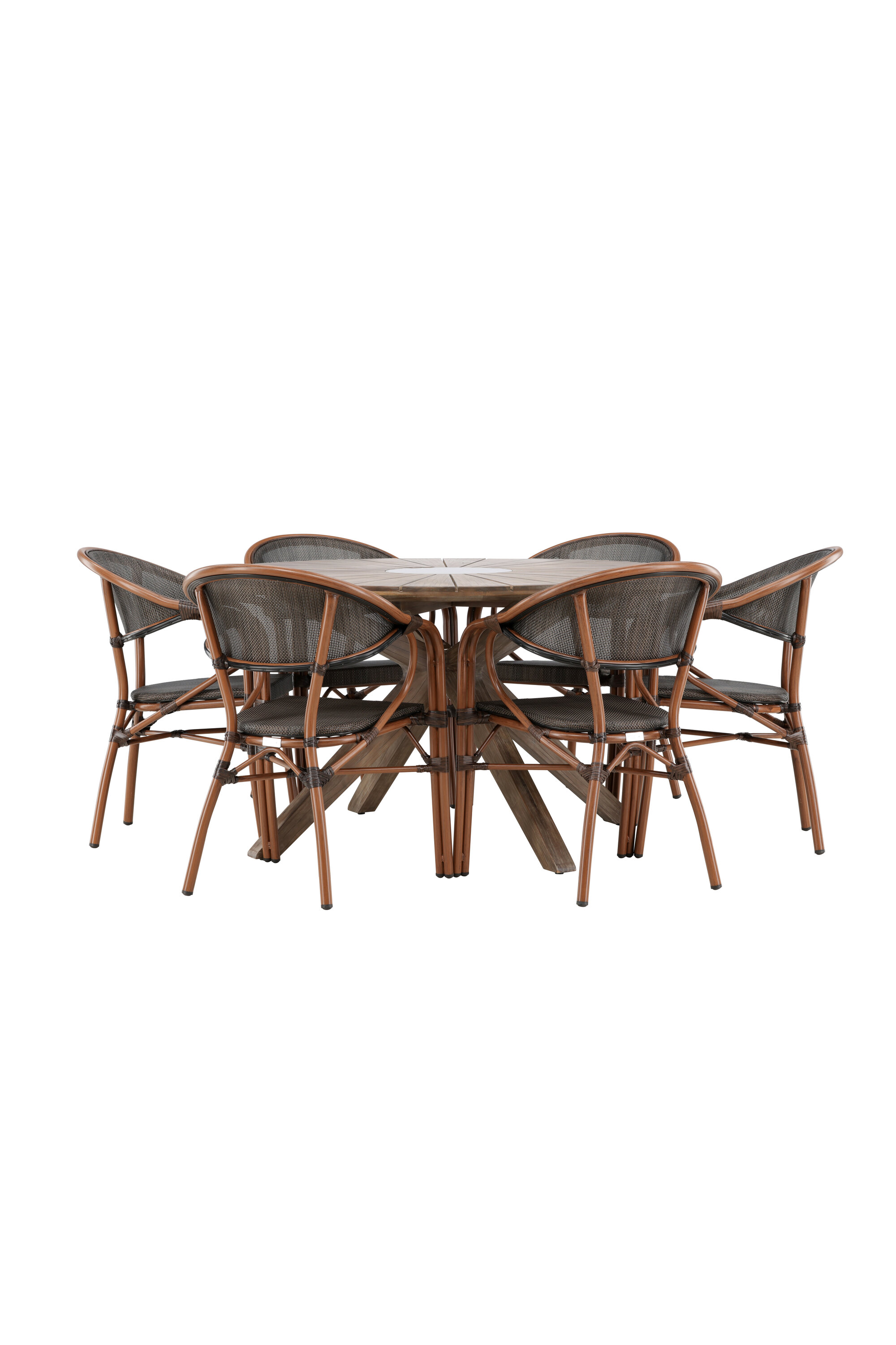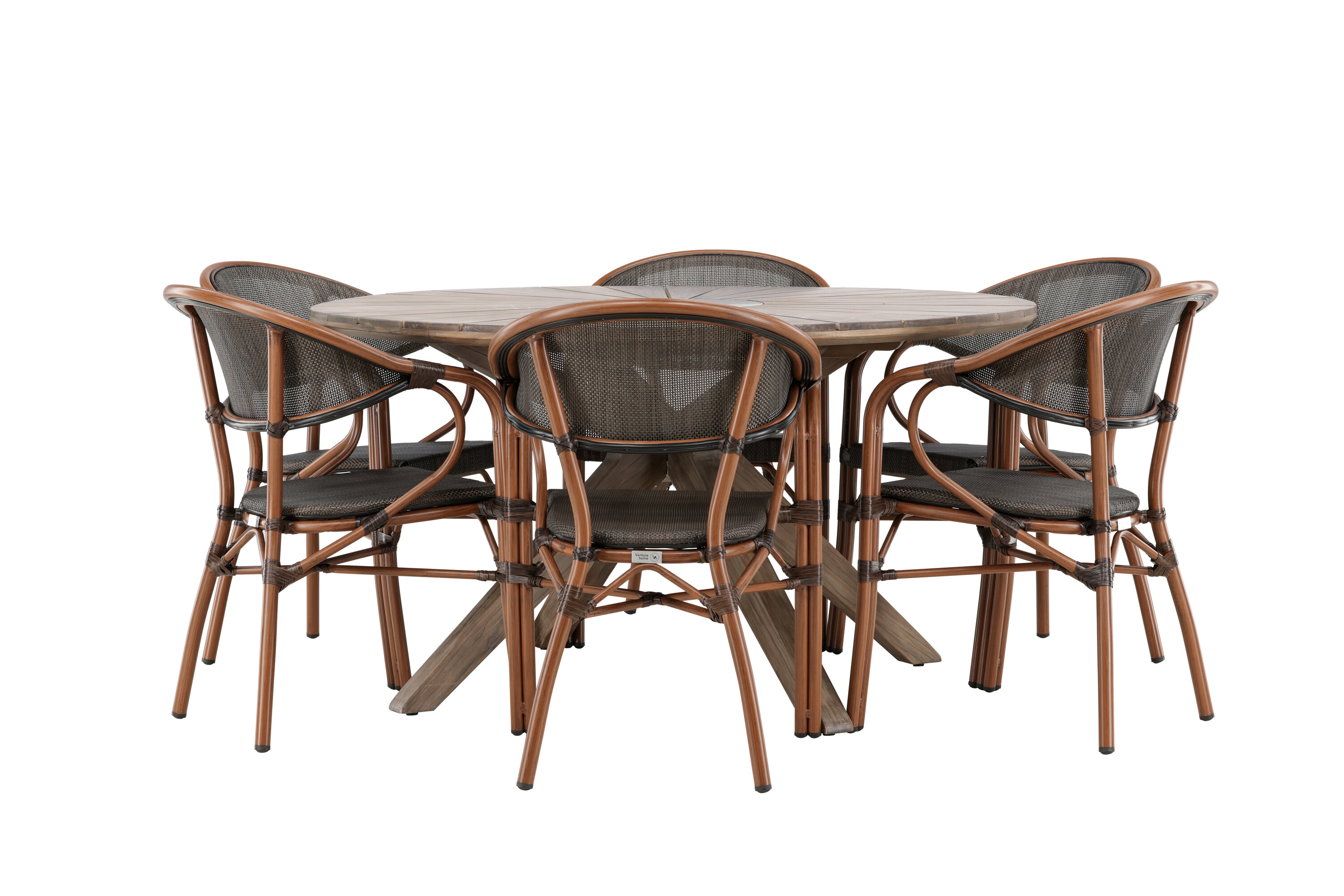 Selle ansambli keskpunkt on Rosario laud, millel on pruunist akaatsiapuidust konstruktsioon ja 140 cm läbimõõt. Selle avar suurus mahutab mugavalt kuus inimest meeldivateks koosviibimisteks õues.