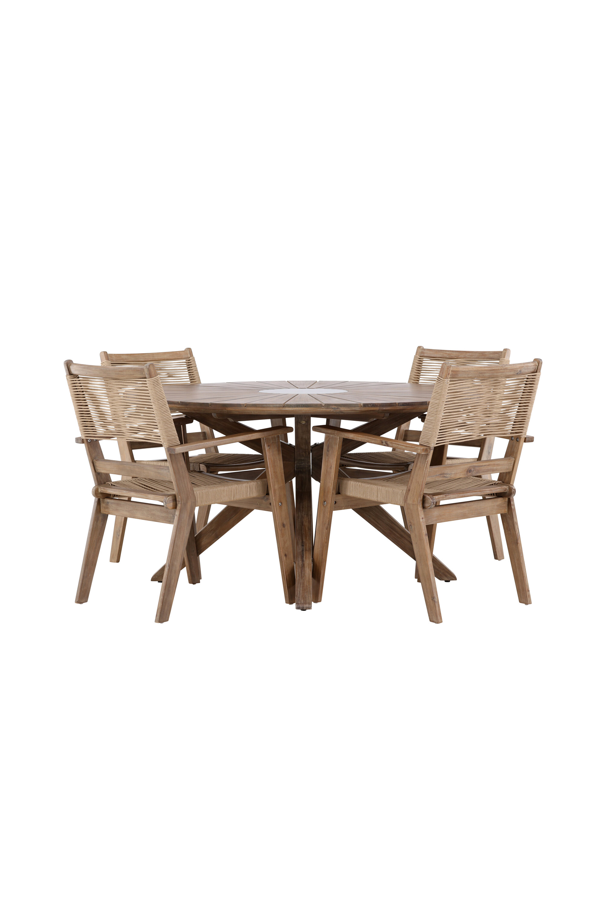 Rosario laud on selle ansambli keskpunkt, millel on muljetavaldav pruunist akaatsiapuust konstruktsioon ja 140 cm läbimõõt. See on ideaalne koht meeldivateks vabas õhus koosviibimisteks sõprade ja perega.