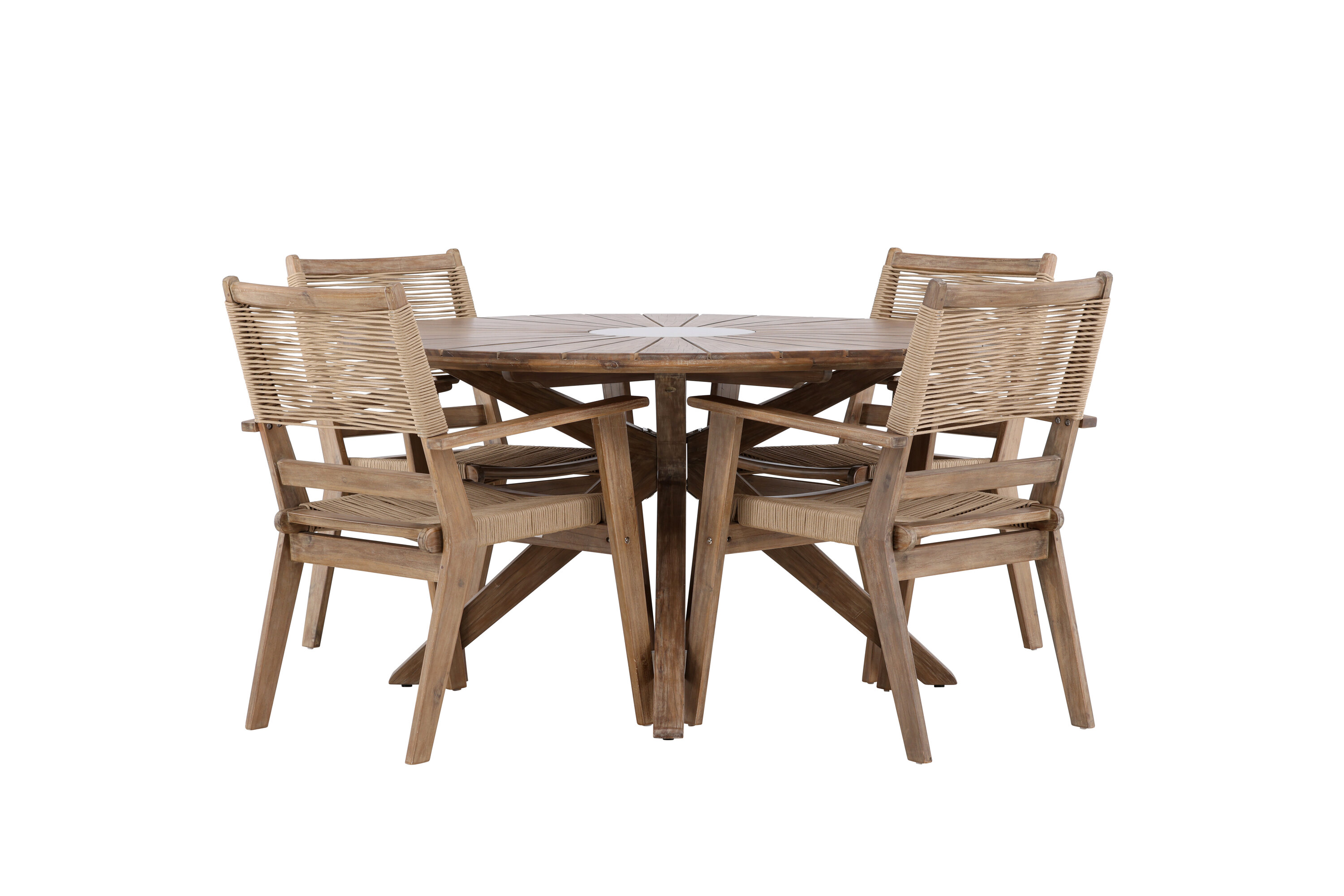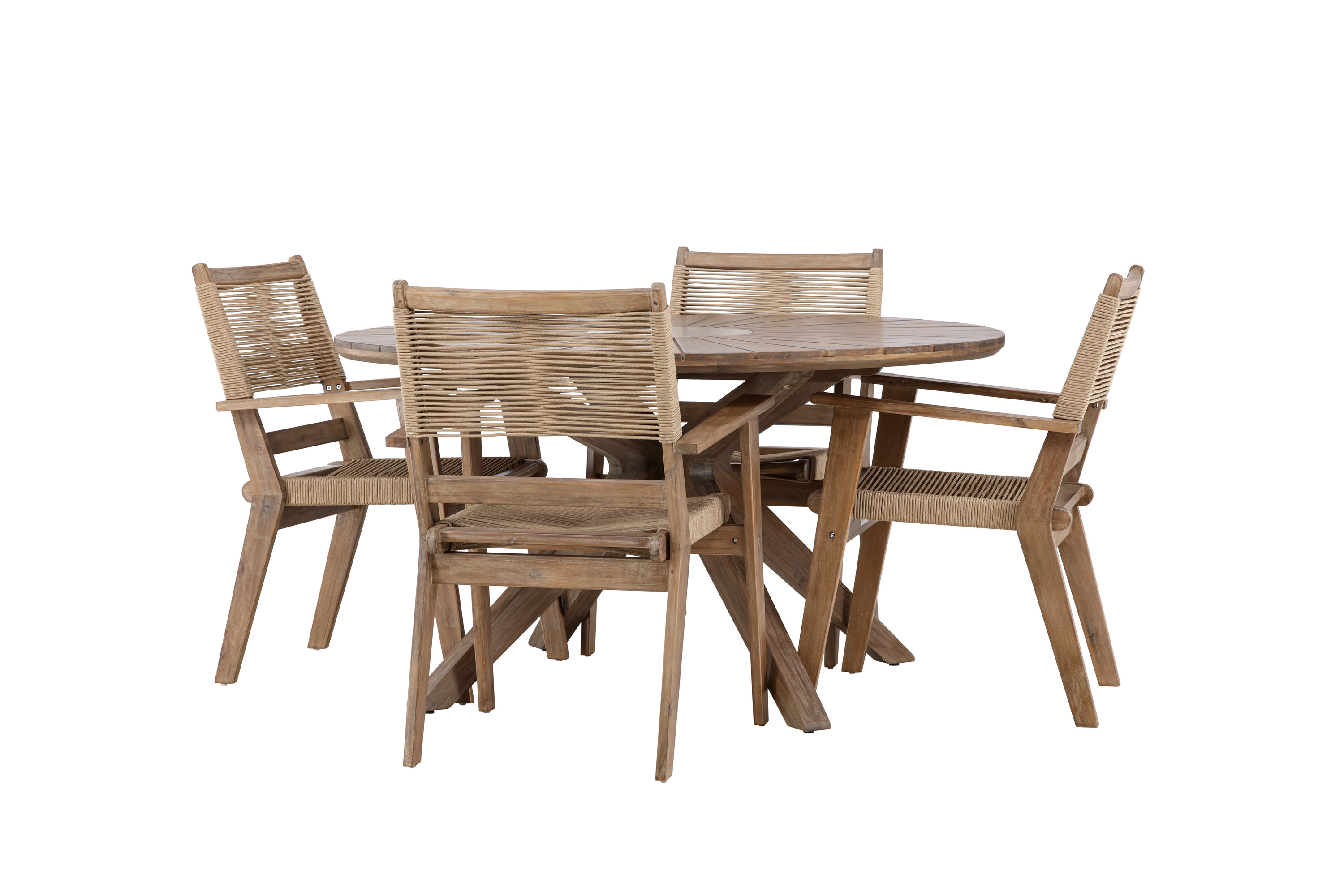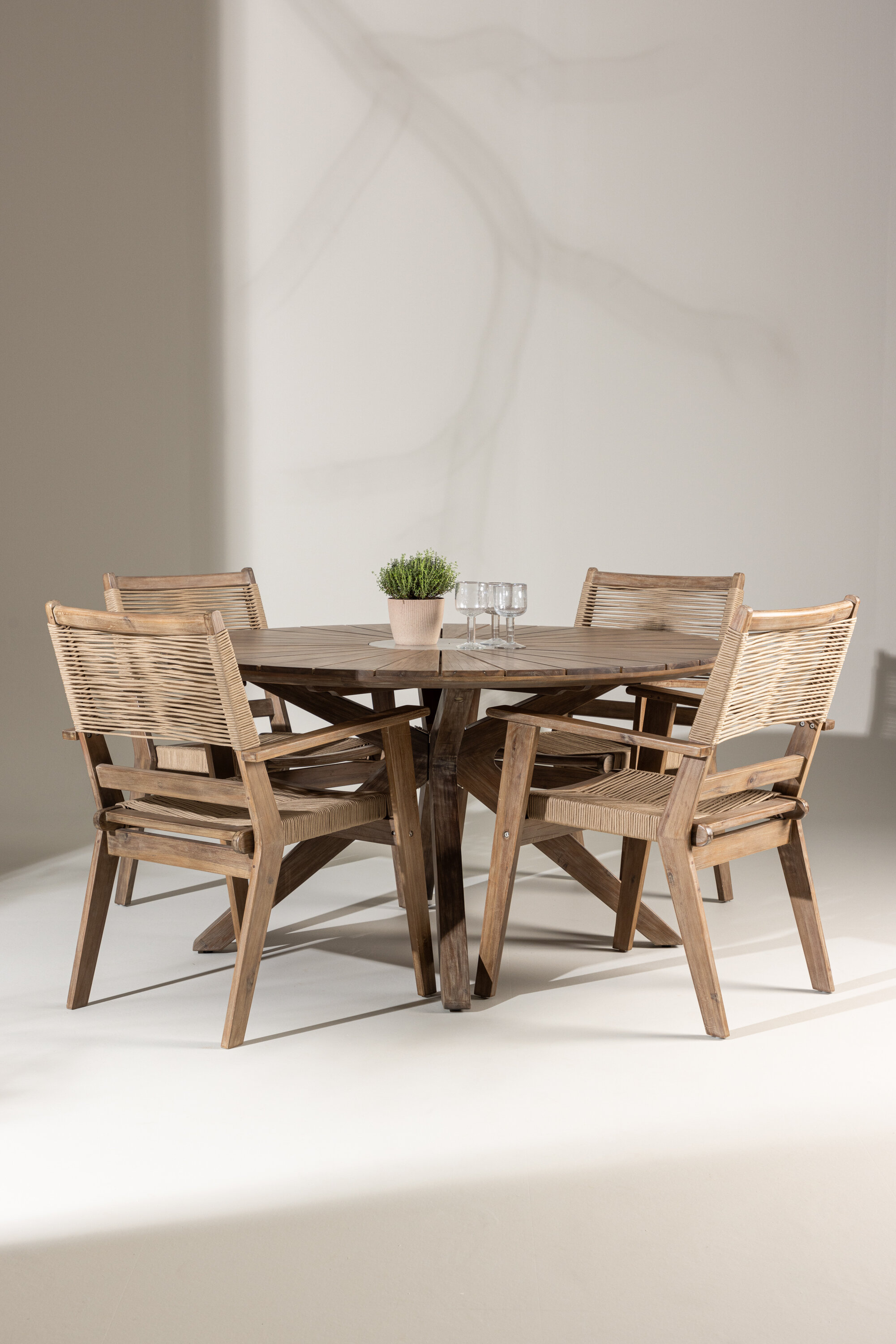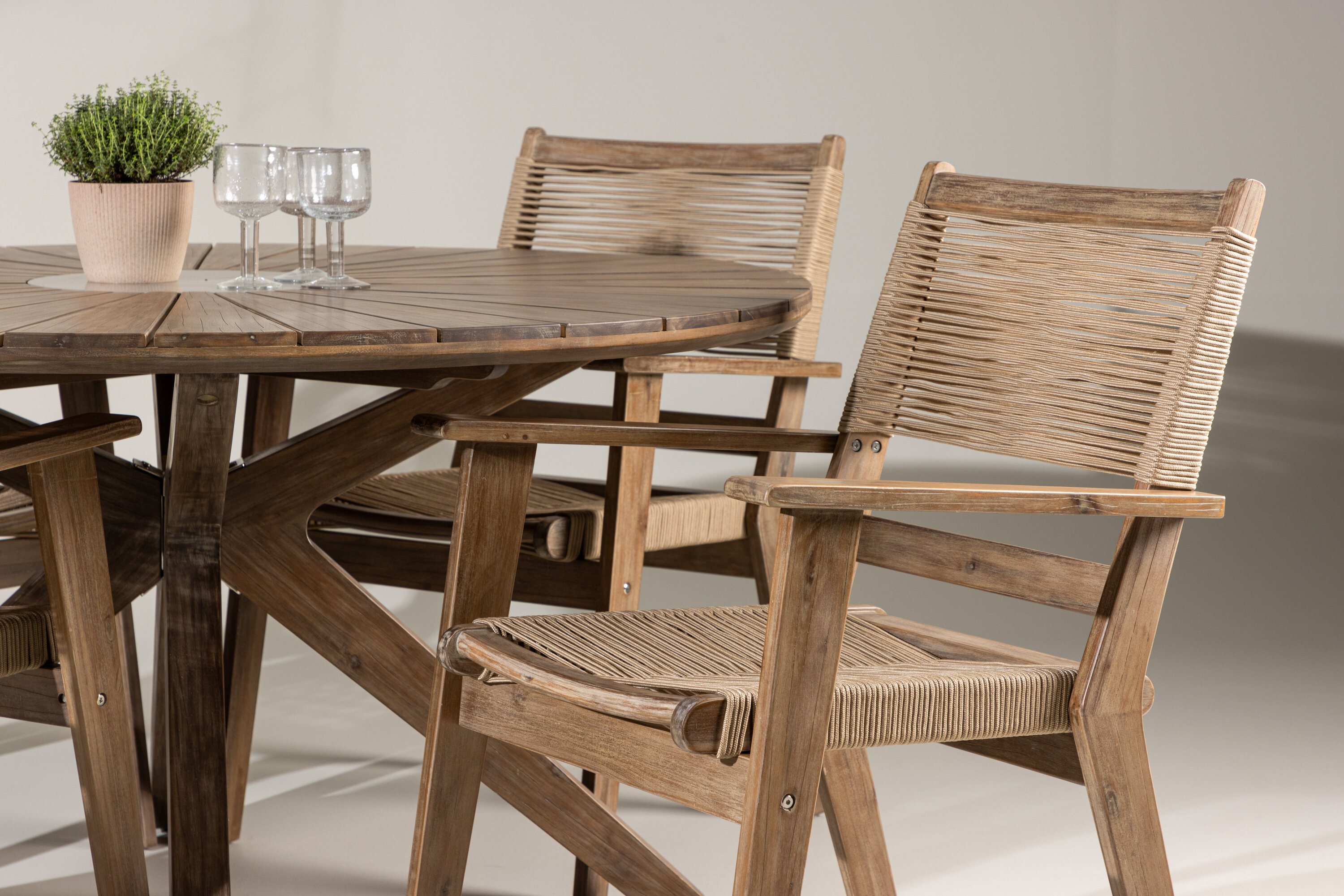See söögikomplekt pole mitte ainult funktsionaalne õuemööblitükk, vaid ka stiilne sisustusdetail, mis lisab teie terrassile trendika ja moodsa hõngu. Kogege minimalistlikku elegantsi ja loomulikku tunnet meie Peter and Rosario söögikomplektiga.