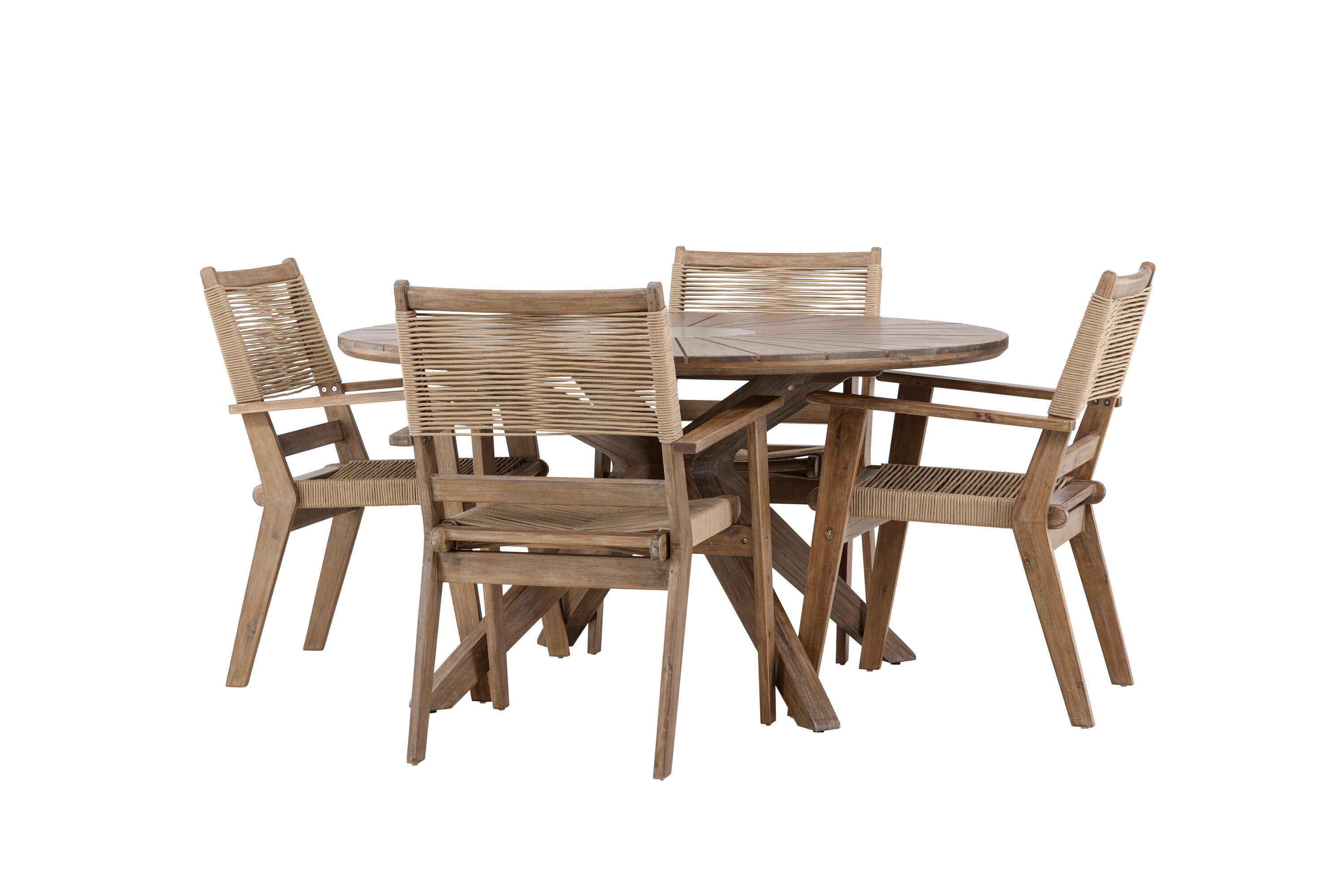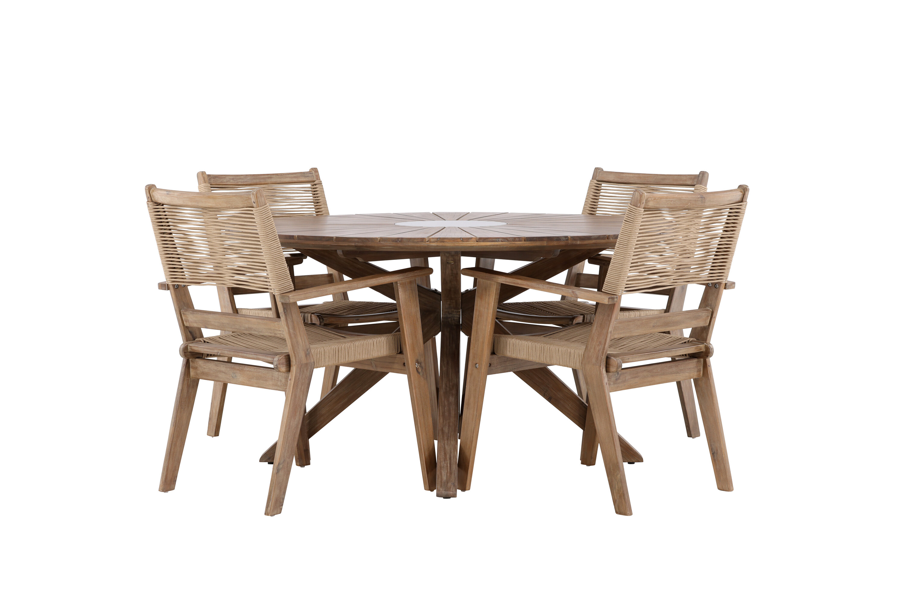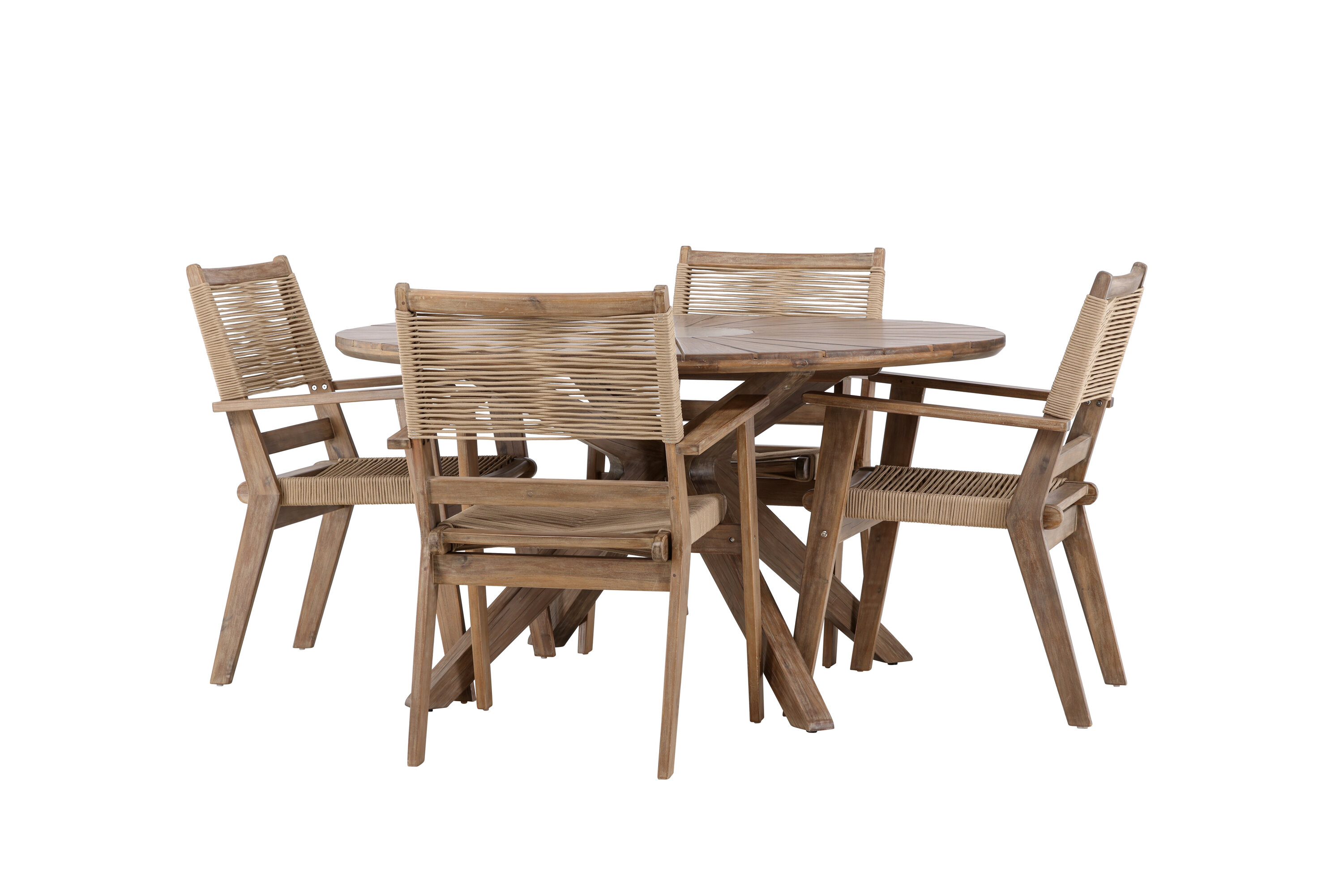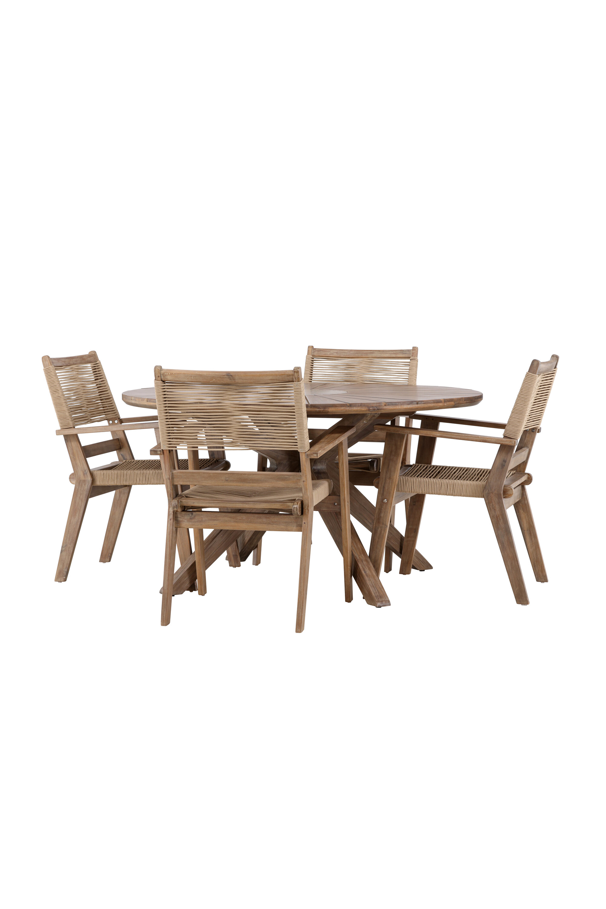See söögikomplekt pole mitte ainult funktsionaalne õuemööblitükk, vaid ka stiilne sisustusdetail, mis lisab teie terrassile trendika ja moodsa hõngu. Kogege minimalistlikku elegantsi ja loomulikku tunnet meie Peter and Rosario söögikomplektiga.