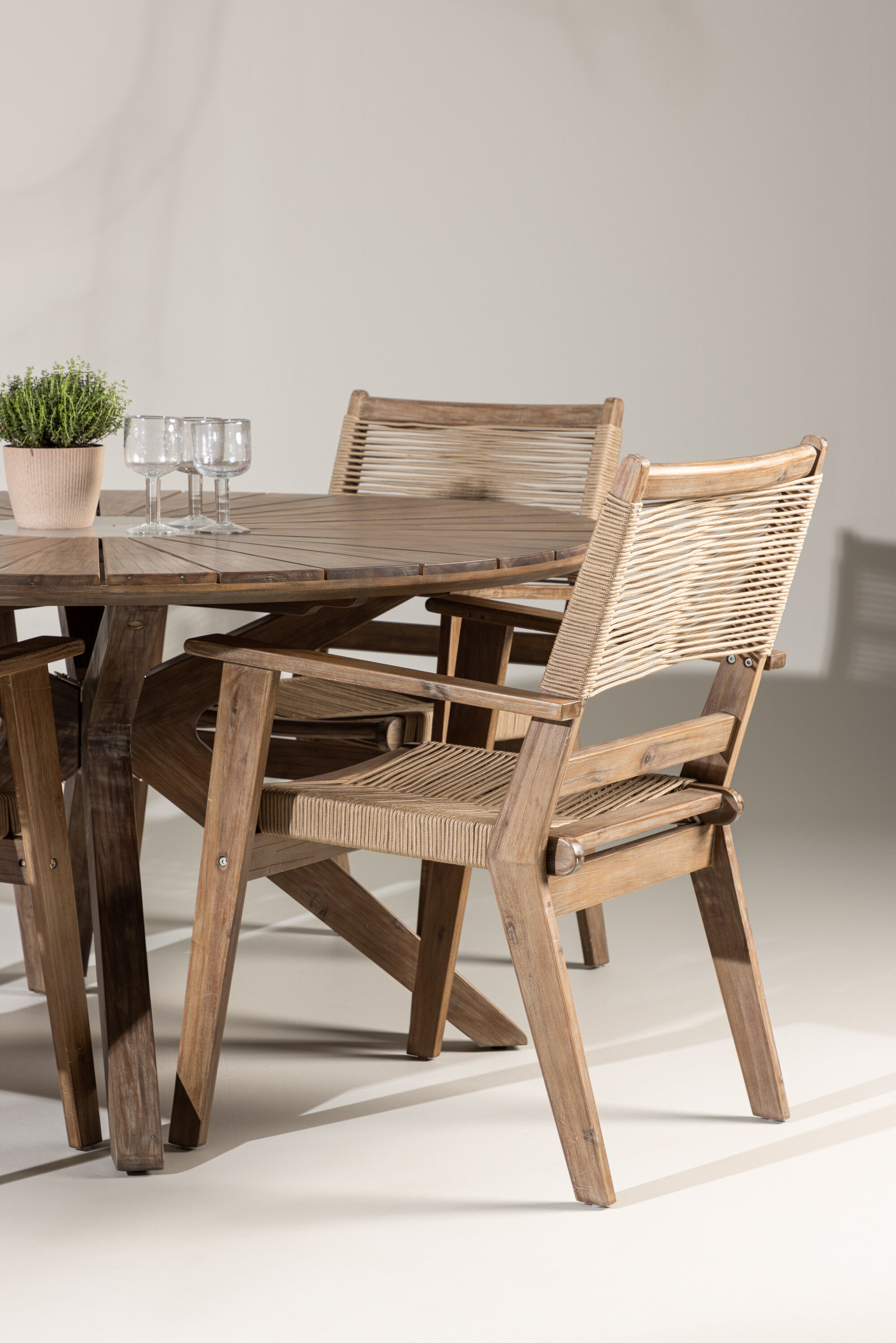 Pruunist akaatsiapuust valmistatud Peter toolidest õhkub minimalistlikku ja maalähedast võlu. Nende lihtne ja elegantne disain sulandub sujuvalt väliskeskkonnaga, luues vabas õhus einestamiseks pingevaba õhkkonna.