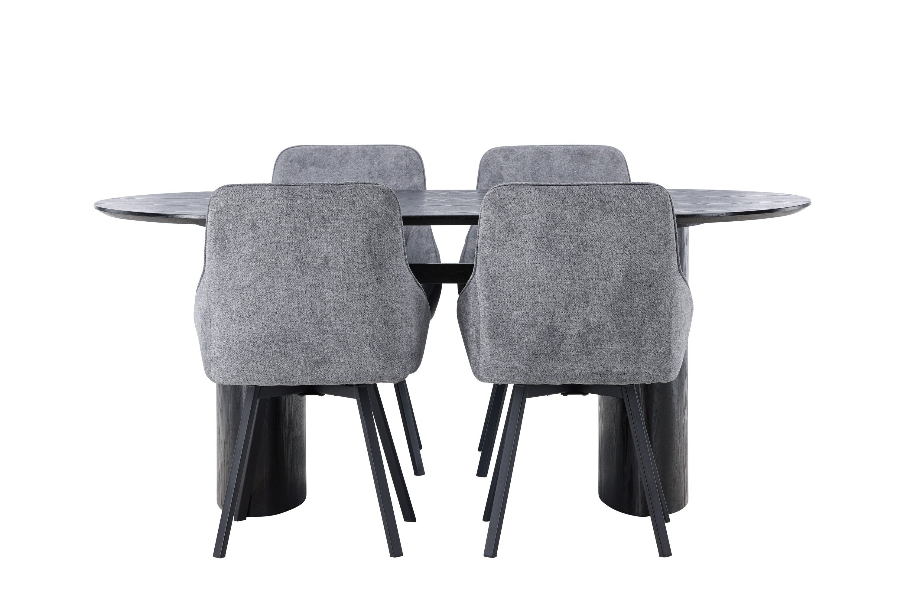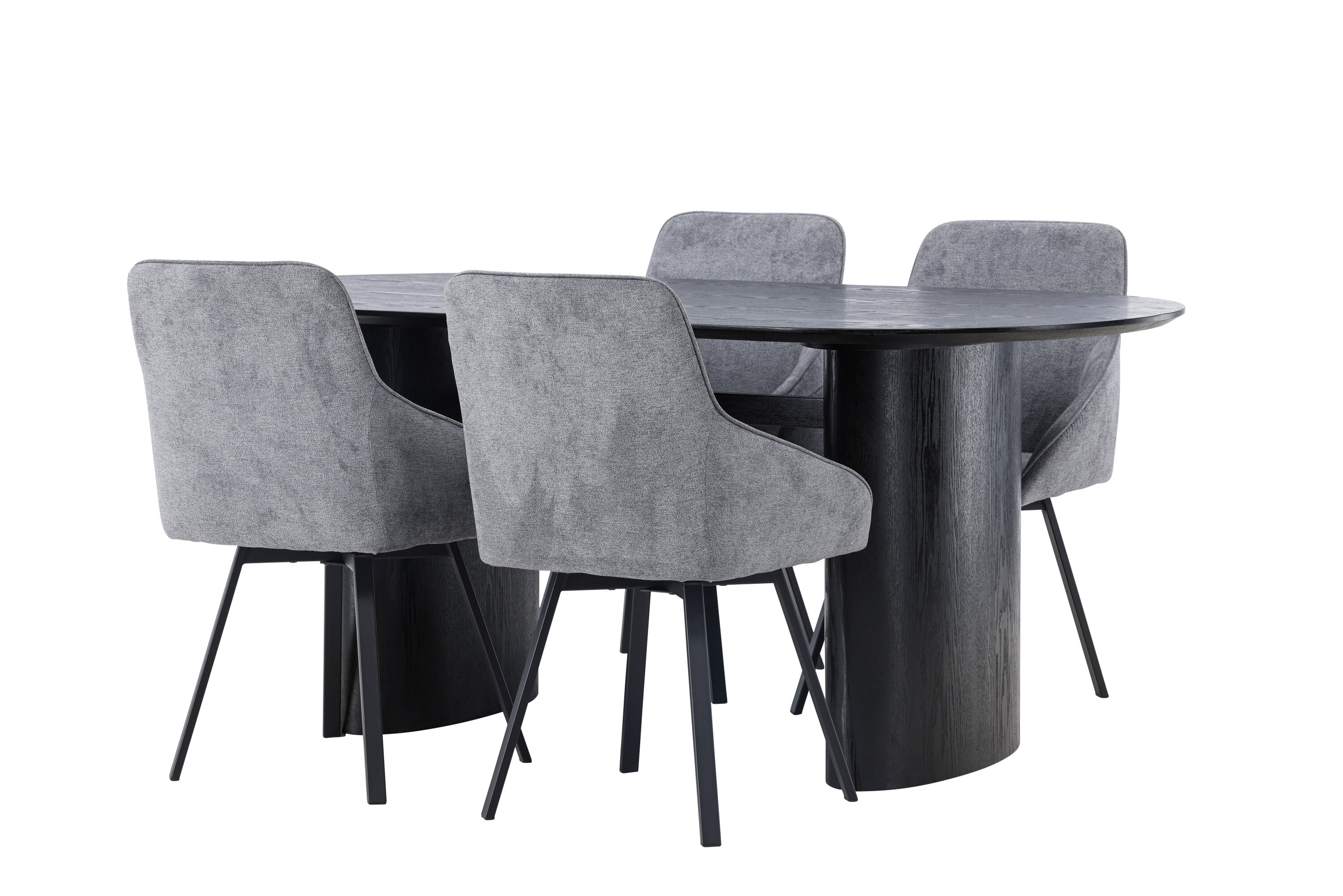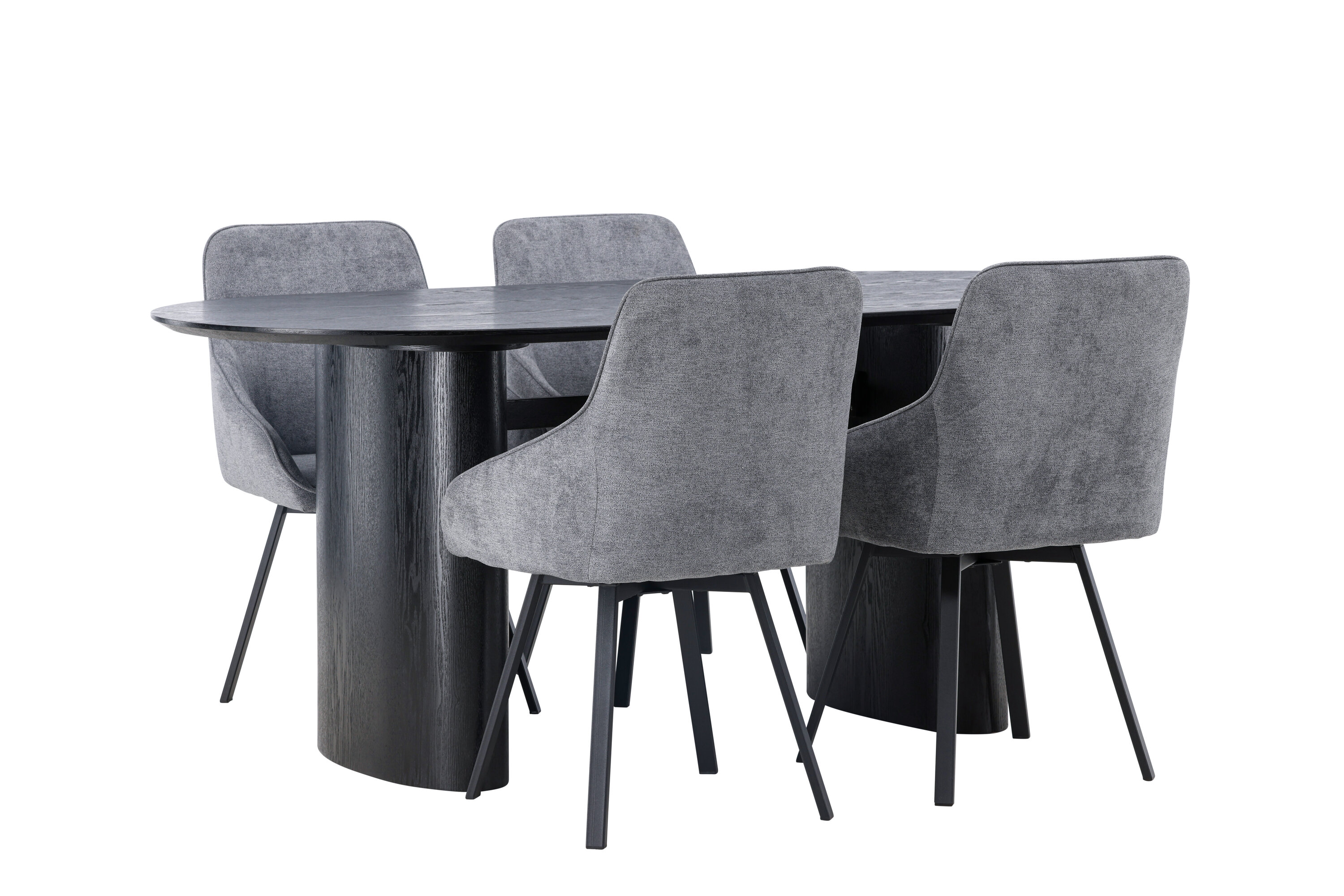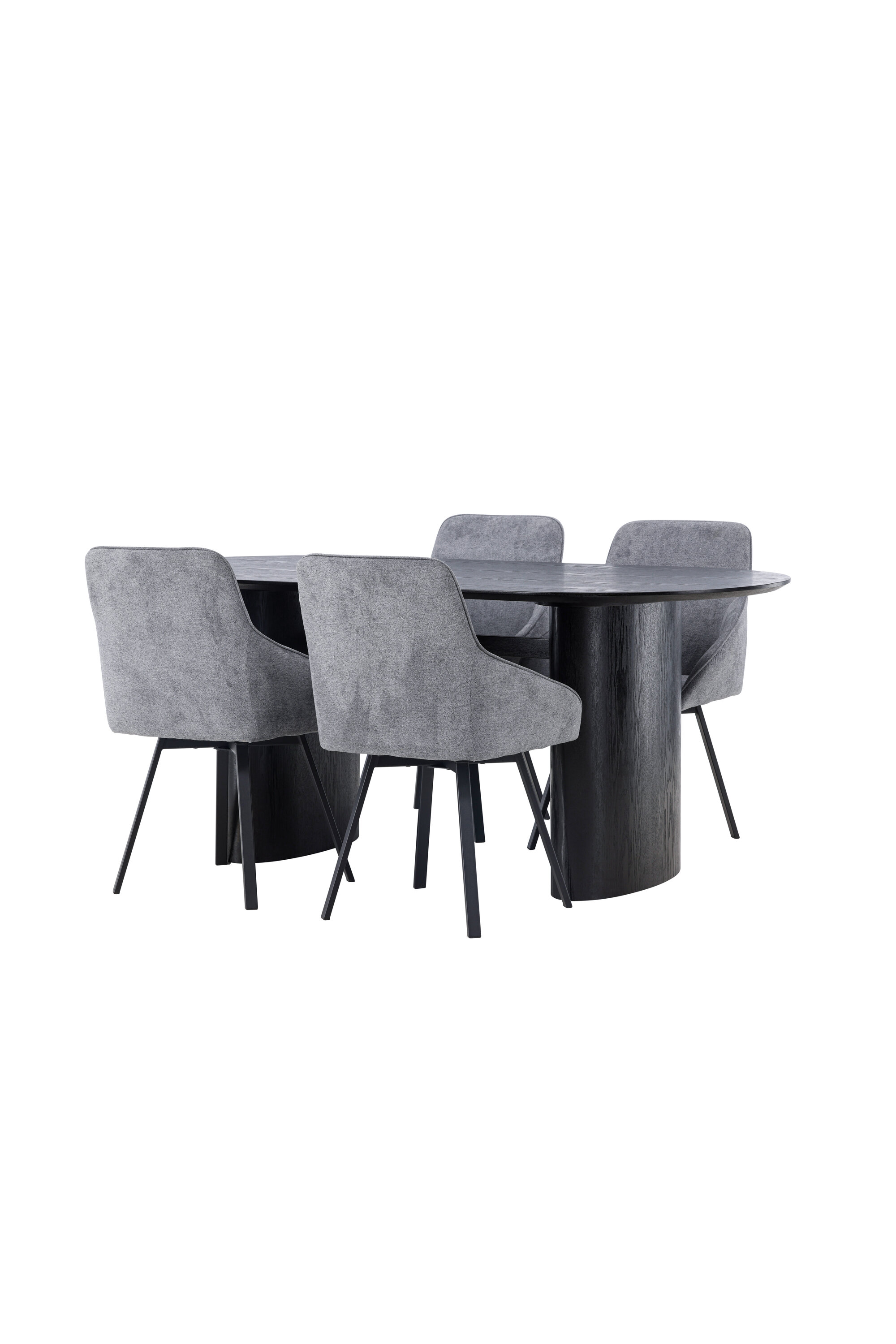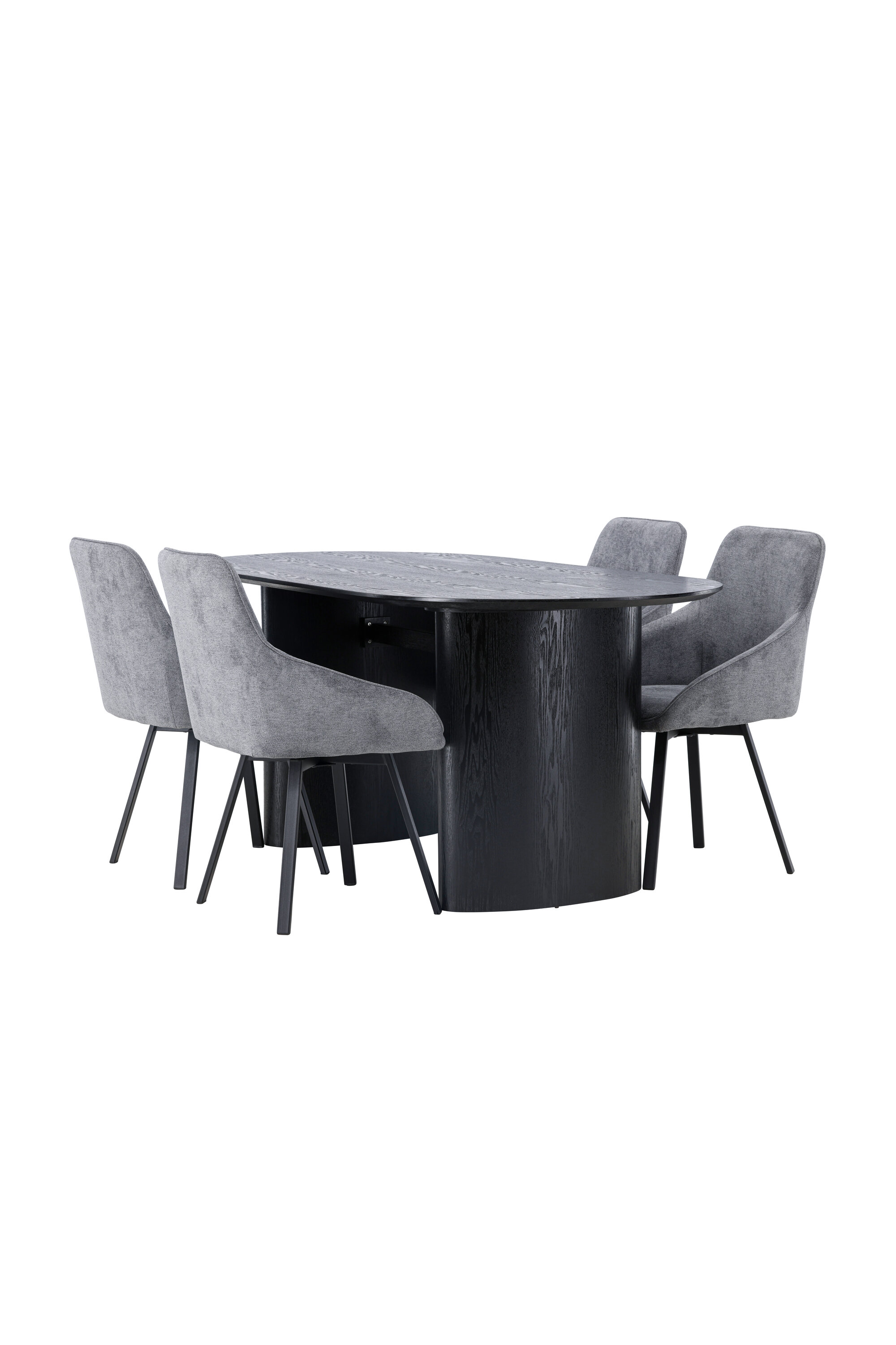 Meeldiv värvikombinatsioon! Musta värvi ovaalne söögilaud Isolde on moodsa disainiga ovaalse MDF-plaadist lauaplaadi ja tugeva raamiga, mis jätab ühtlase mulje. Elav materjal annab pilgupüüdjale armsa liikumise. Siin stiilne kombinatsioon Rosie sarja hallide söögitoolidega. Toolil on täielikult polsterdatud iste koos integreeritud halli kangast käetugedega ja kergelt laienevate mustast metallist toolijalgadega. Pehme iste on täiendava mugavuse tagamiseks polsterdatud ja kutsub teid pikkadele meeldivatele õhtusöögihetkedele. Laua mõõdud: 180x75cm.