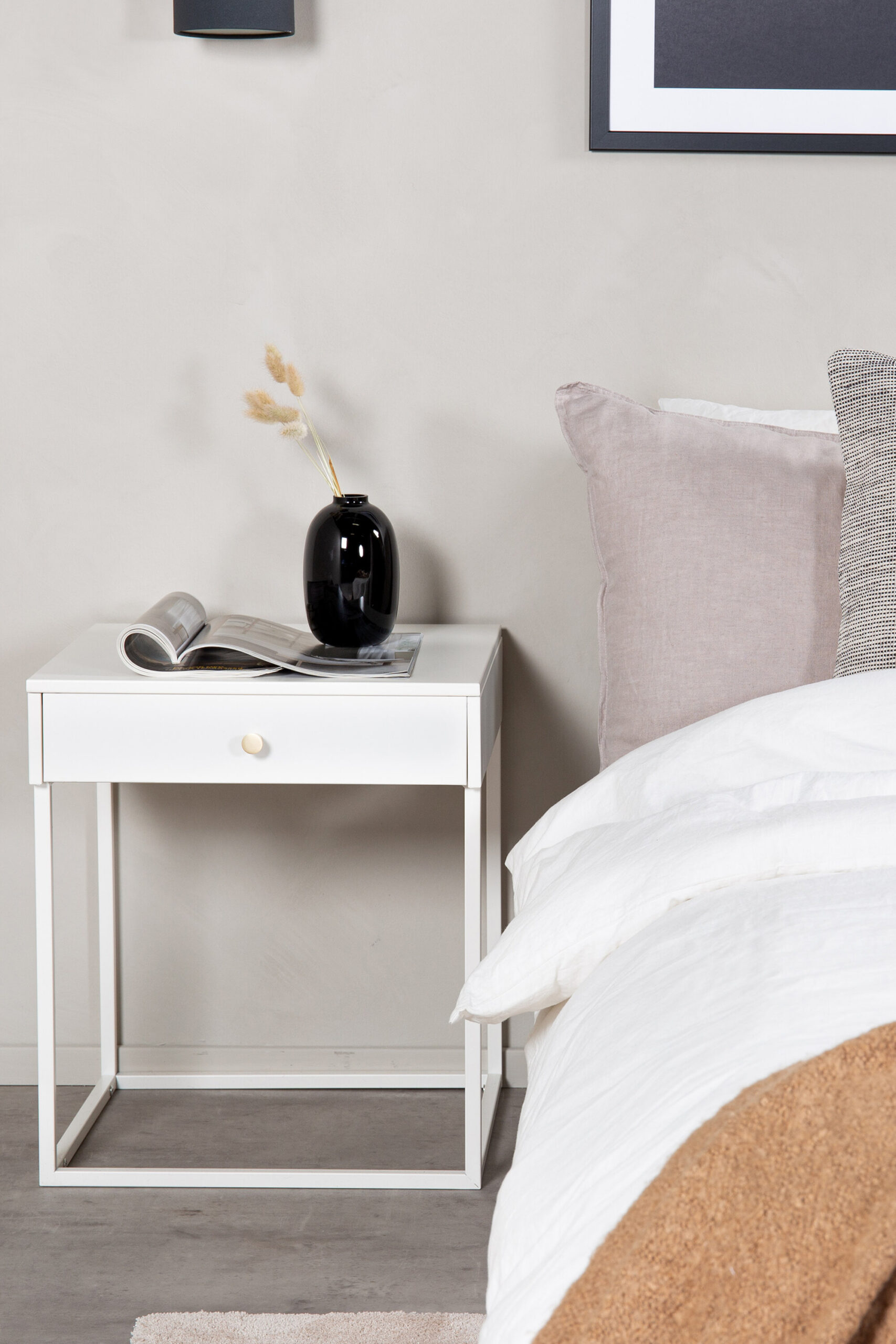 Bakal on öökapp, mis ühendab funktsiooni ja disaini lihtsal, kuid mõjuval viisil. Valmistatud täielikult terasest ja viimistletud puhta valge tooniga, toob see magamistuppa särava ja rahustava ilme – ideaalne harmoonilise atmosfääri loomiseks.