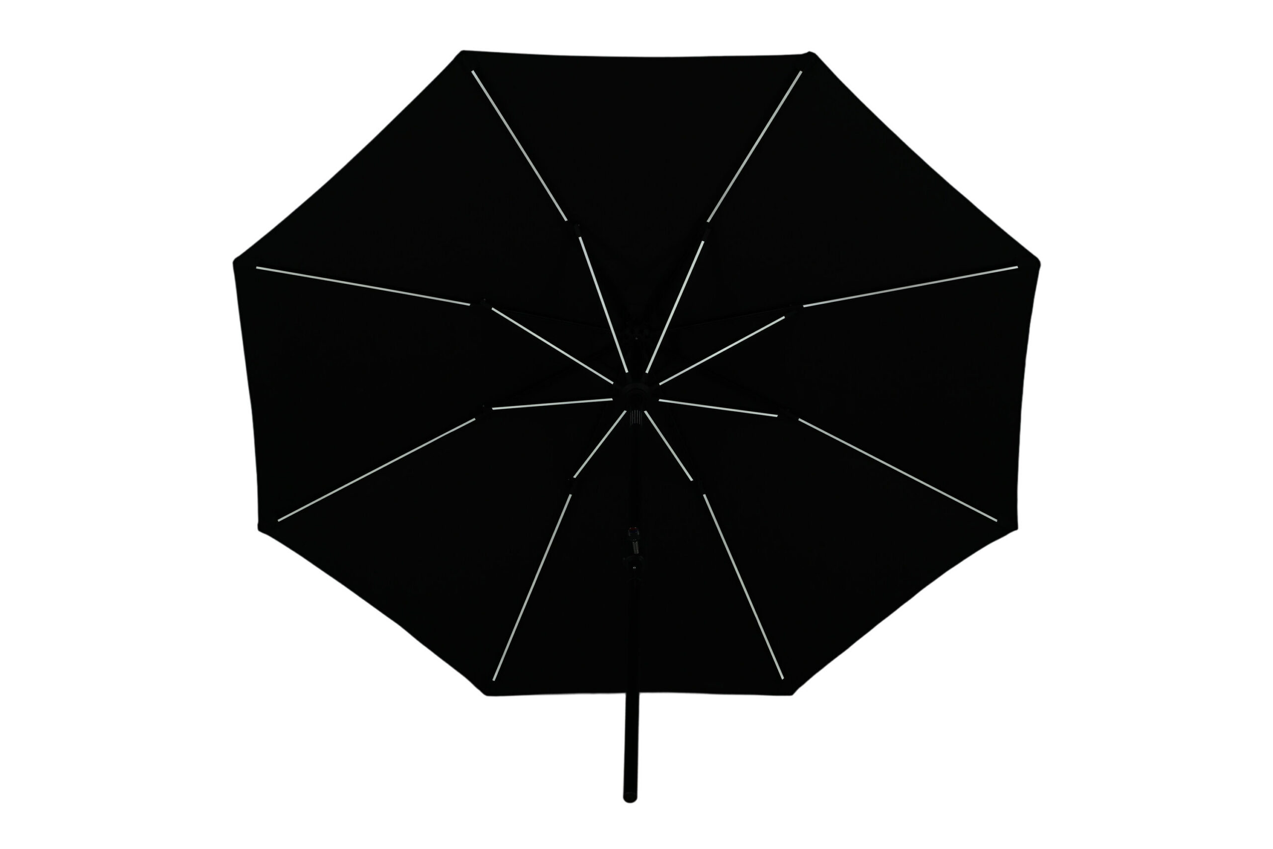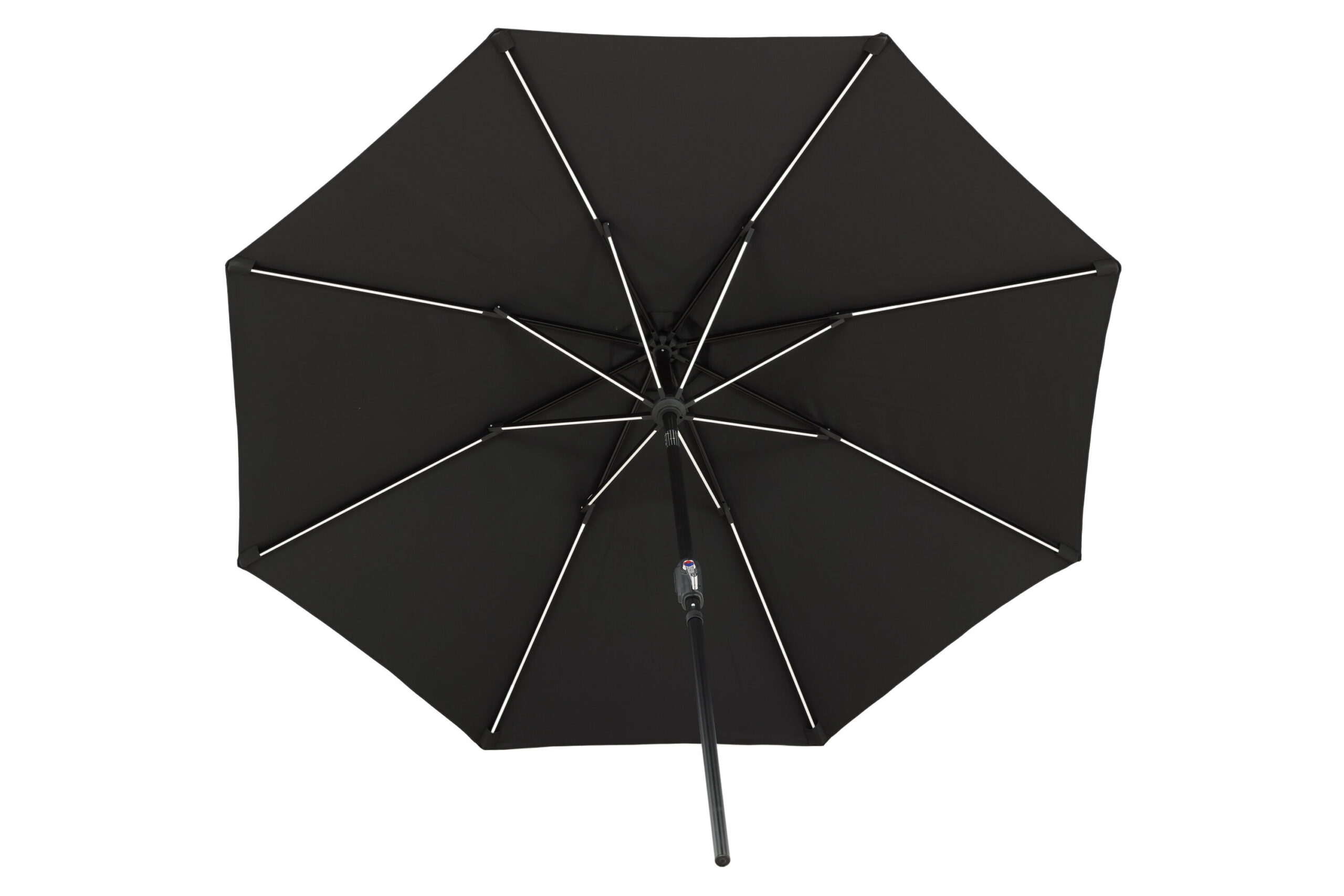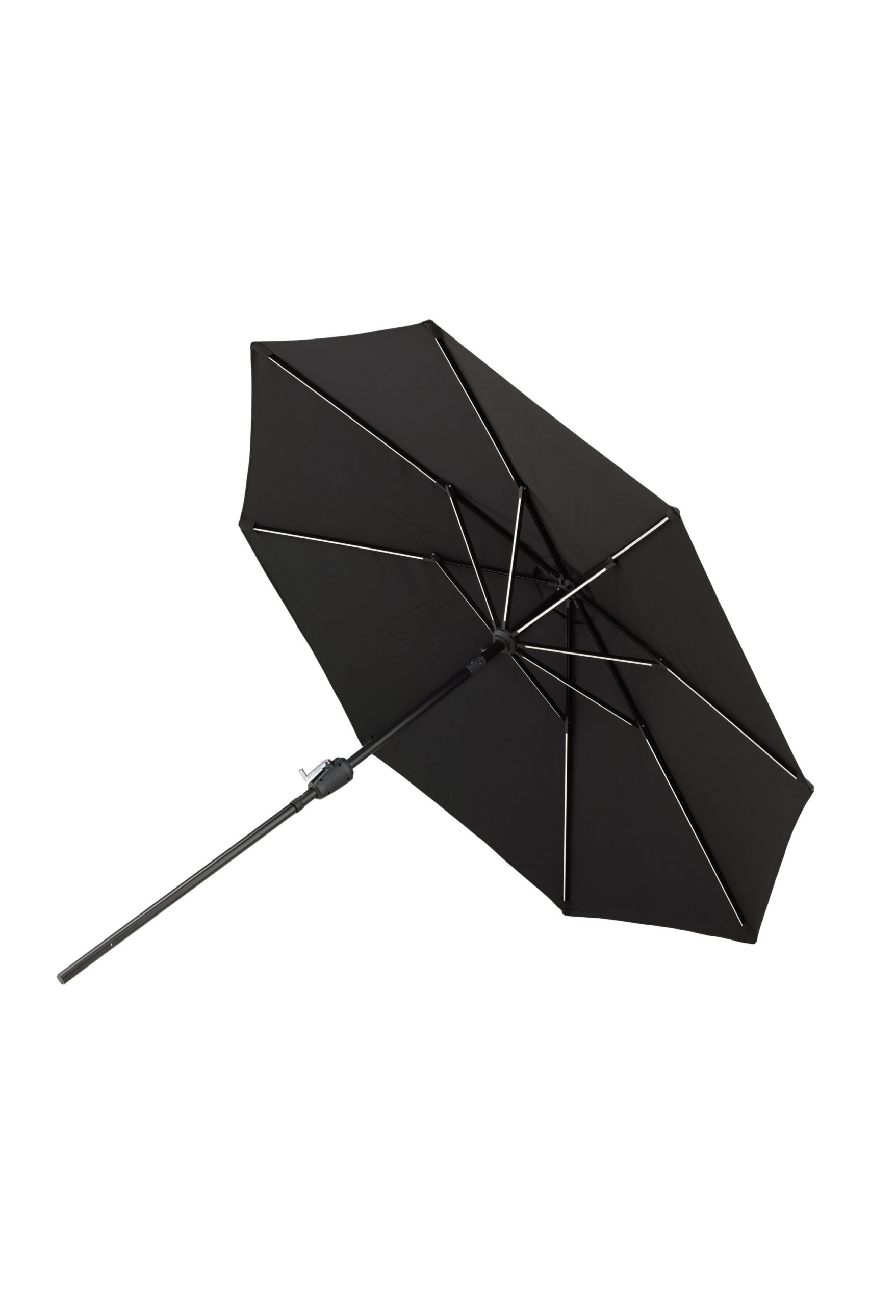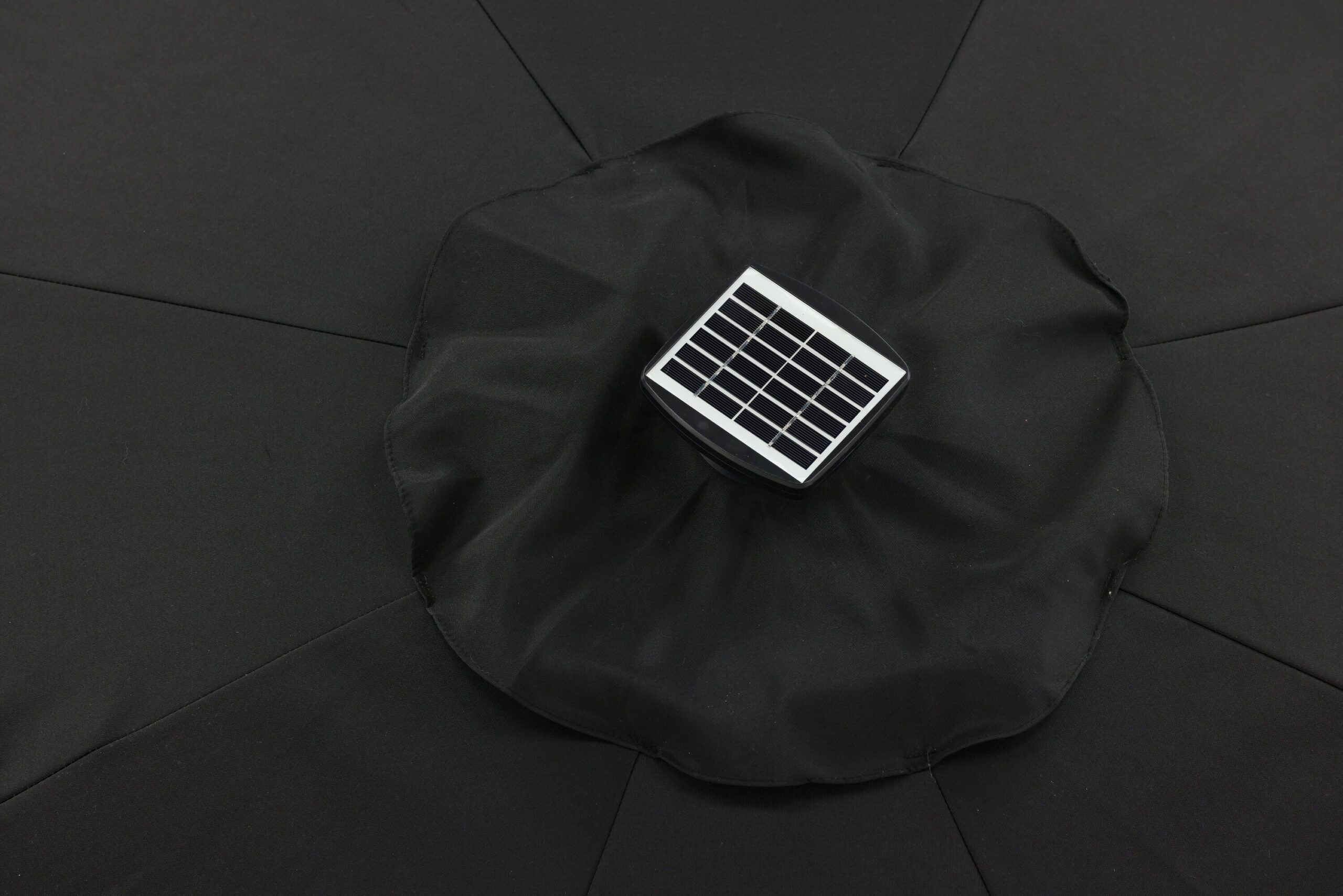 Musta kangaga eraldiseisev päikesevari, ideaalne laiskadeks päevadeks varjus! Liigutage seda oma siseõuel vastavalt oma vajadustele. LED-valgustus annab õhtuti hubase valguse.