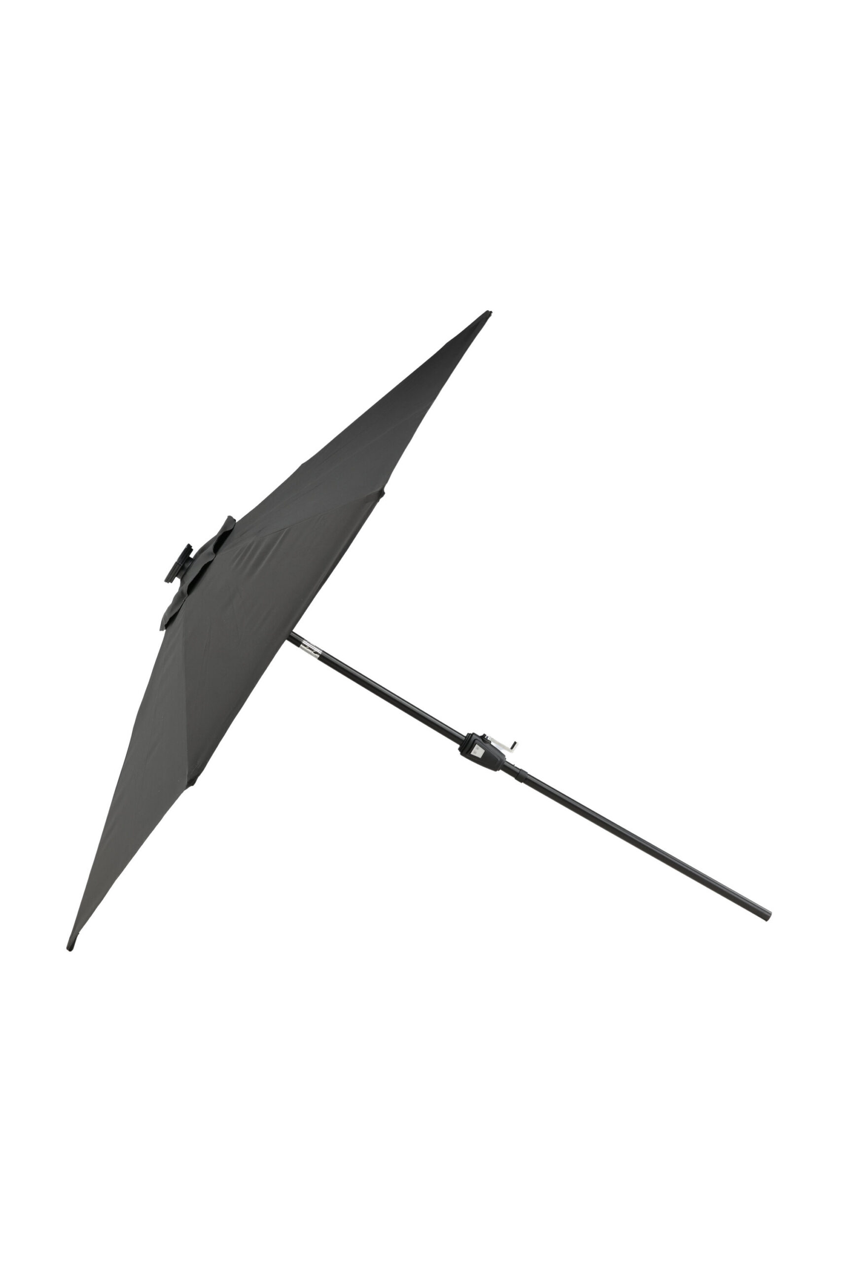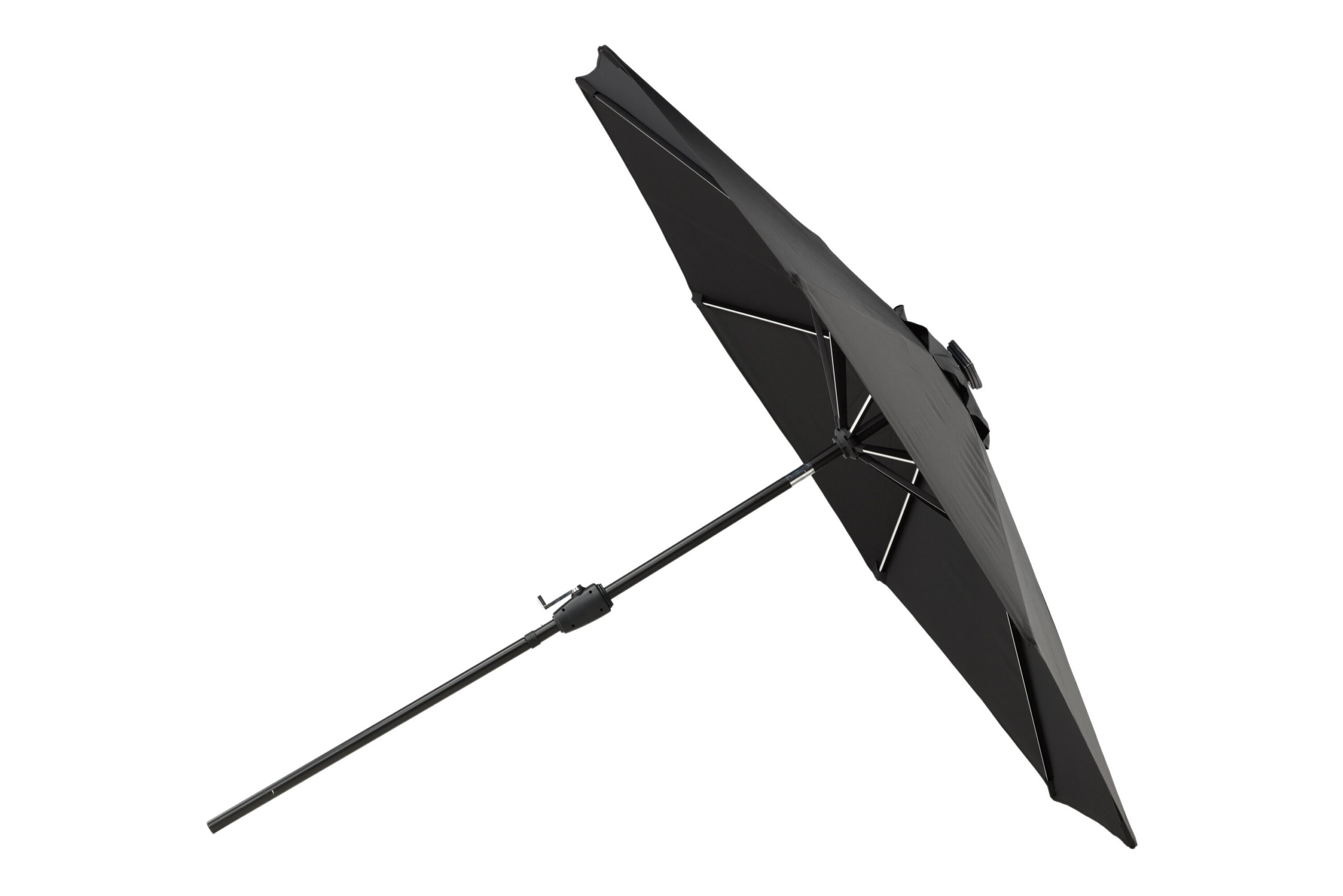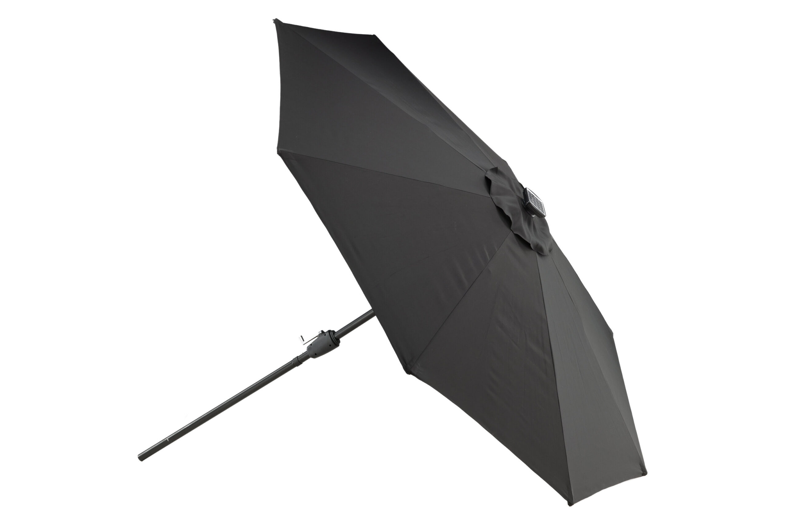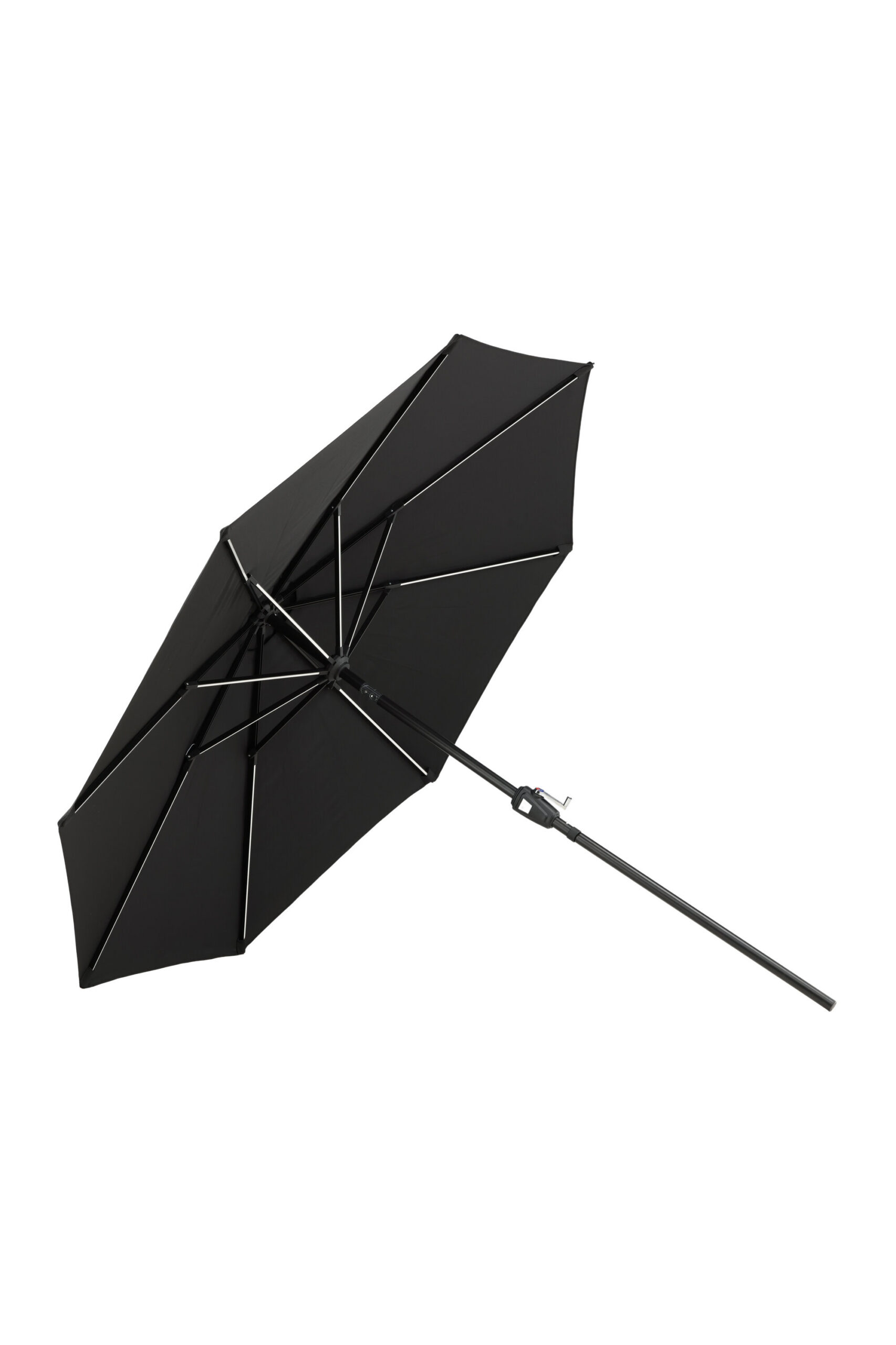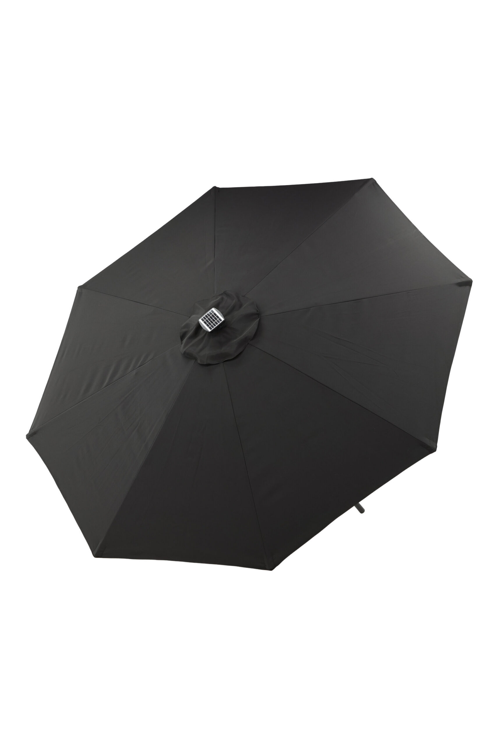 Musta kangaga eraldiseisev päikesevari, ideaalne laiskadeks päevadeks varjus! Liigutage seda oma siseõuel vastavalt oma vajadustele. LED-valgustus annab õhtuti hubase valguse.