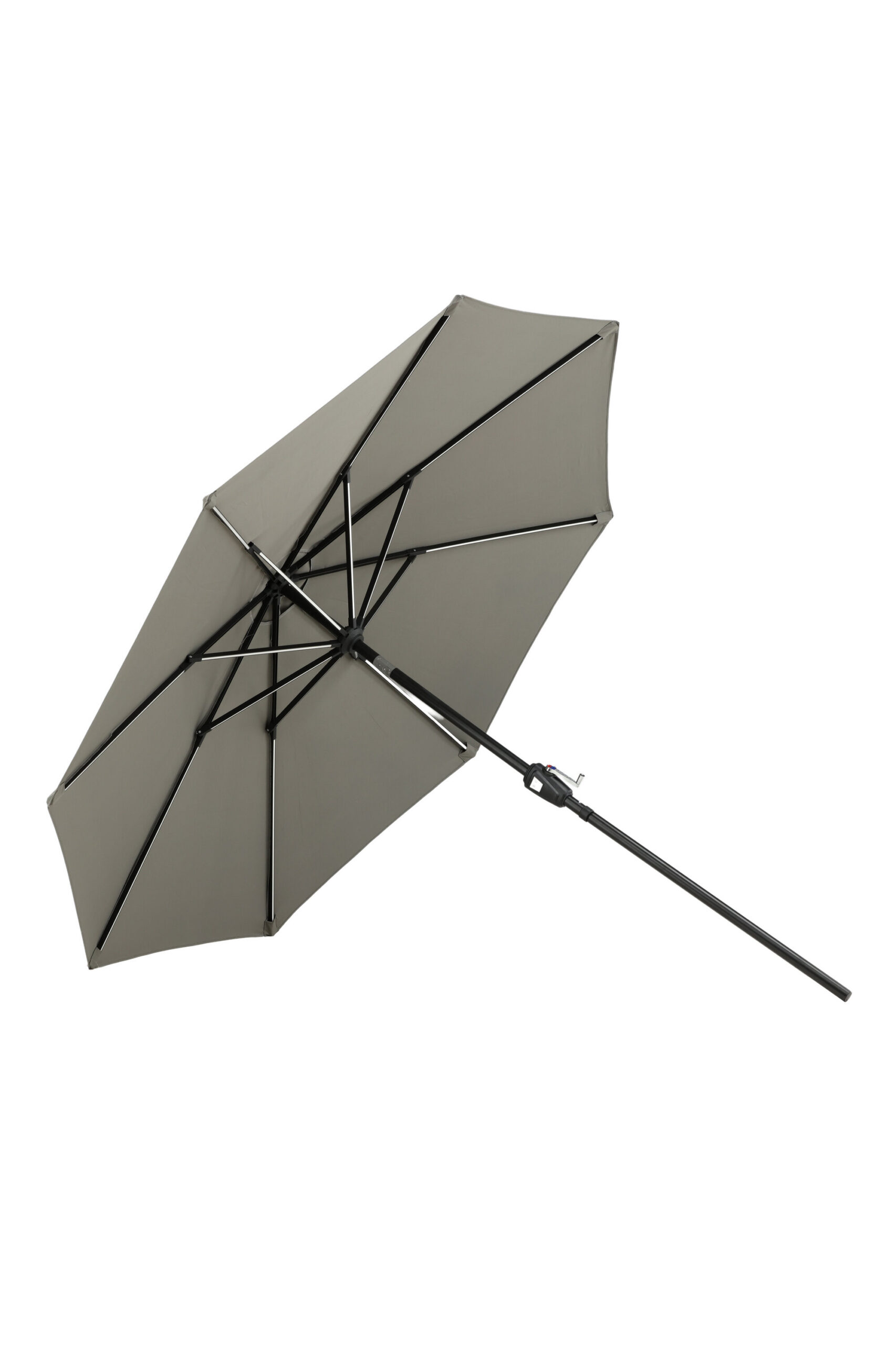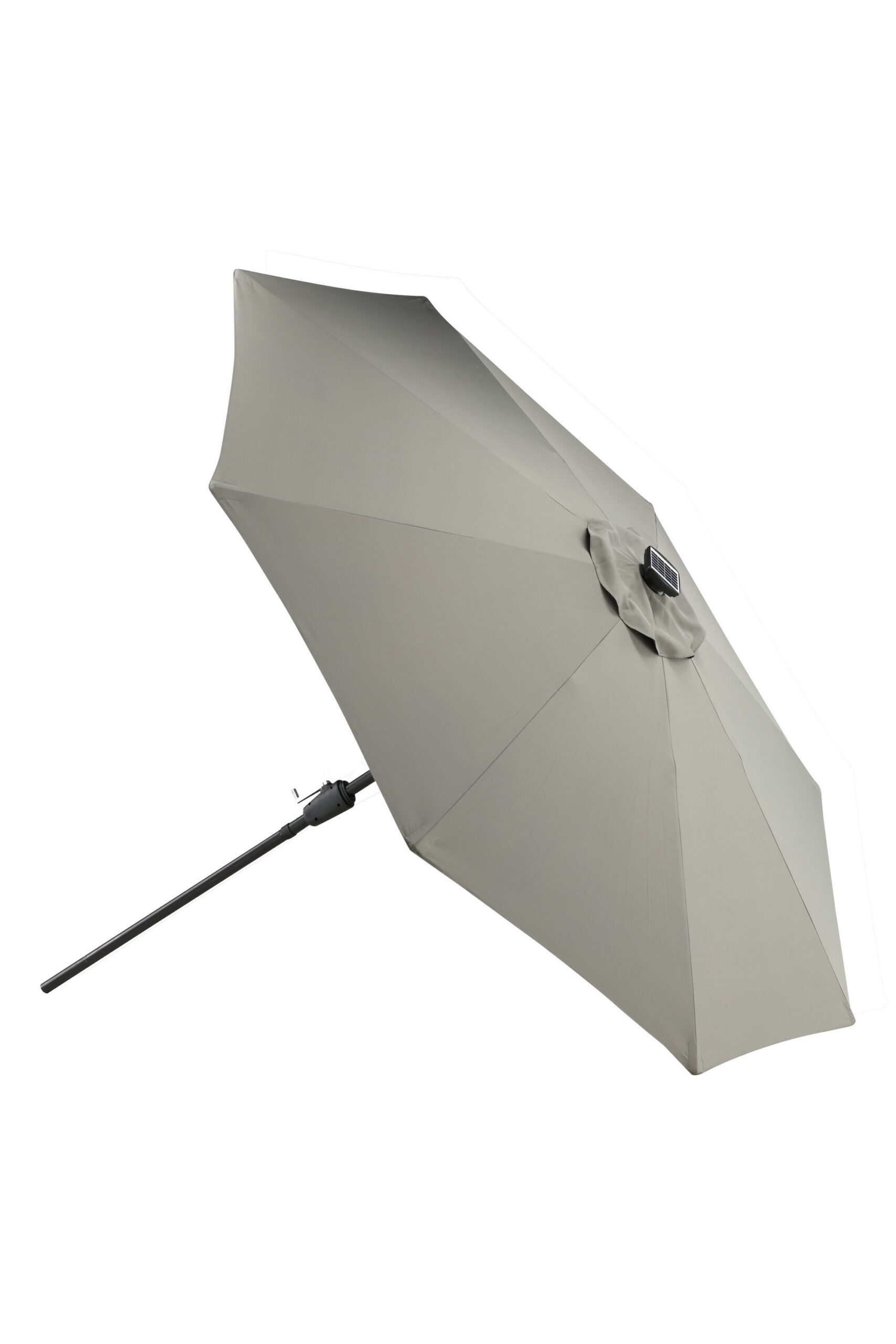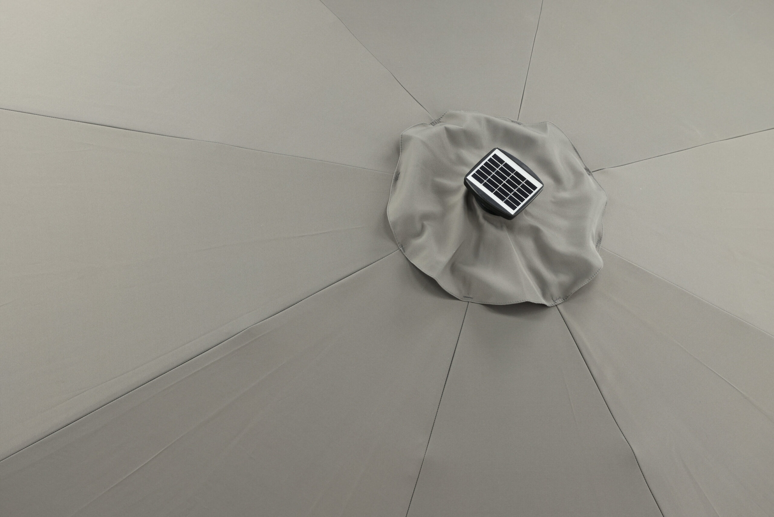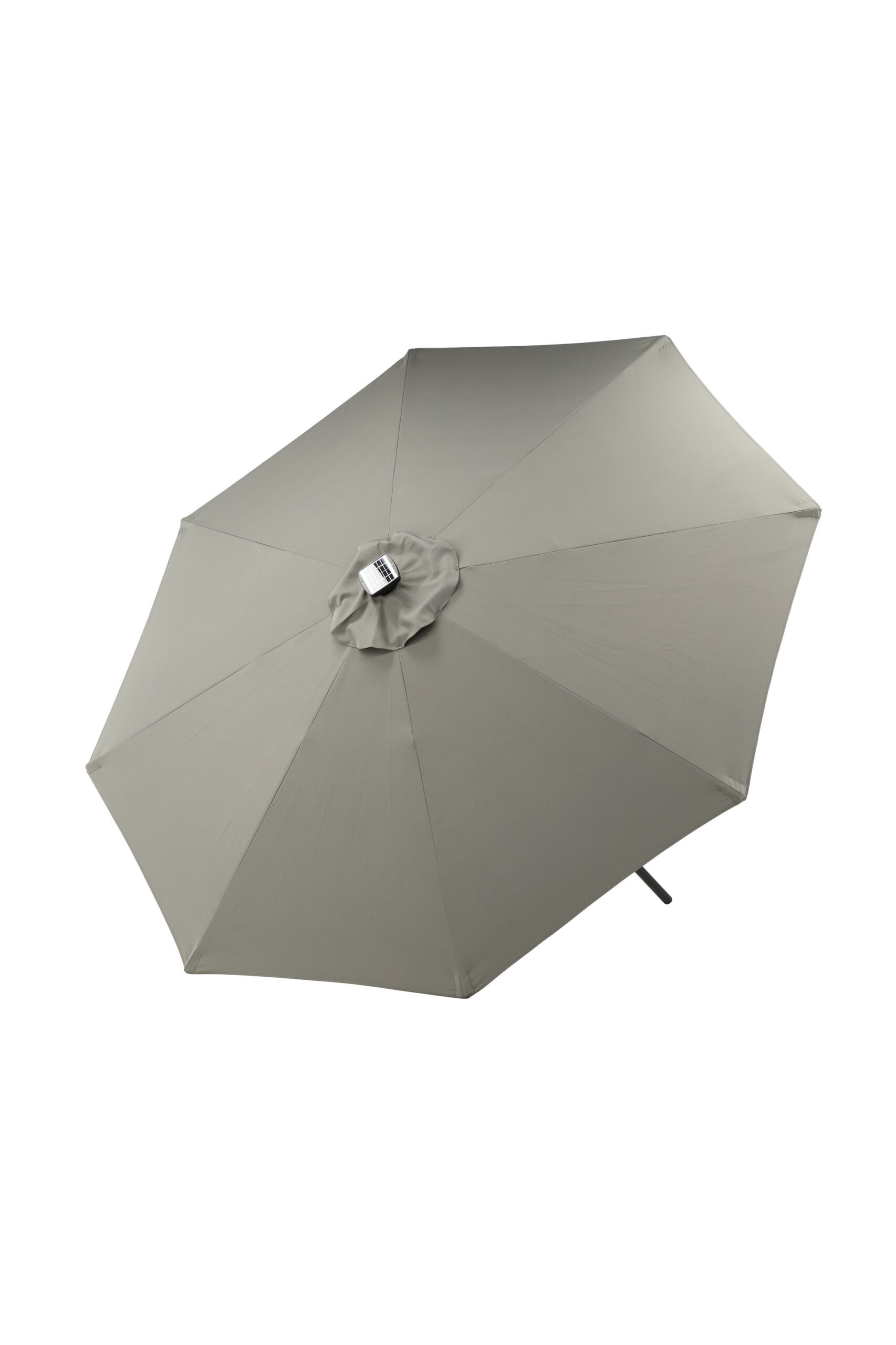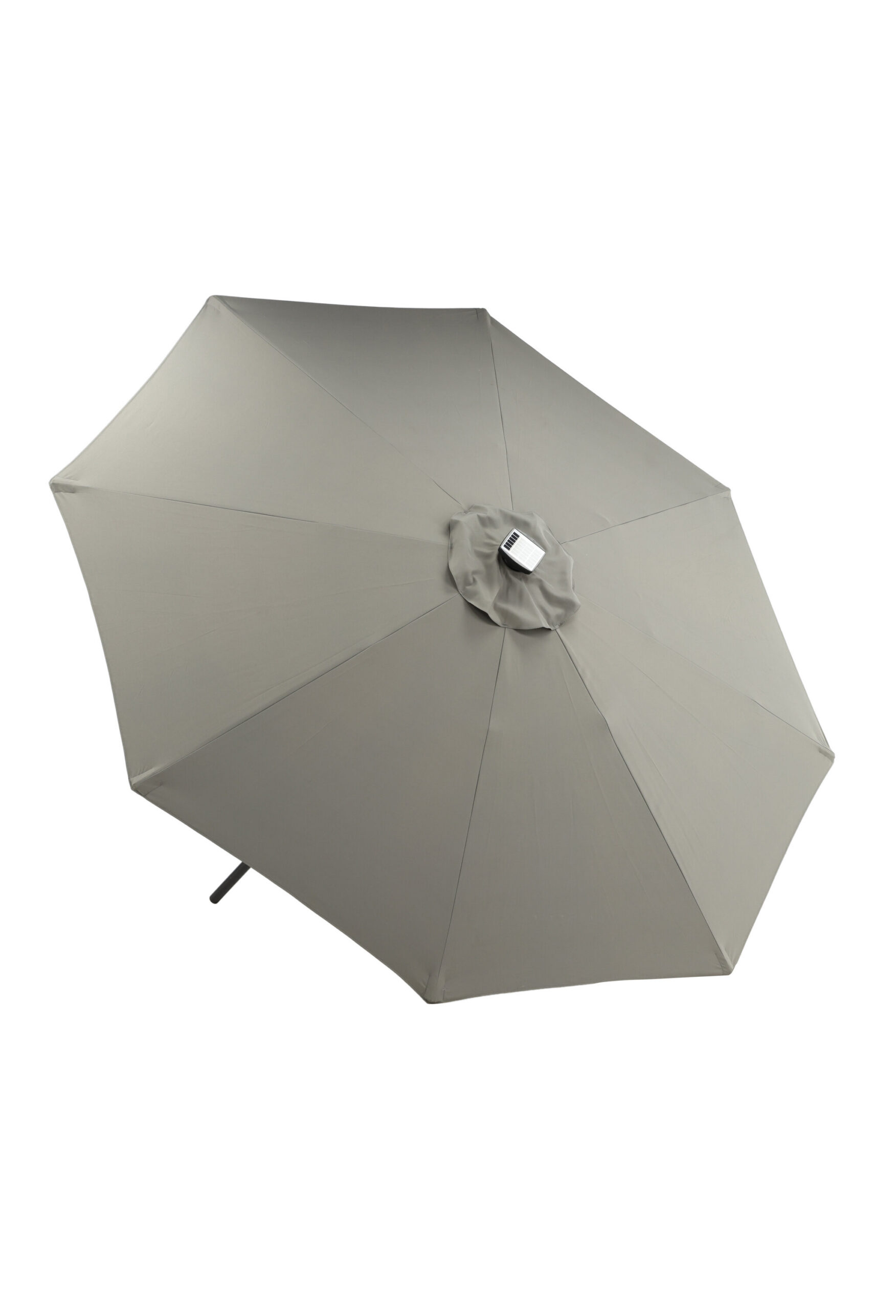 Eraldatud halli kangaga päikesevari, mis sobib ideaalselt laiskadeks päevadeks varjus! Liigutage seda oma siseõuel vastavalt oma vajadustele. LED-valgustus annab õhtuti hubase valguse.