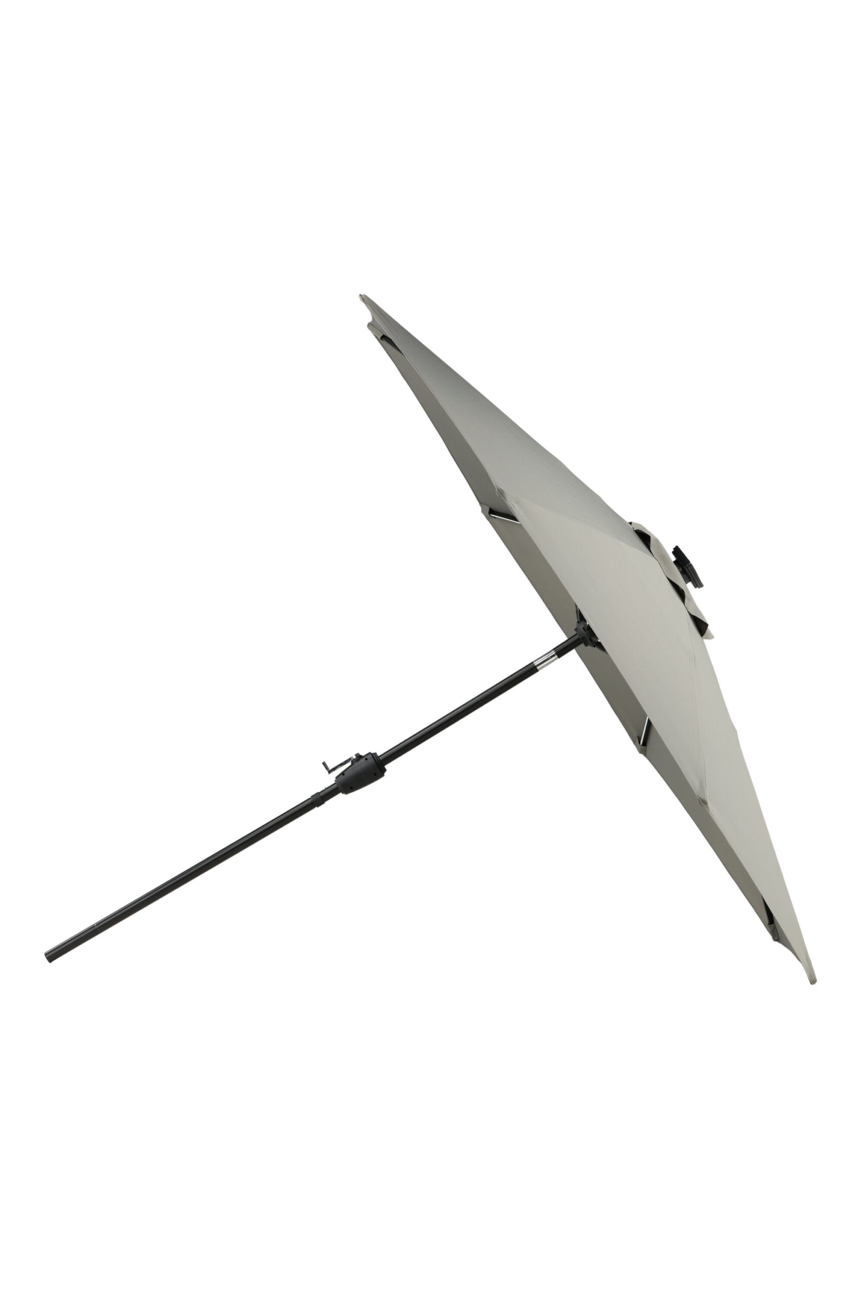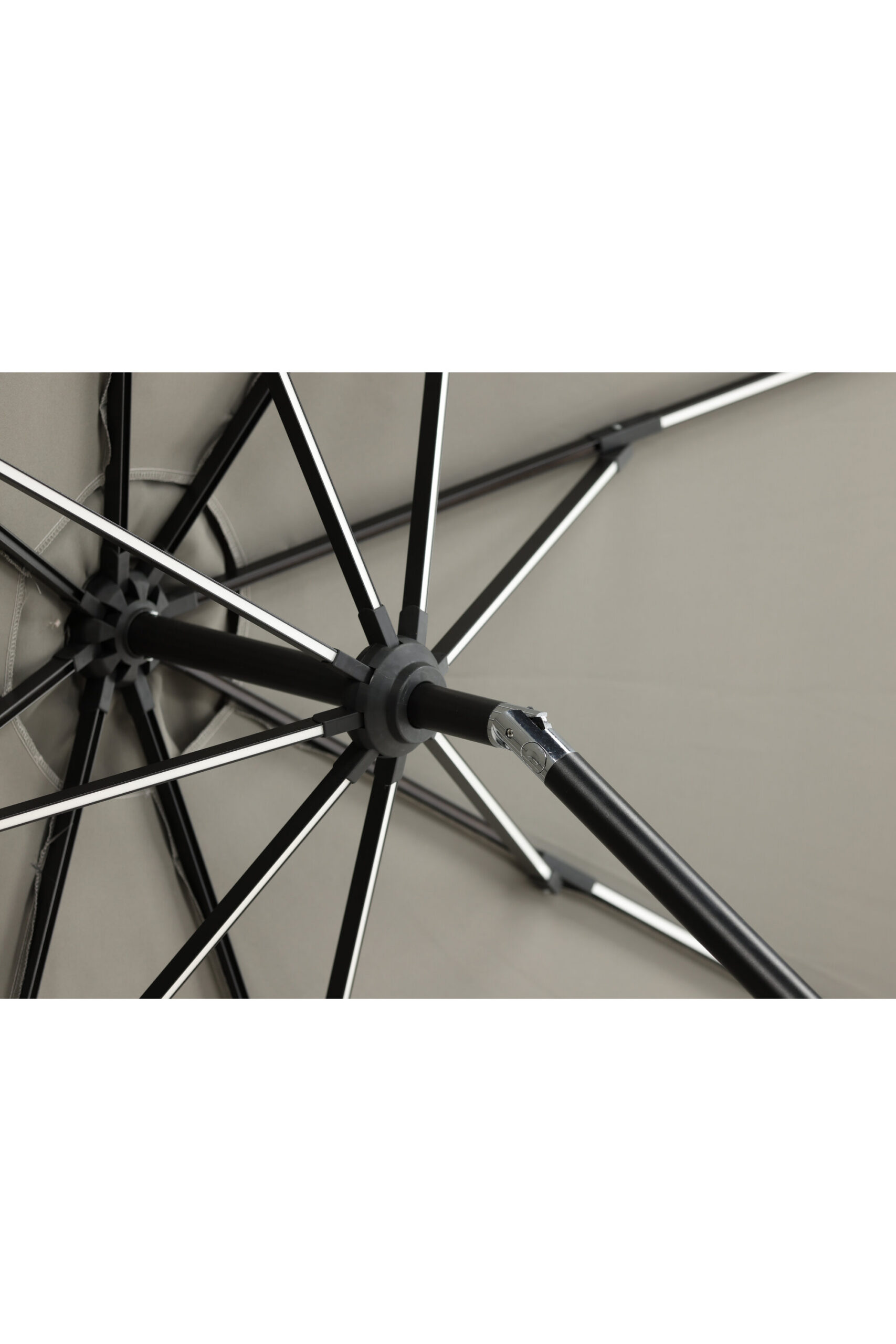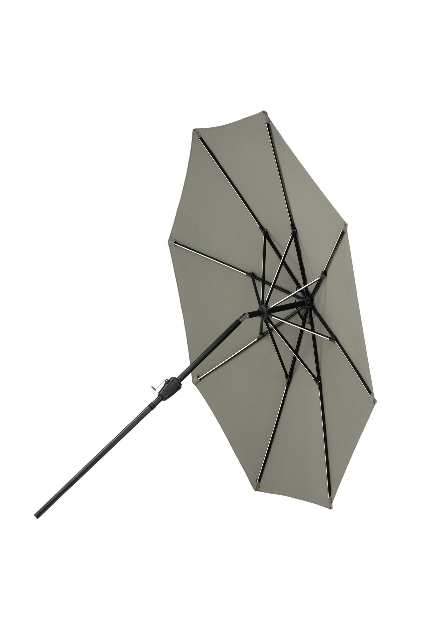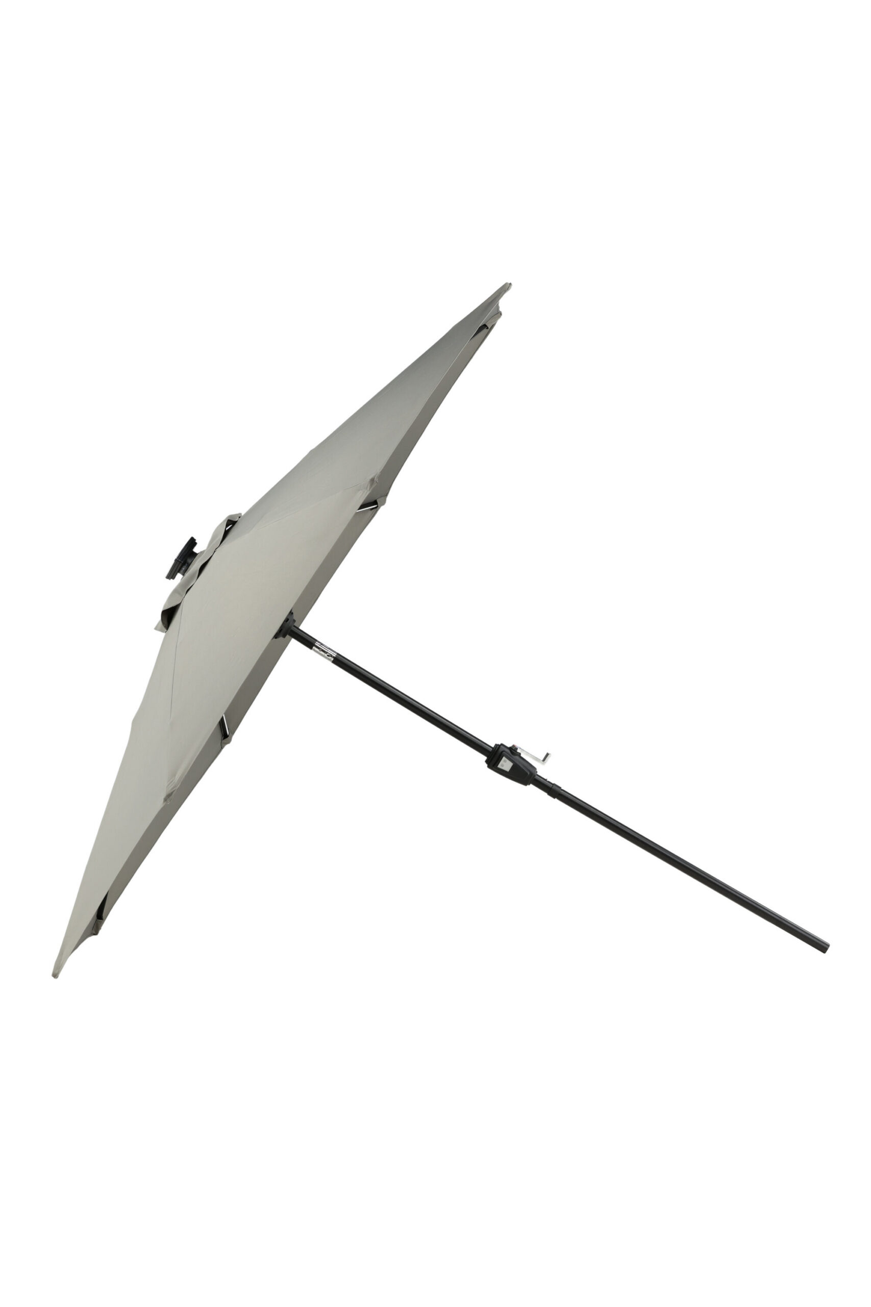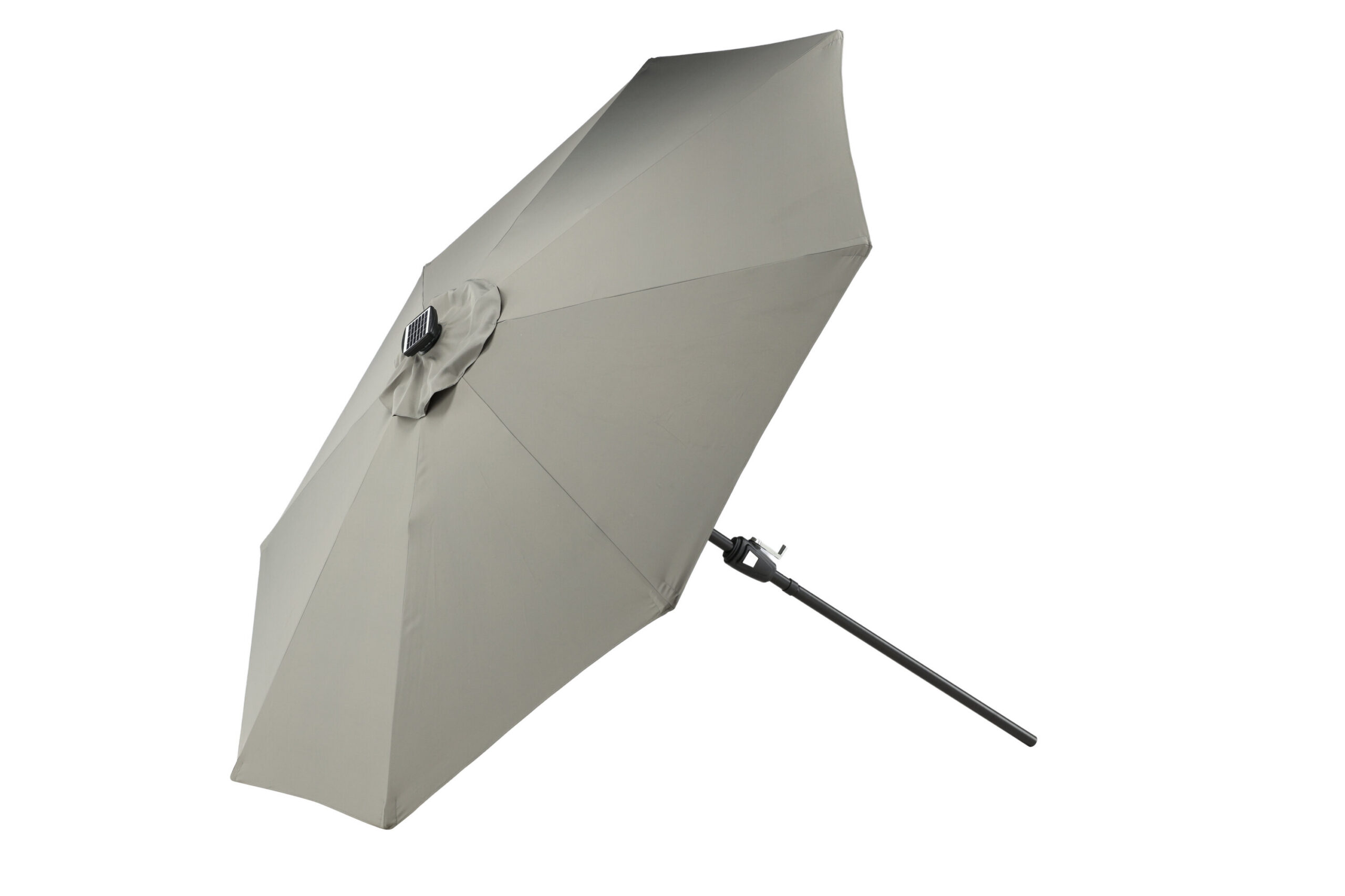 Eraldatud halli kangaga päikesevari, mis sobib ideaalselt laiskadeks päevadeks varjus! Liigutage seda oma siseõuel vastavalt oma vajadustele. LED-valgustus annab õhtuti hubase valguse.