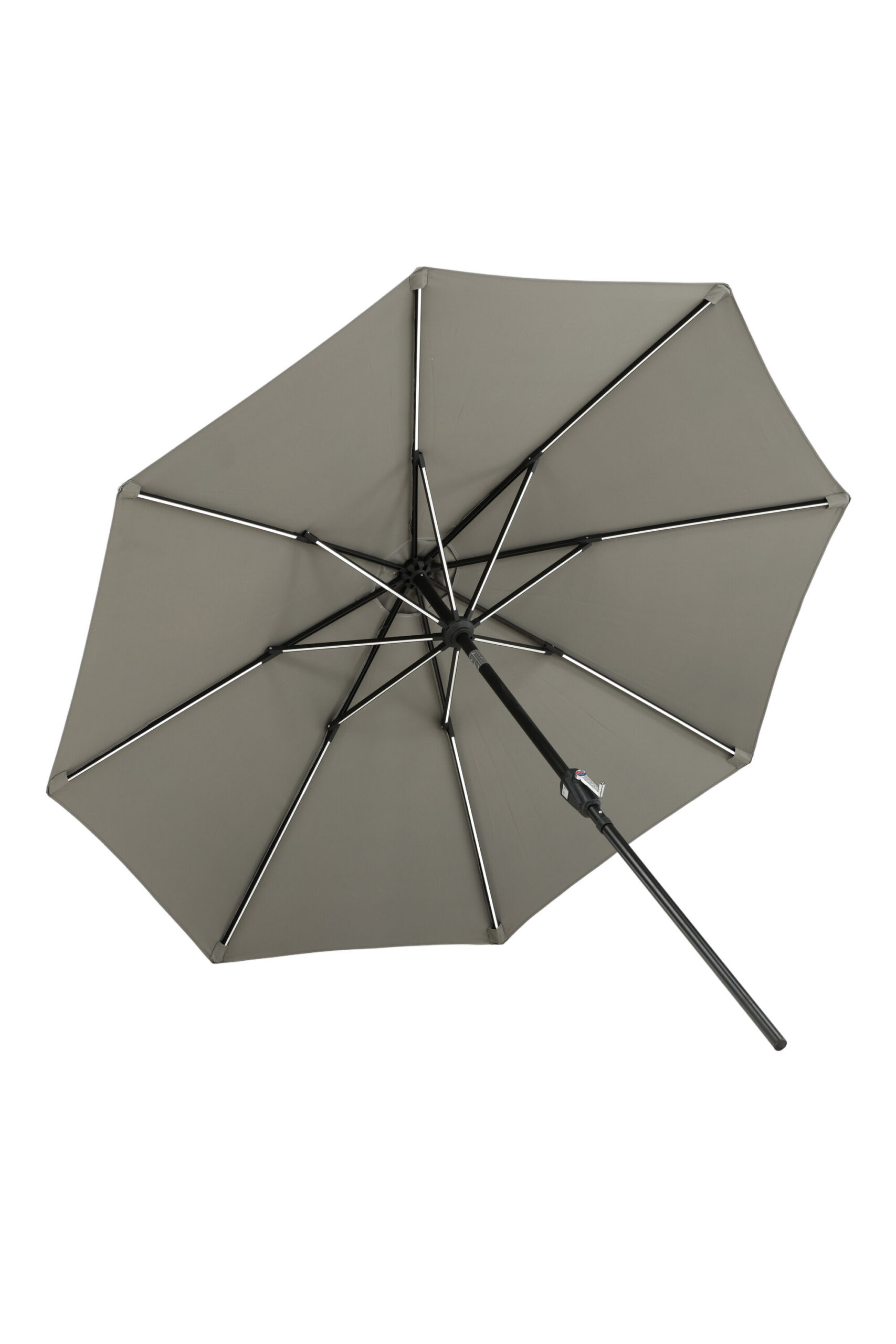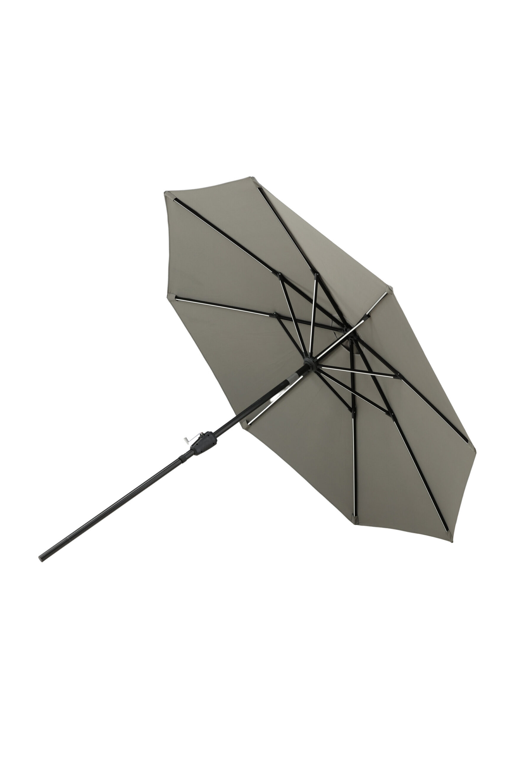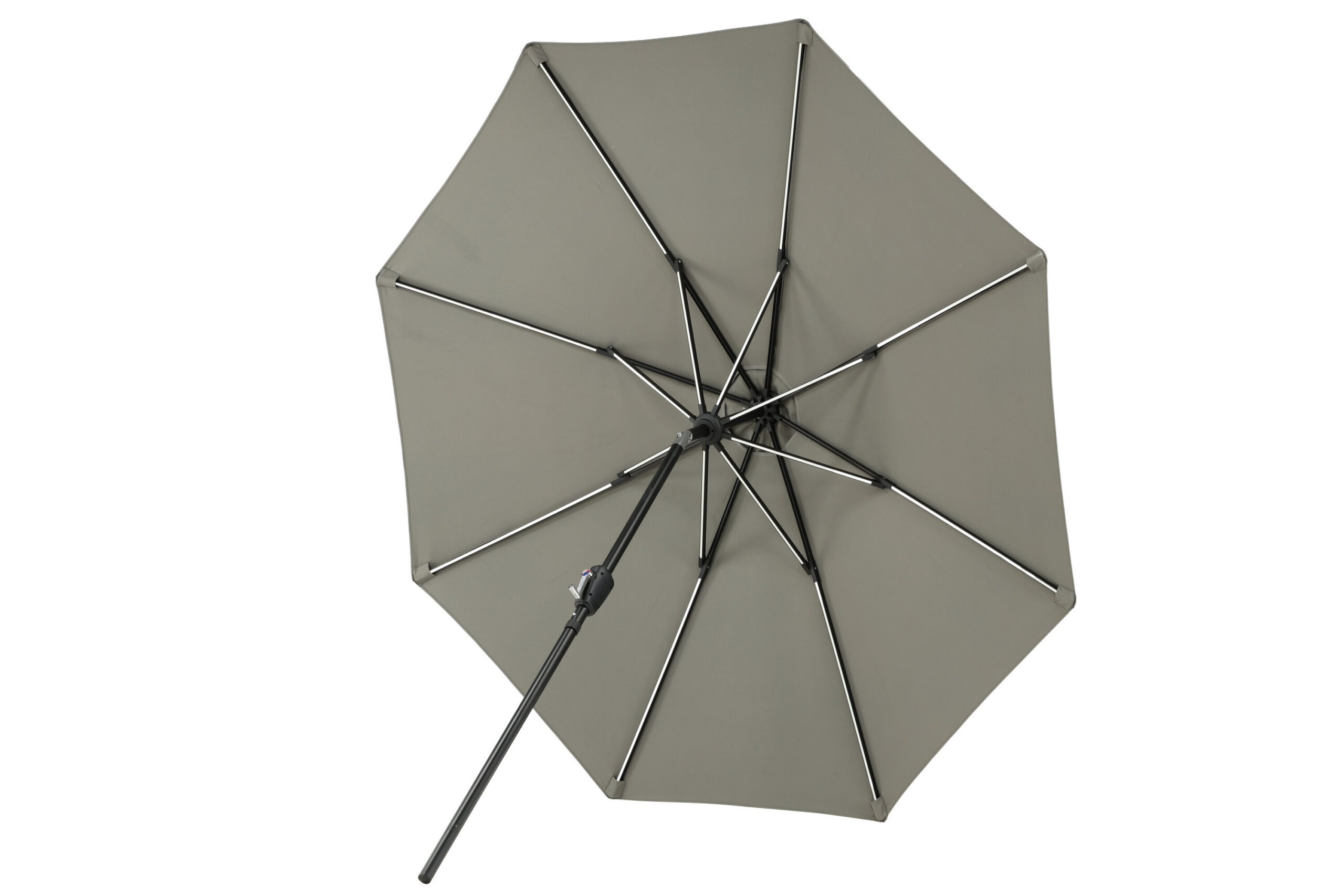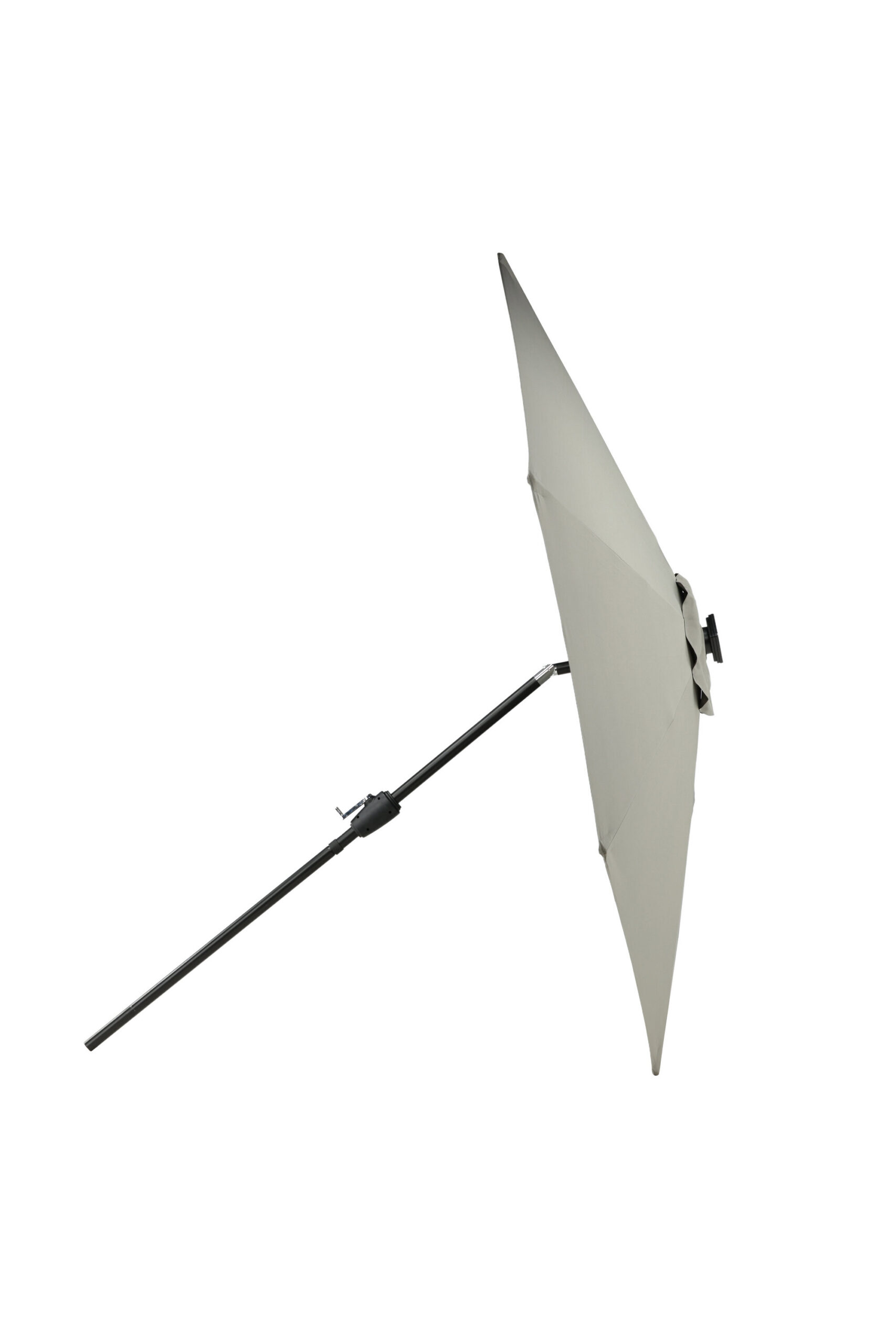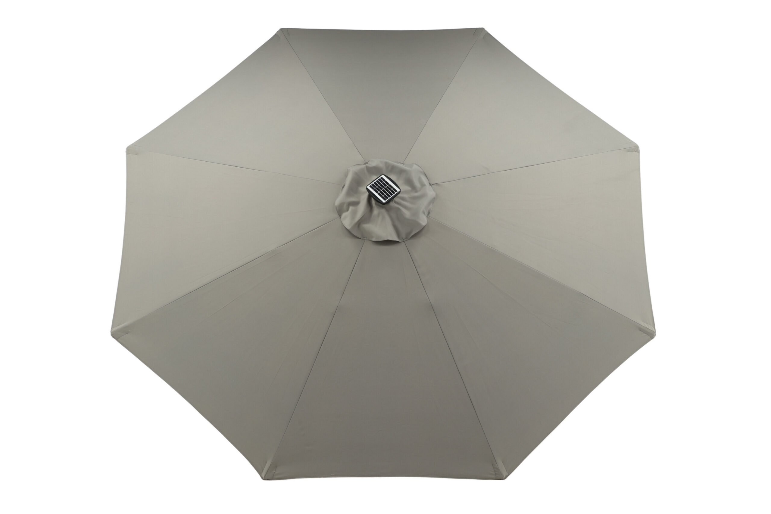 Eraldatud halli kangaga päikesevari, mis sobib ideaalselt laiskadeks päevadeks varjus! Liigutage seda oma siseõuel vastavalt oma vajadustele. LED-valgustus annab õhtuti hubase valguse.