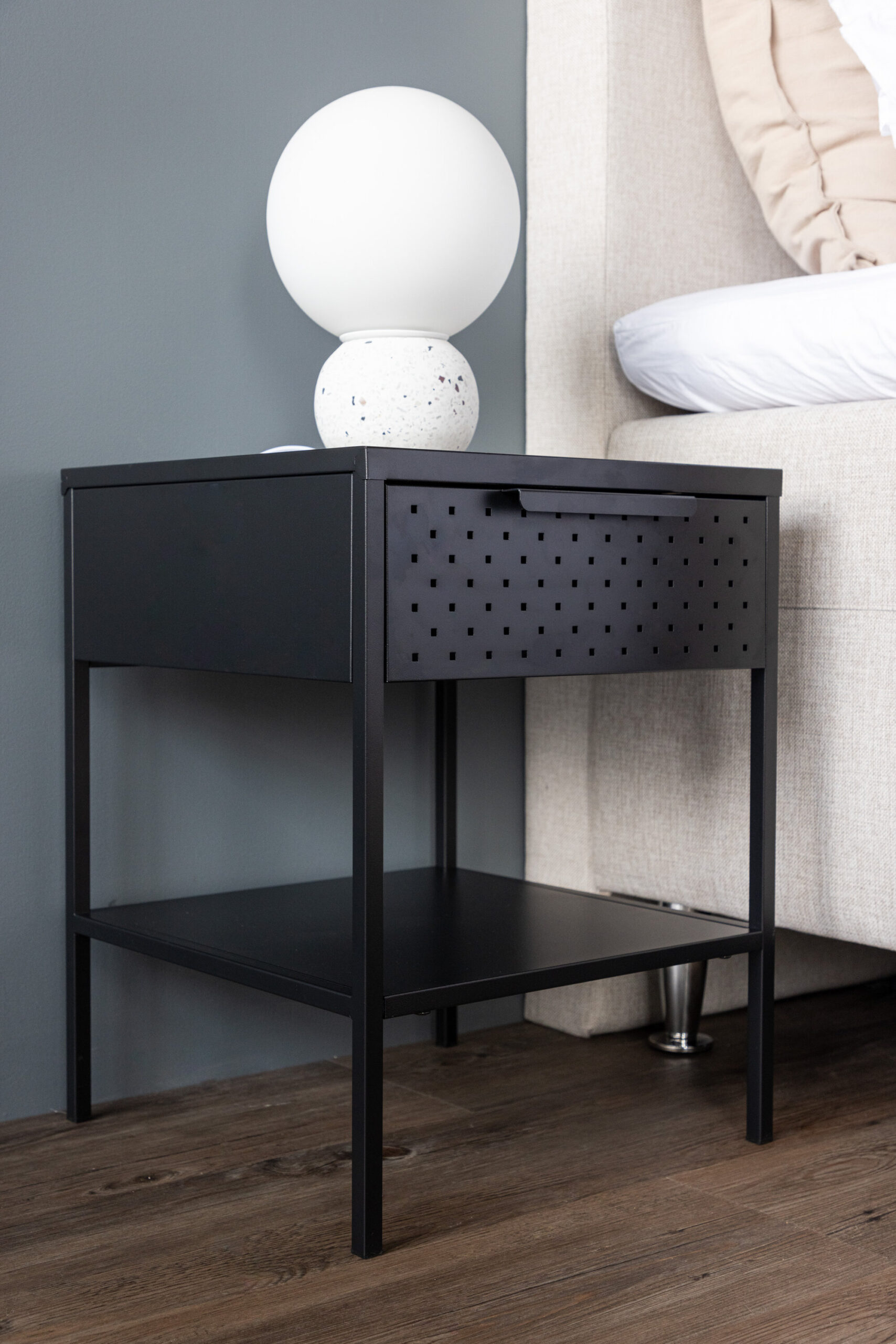 Pulbervärvitud must teras lisab öökapile elegantsi ja muudab selle hõlpsaks sobitamiseks teie üldise sisustusega. Iga detail on hoolikalt kavandatud, et luua teie toas harmooniline õhkkond.