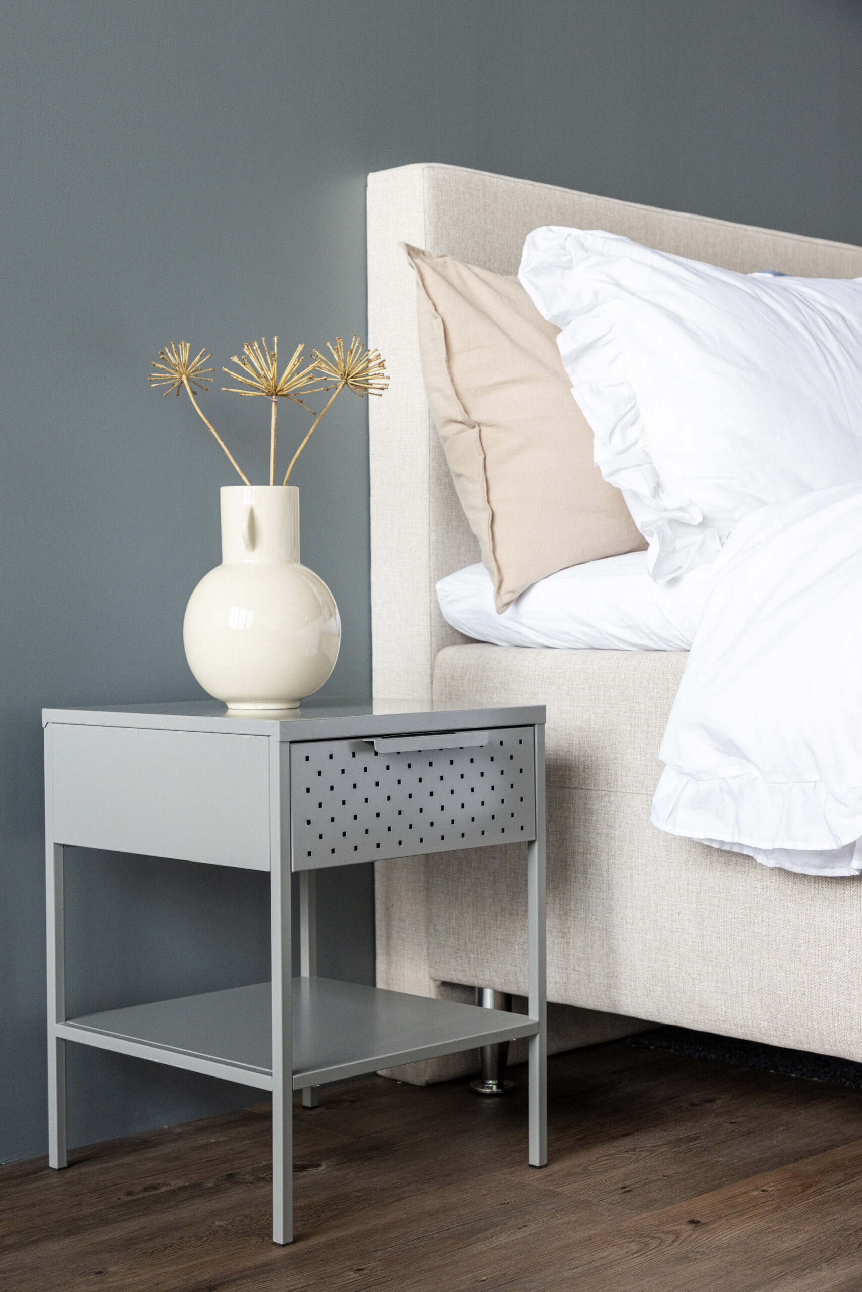 Aga räägime ka ilusast värvist. Pulbervärvitud hall teras lisab rafineeritust. Ükskõik, kas see sobib teie olemasoleva interjööriga või loob huvitava kontrasti, öökapp jääb alati silma.