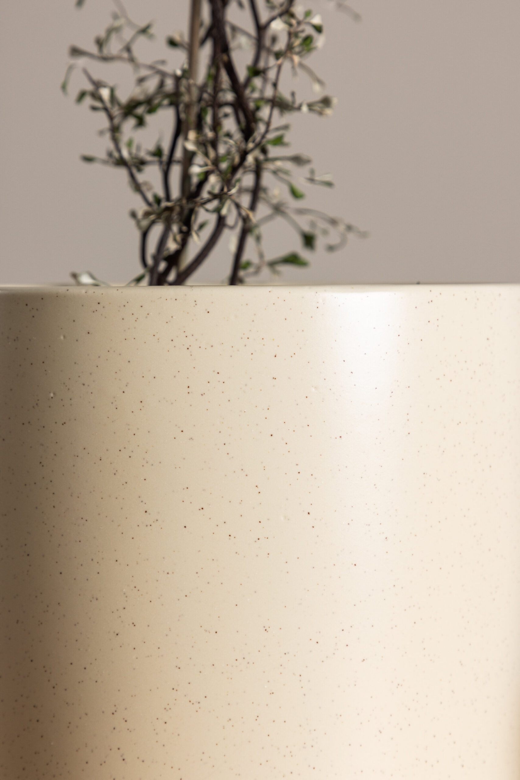 Lubage poti abil oma kodus kunstiline väljendus, Sane. See väikeste mustade täppidega beež pott on lummav looming, mis lisab teie sisekujundusele mängulise ja loomingulise hõngu.