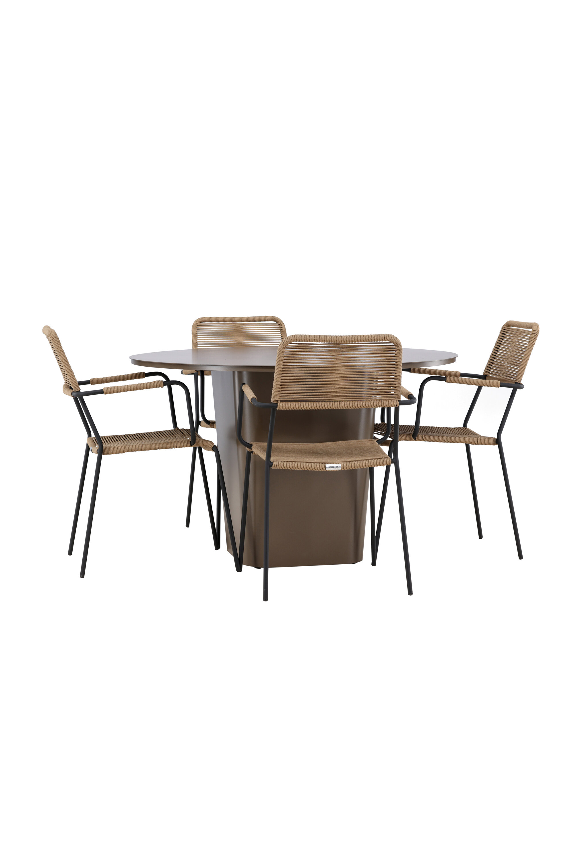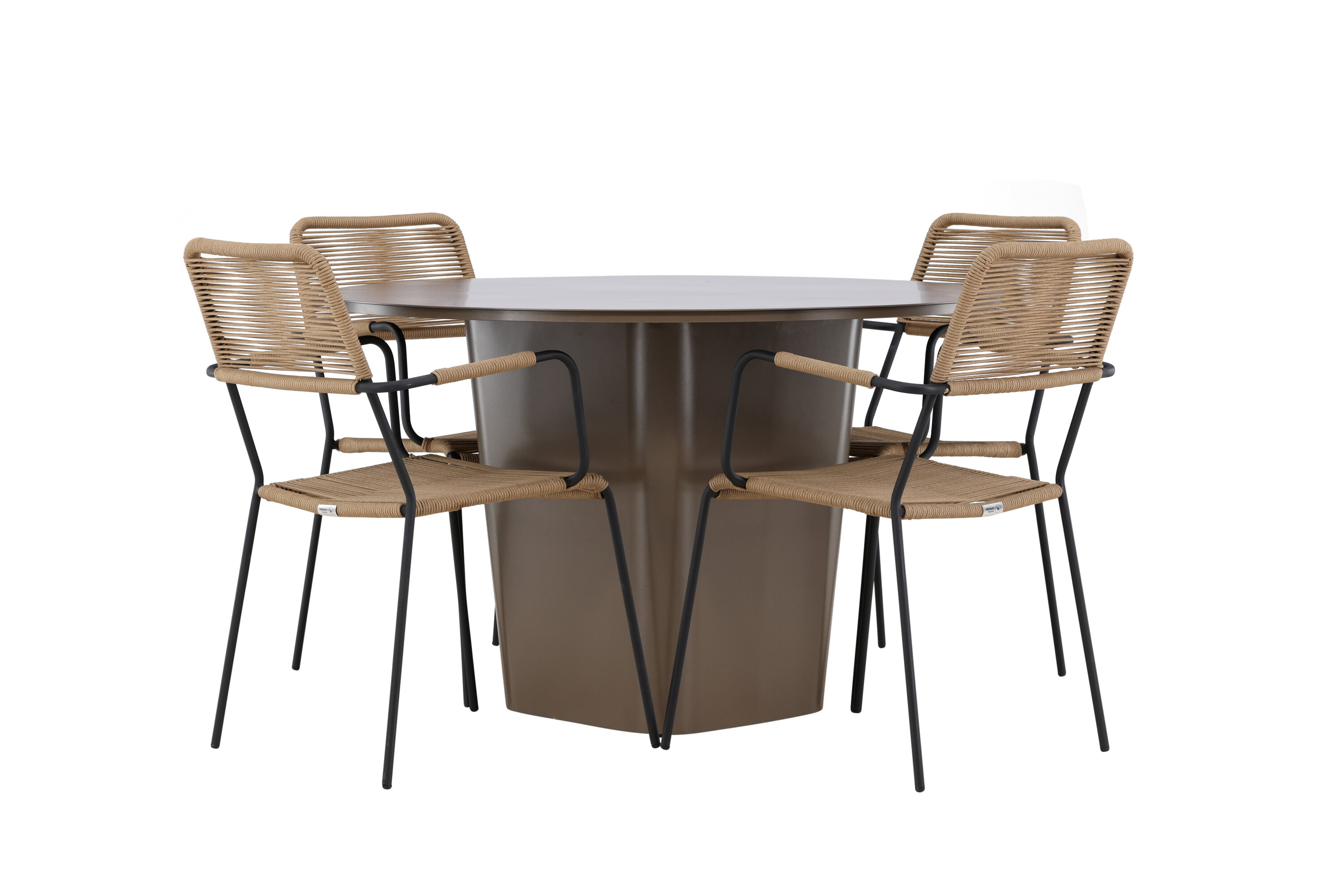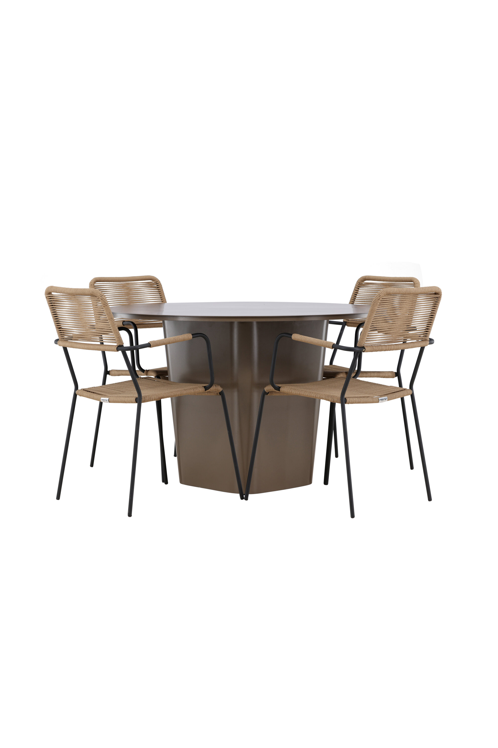Jõulisest pruunist alumiiniummaterjalist valmistatud söögikomplekti keskpunkt on Santa Fe laud. Muljetavaldava 120 cm läbimõõduga pakub see palju ruumi perekondlike õhtusöökide või lõõgastavate sõpradega koosviibimiseks õues.