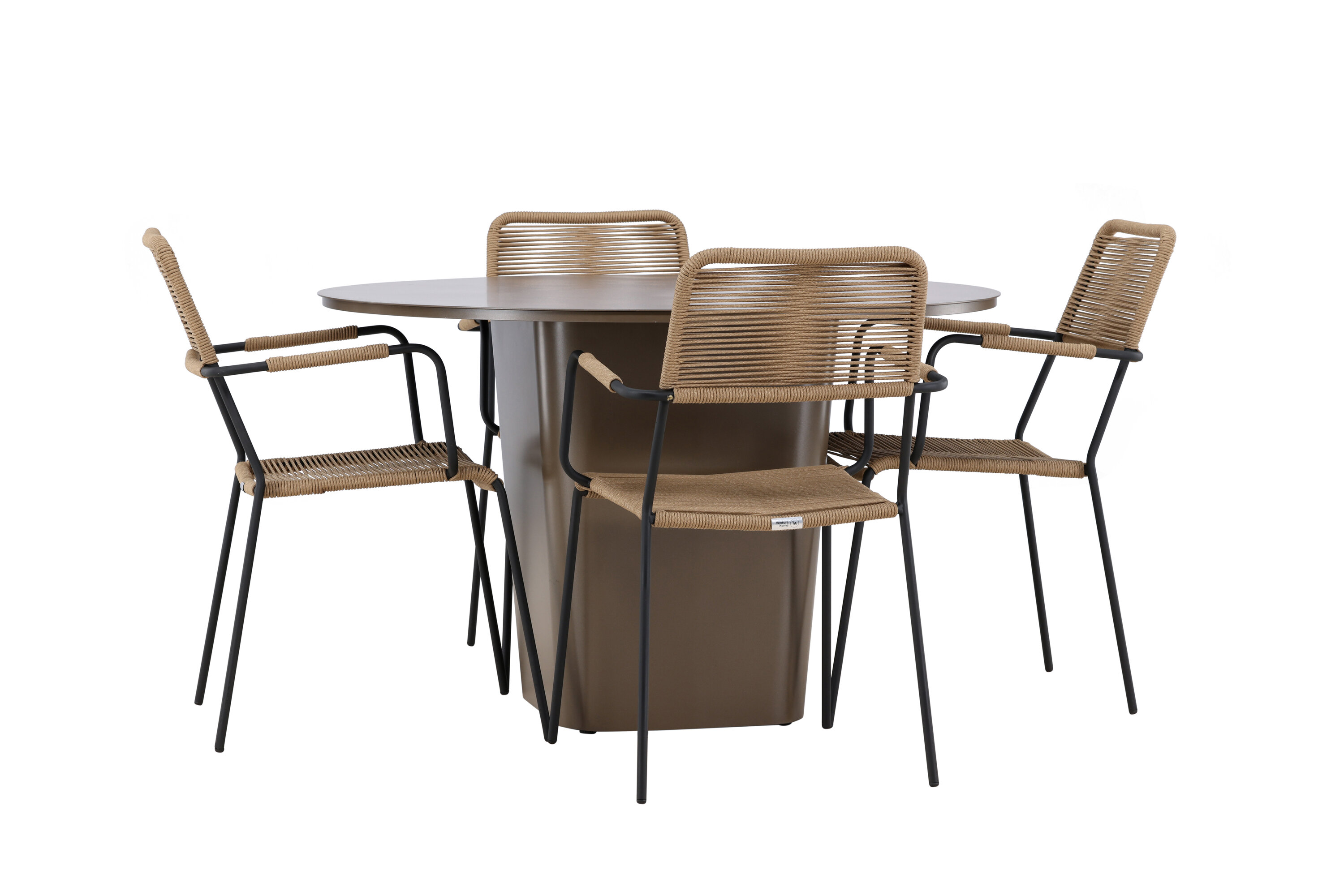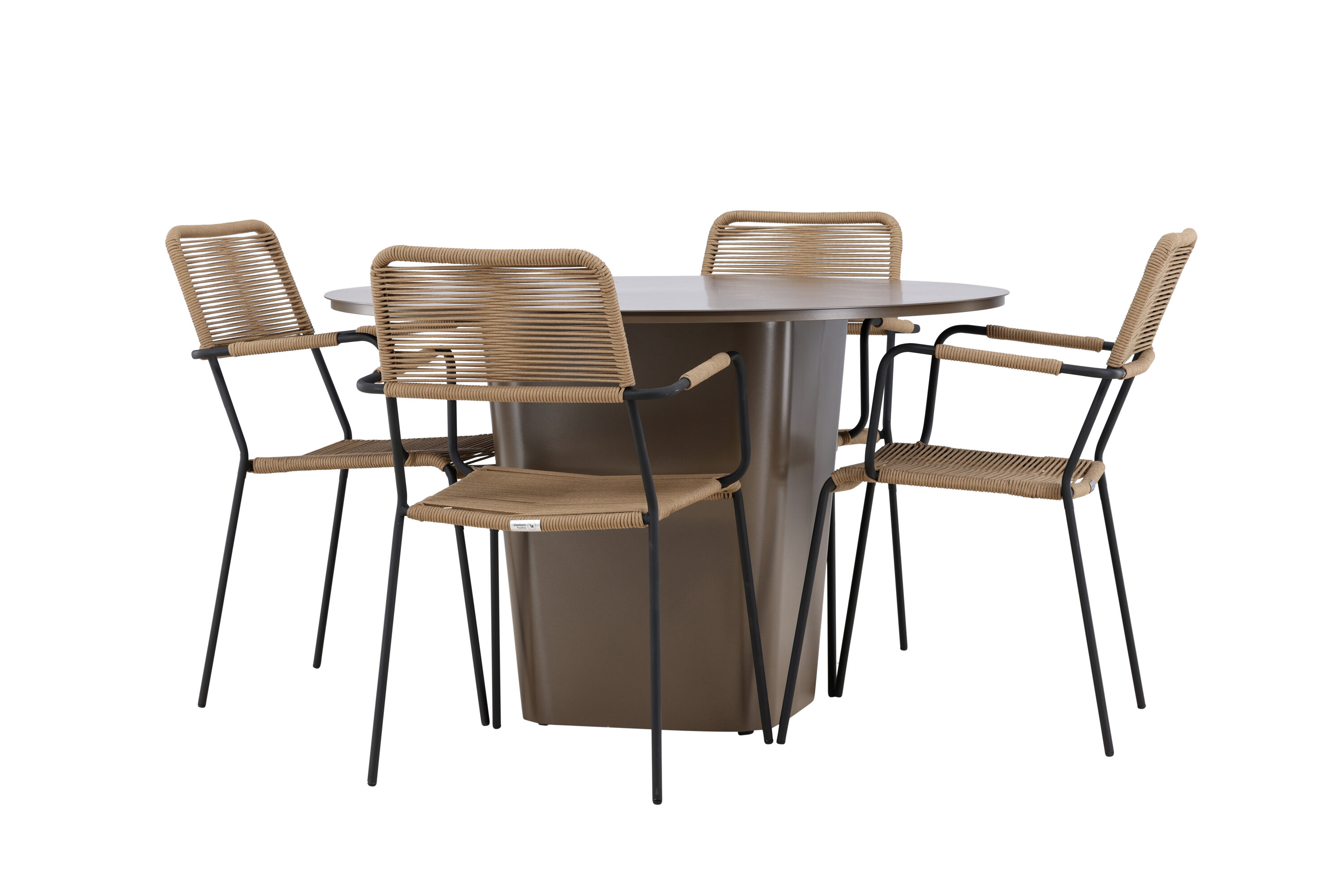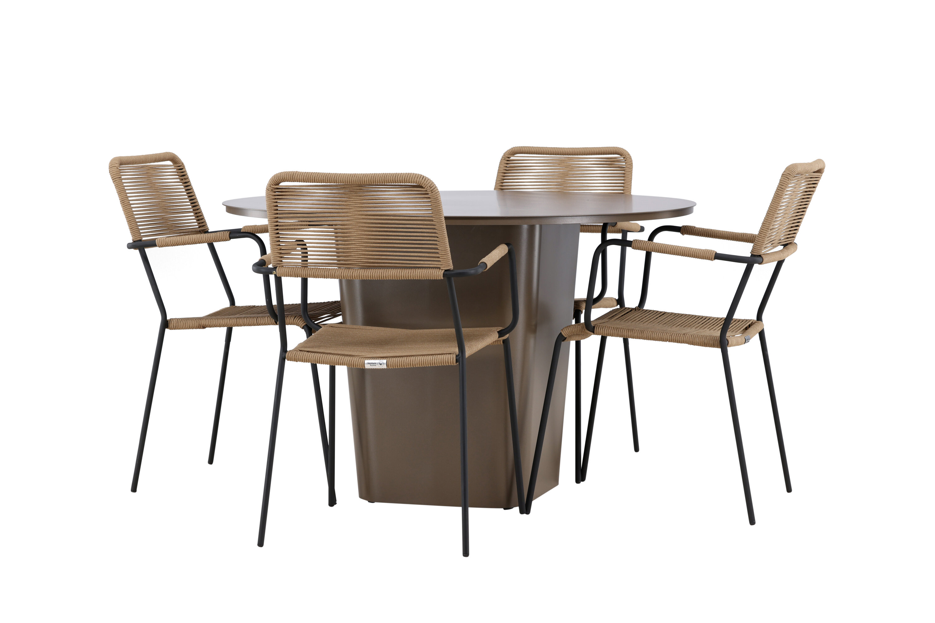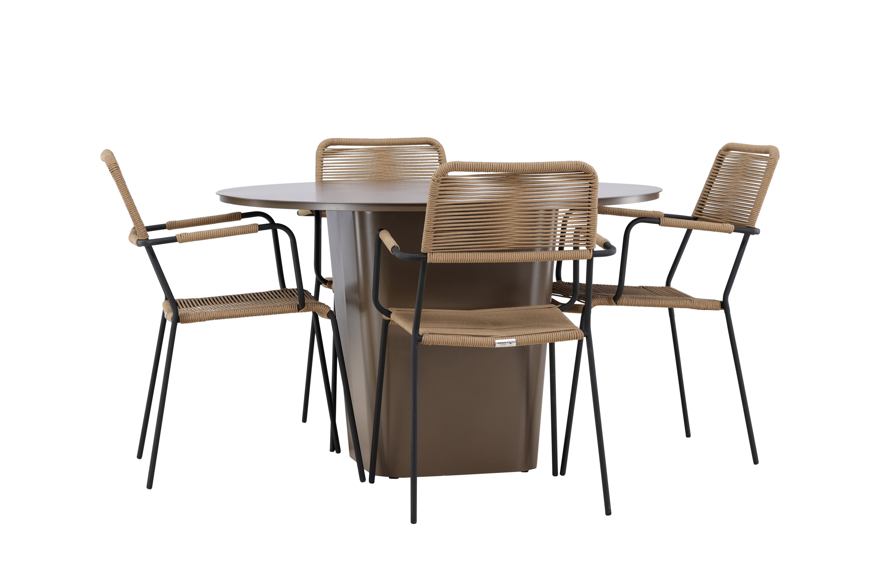 Jõulisest pruunist alumiiniummaterjalist valmistatud söögikomplekti keskpunkt on Santa Fe laud. Muljetavaldava 120 cm läbimõõduga pakub see palju ruumi perekondlike õhtusöökide või lõõgastavate sõpradega koosviibimiseks õues.