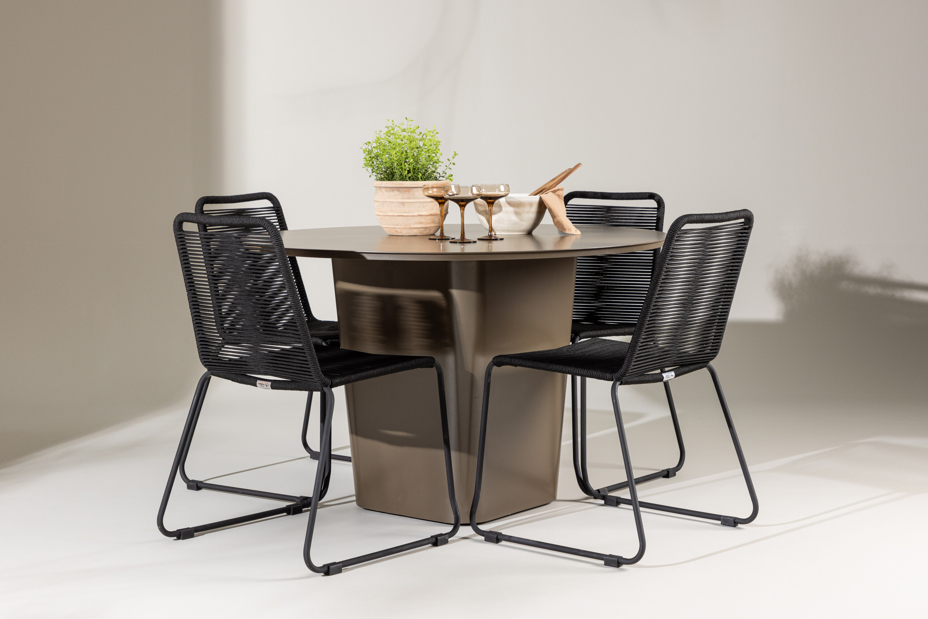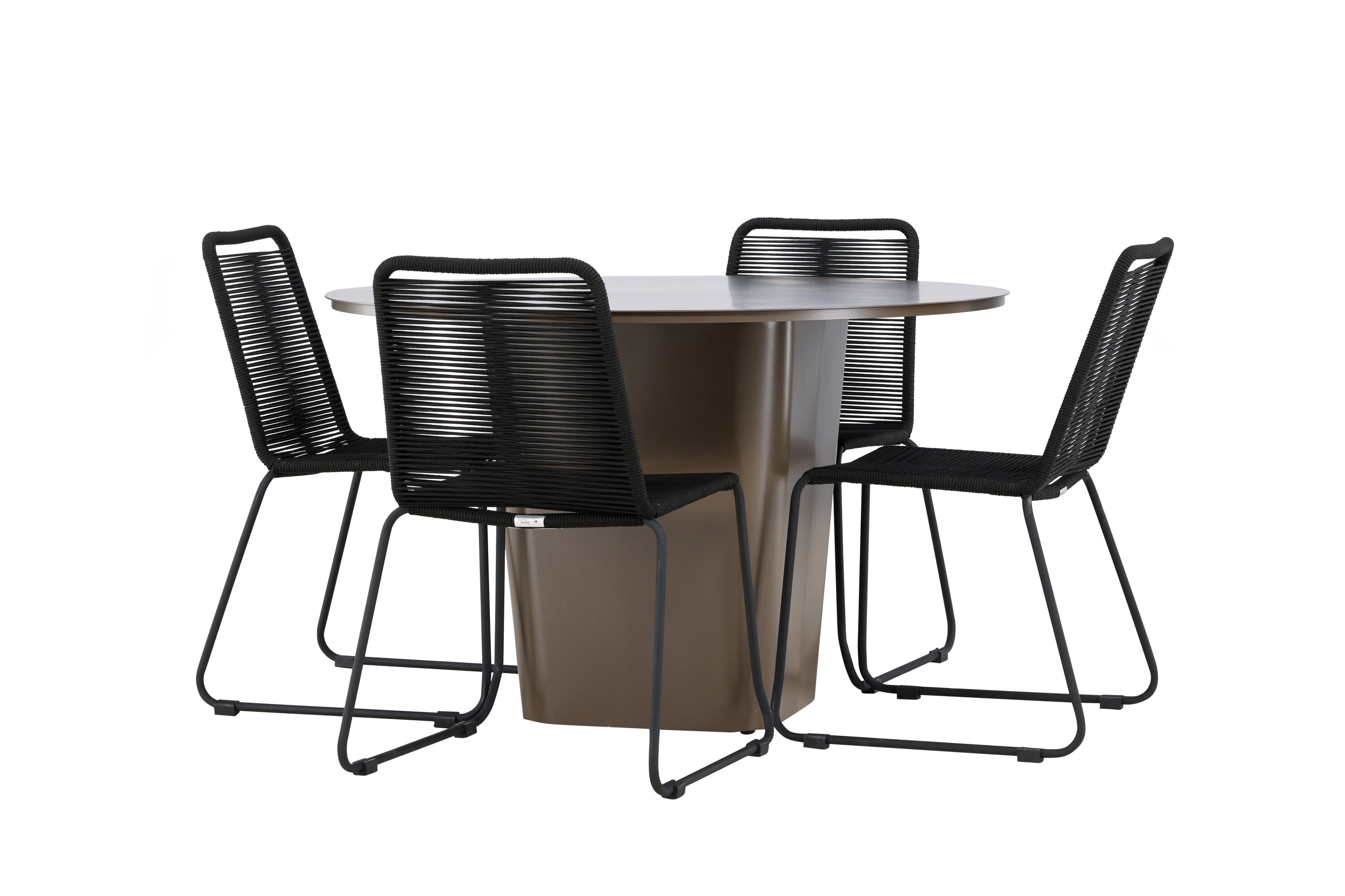 Nelja kaasasoleva Lindose tooliga pakub see söögikomplekt mugavat ja stiilset istumiskogemust nii väikesteks kui ka suuremateks koosviibimisteks õues.