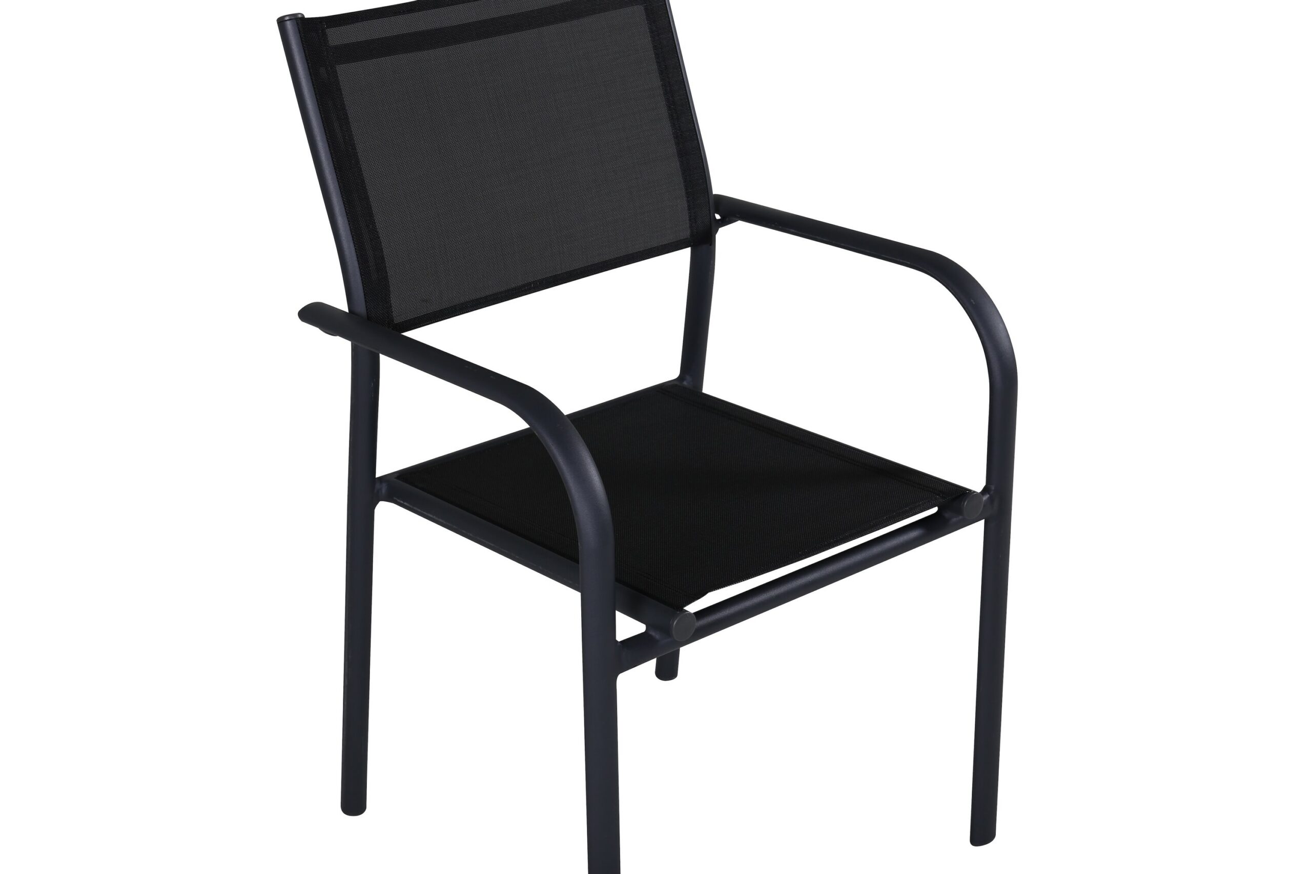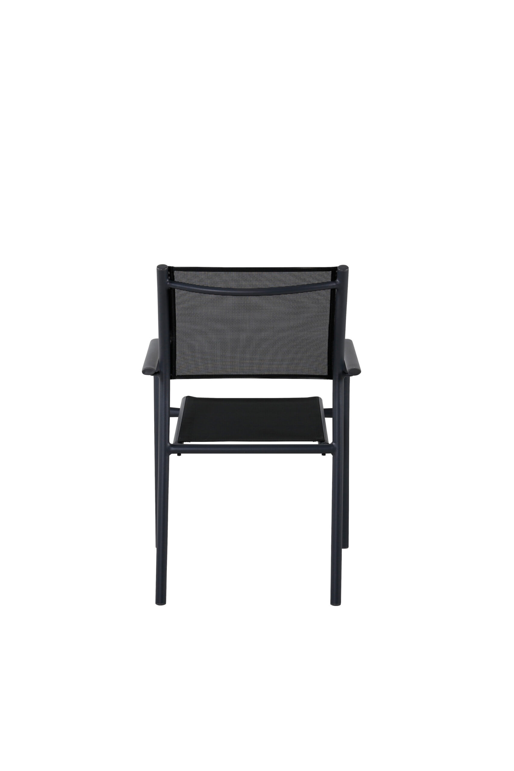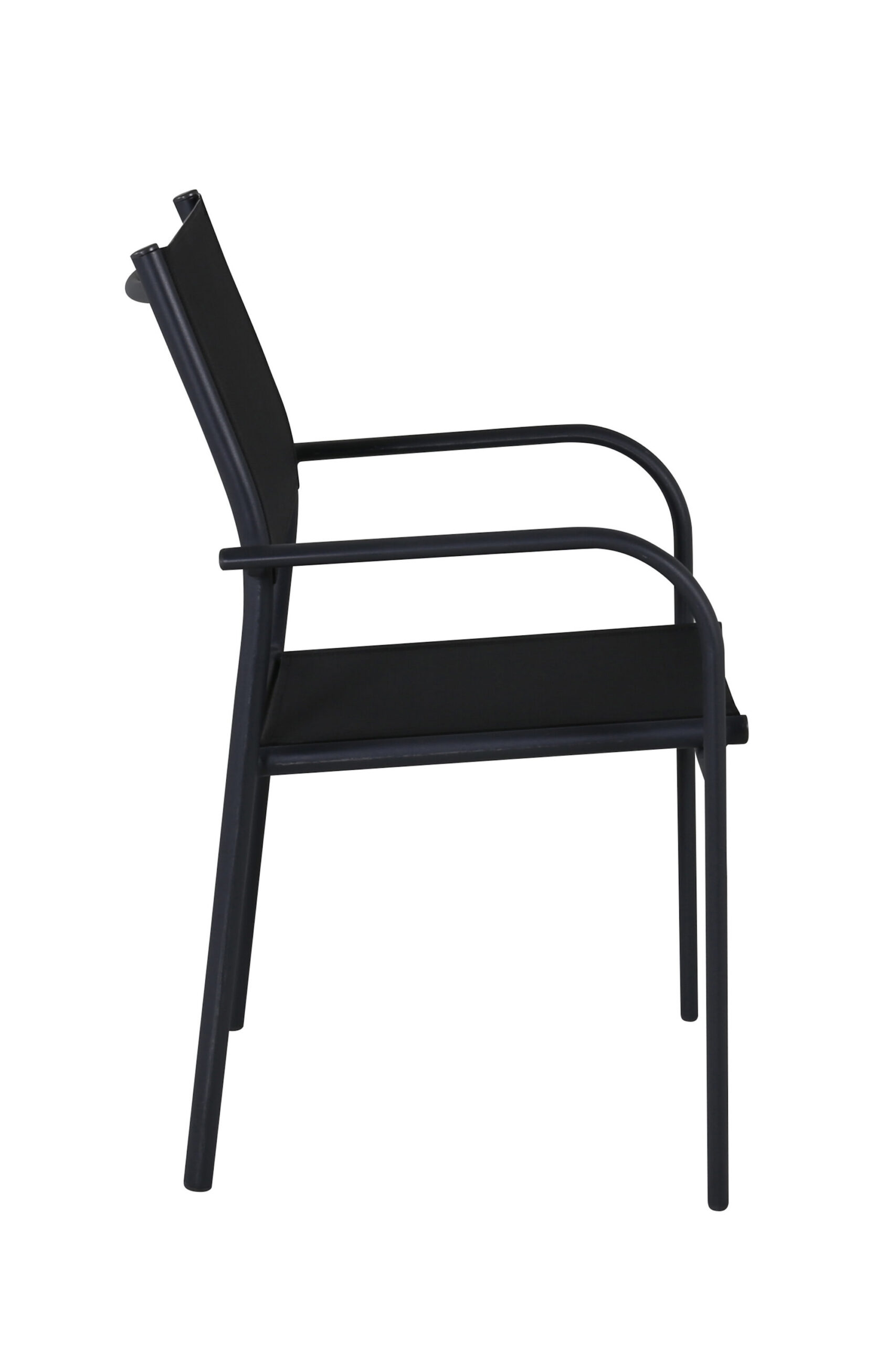 Sisusta oma väliruum praktiliselt Santorini sarja stiilse musta söögitooliga. Alumiiniumist ja musta tekstiilist istmega tool ühendab moodsa disaini igapäevase mugavusega. See on virnastatav, et seda oleks lihtne hoida, mistõttu on see ideaalne paindlikuks õues elamiseks. Tugev tool, mis saadab sind läbi paljude tulevaste imeliste suveõhtusöökide!