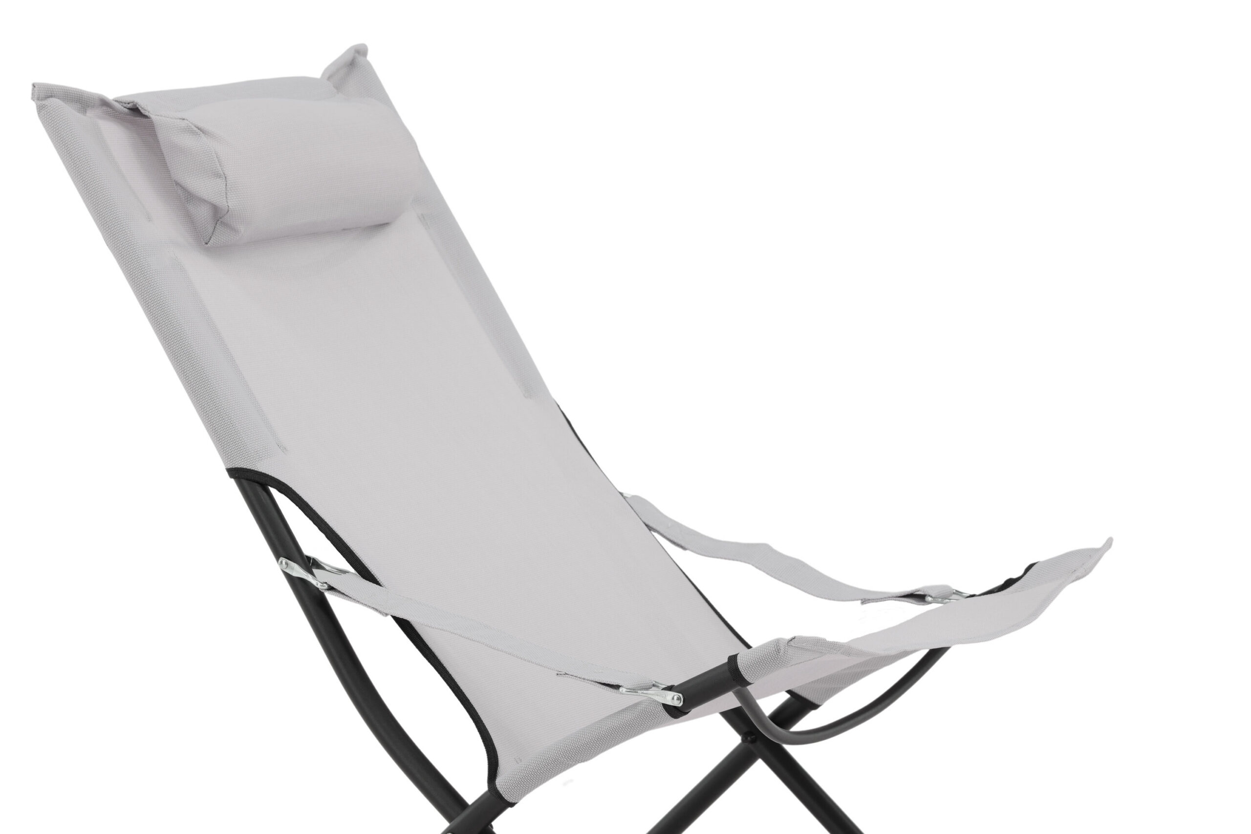 Uskumatult mugav ja praktiline hall lamamistool. Ideaalne rõdule kandmiseks või randa kaasaskandmiseks. Toolil on padi, mida saab kokku panna. Lihtne ja lihtne voltida.