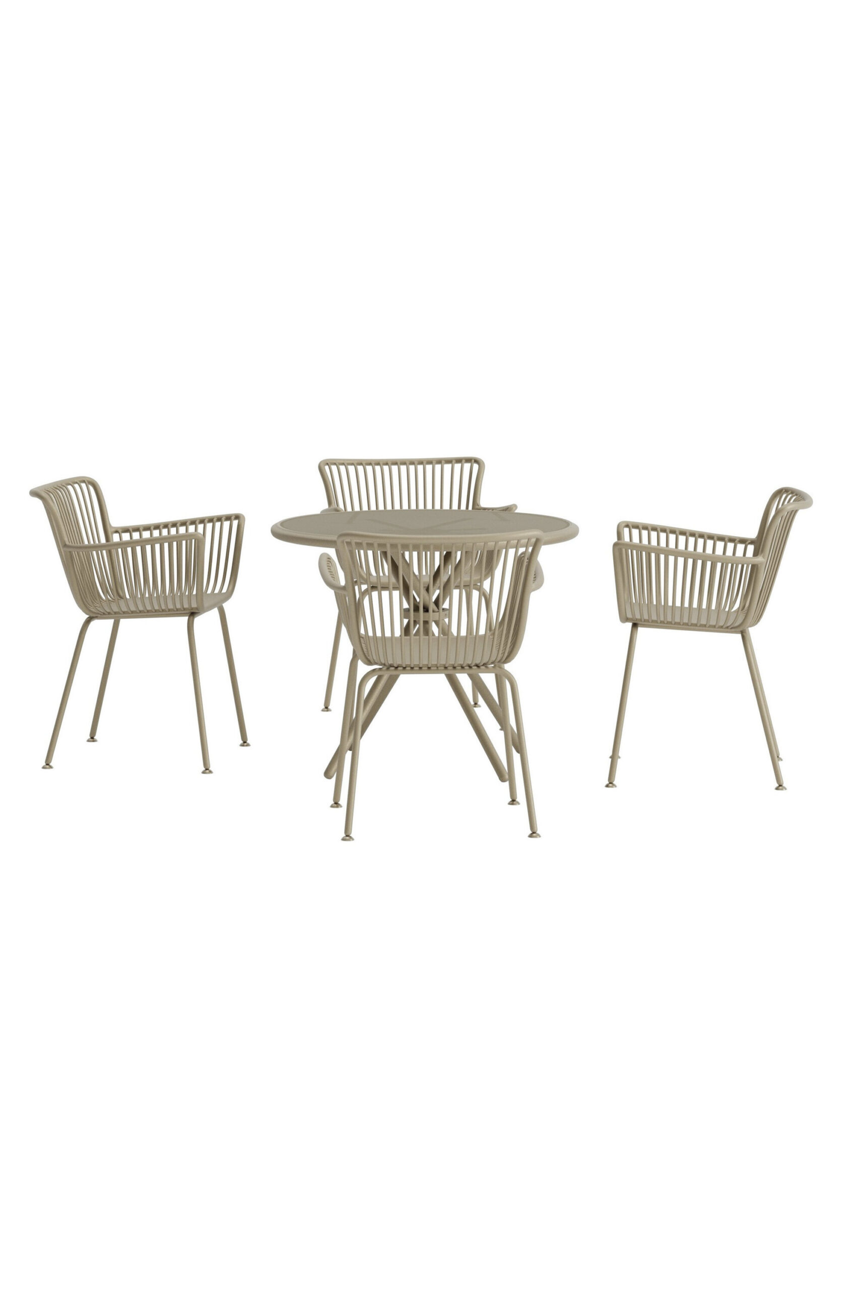 Beežis söögikomplekt Sifnos on stiilne ja kaasaegne lahendus terrassile või aeda. Komplekt koosneb õhulise ja elegantse disainiga ümarast lauast ja neljast toolist, mis loob kutsuva välimuse. Mugavad toolid julgustavad kauem viibima, ühtlane värvilahendus aga annab harmoonilise terviku. Sifnose söögikomplekt on ideaalne valik neile, kes soovivad ühendada oma õues paiknevas söögitoas lihtsuse, mugavuse ja ajatu disaini.