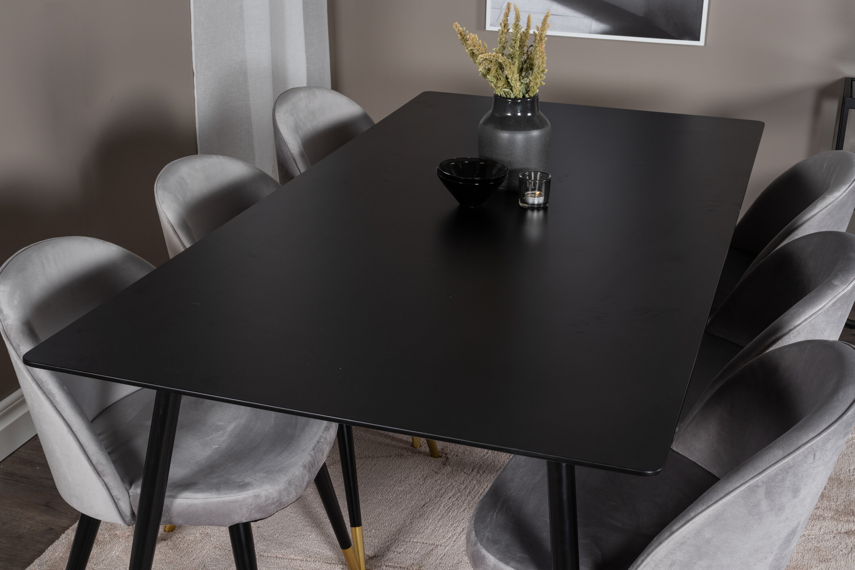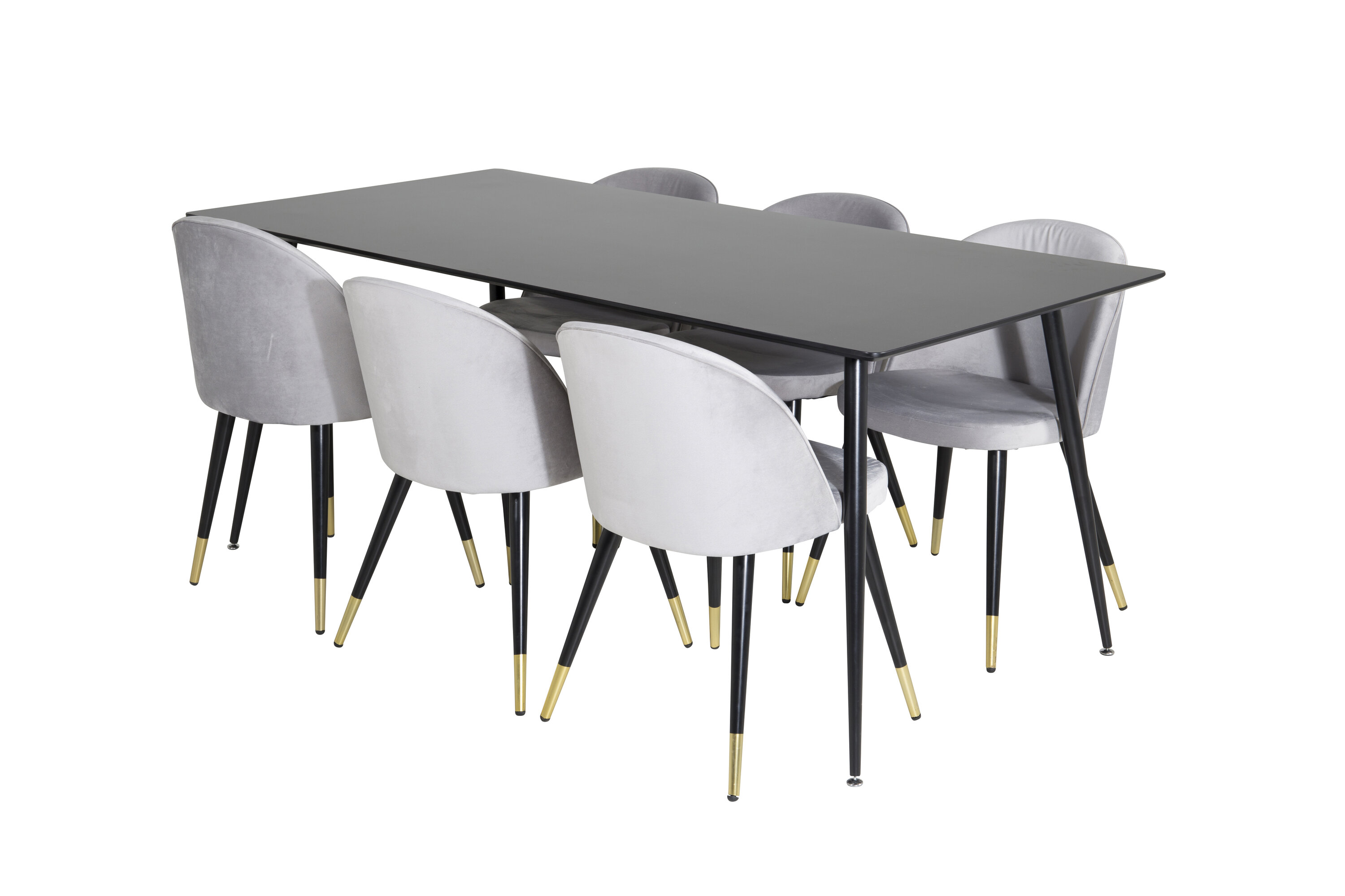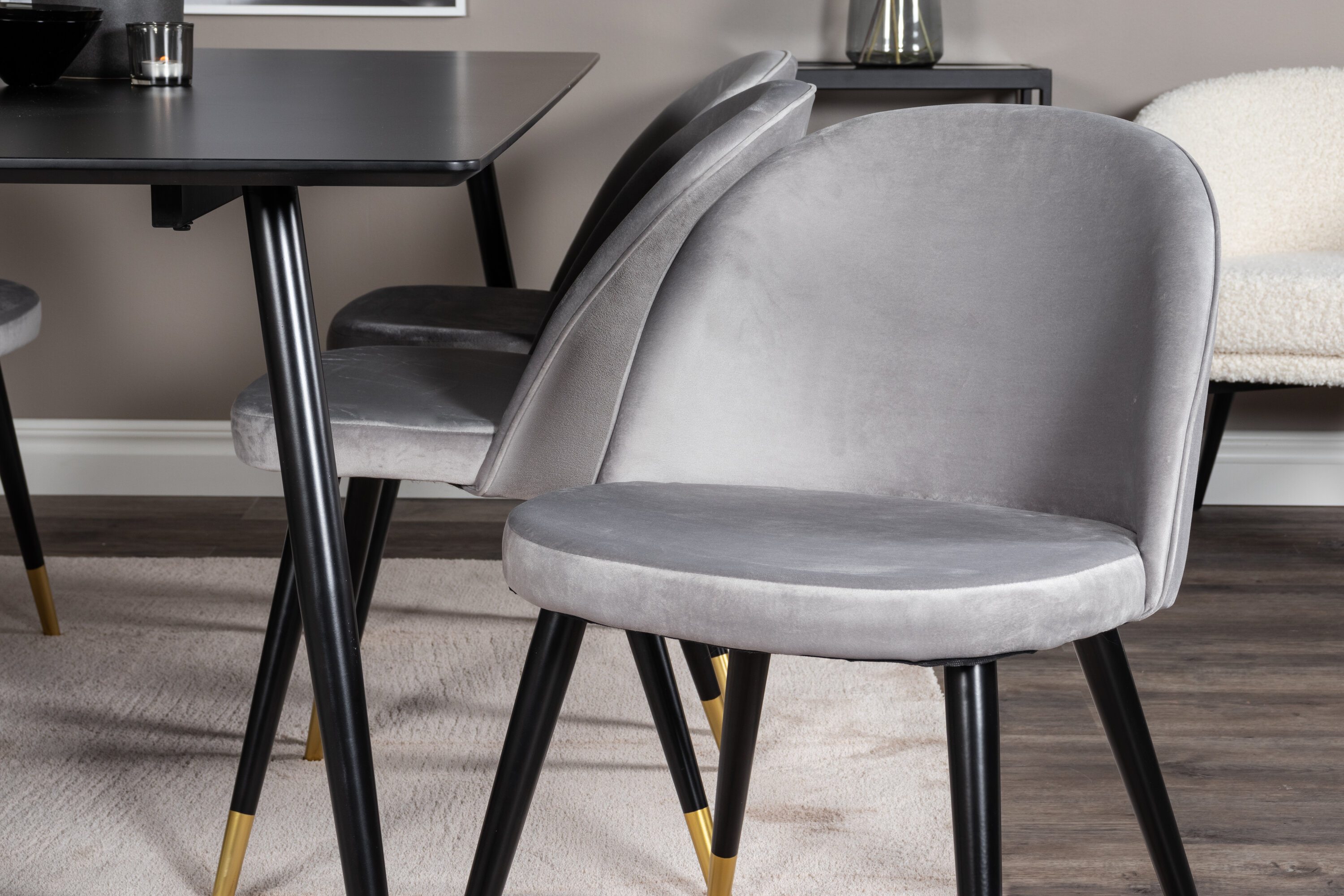 Meie luksuslikud ja istumissõbralikud hallid söögitoolid Velvet koos söögilauaga Sinar lähevad koju enamikus majapidamistes. Laud, kus on palju ruumi õhtusöökideks ja suhtlemiseks. Sisustus kuldse serva jaoks igapäevaelus – koju tulles peaks olema mõnus tunne!
