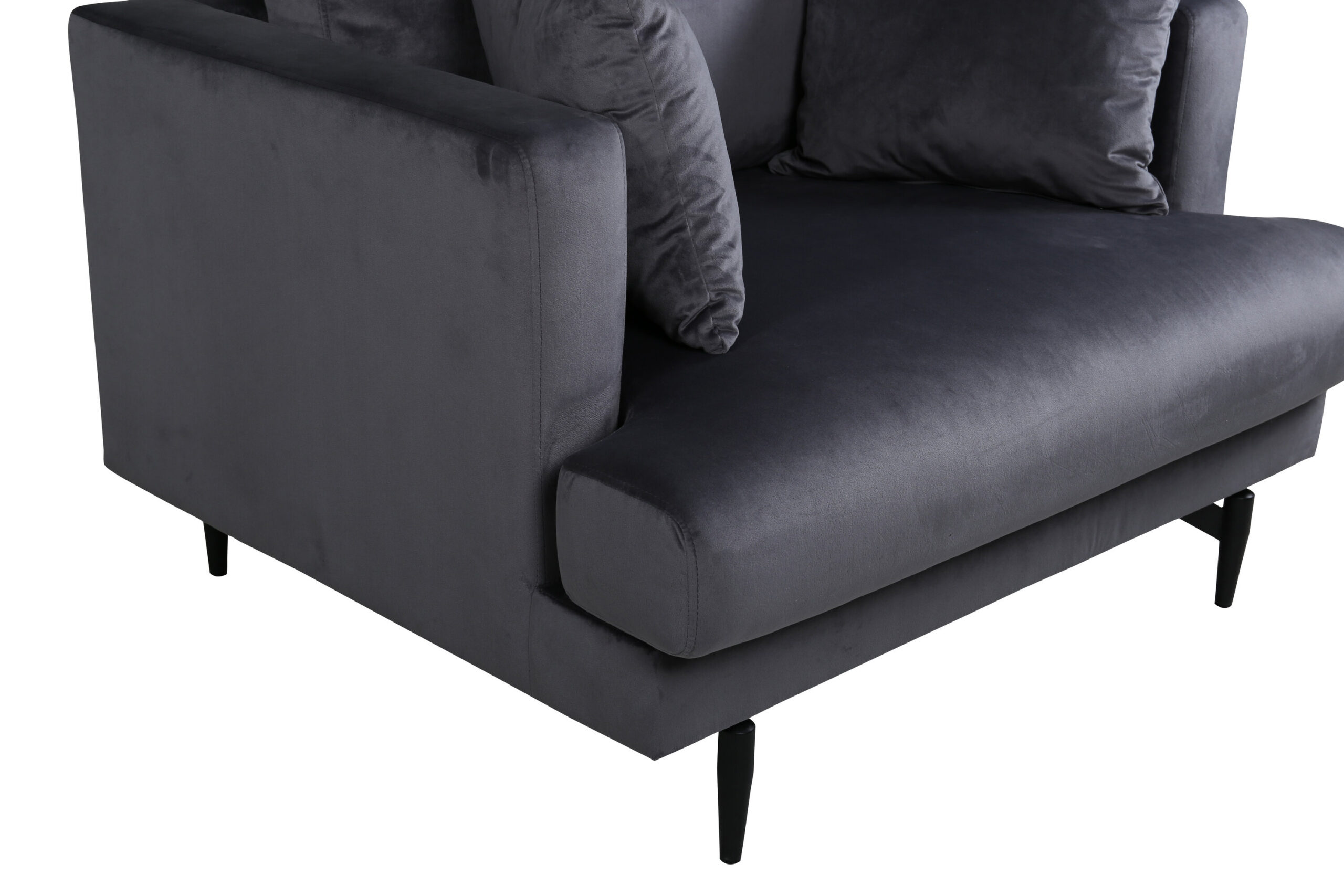 Sisusta oma kodu stiilselt, mugavalt ja kutsuvalt Sofia sarja hubase tugitooliga! Disain on minimalistlik koos sirgete põhjamaiste vormide, pehmete patjade ja hõrgus tumehallis sileda sametpolstriga. Mustast pulbervärvitud metallist jalad annavad tugitoolile stiilse tõuke ja aitavad kaasa elegantsele fookuspunktile. Uskumatult läbimõeldud üldine disain lihtsalt polsterdatud tagaküljega, mis võimaldab asetada tugitooli ruumi keskele. Sisusta üksi stiiliikoonina või rühmas koos sobiva diivanikomplektiga.