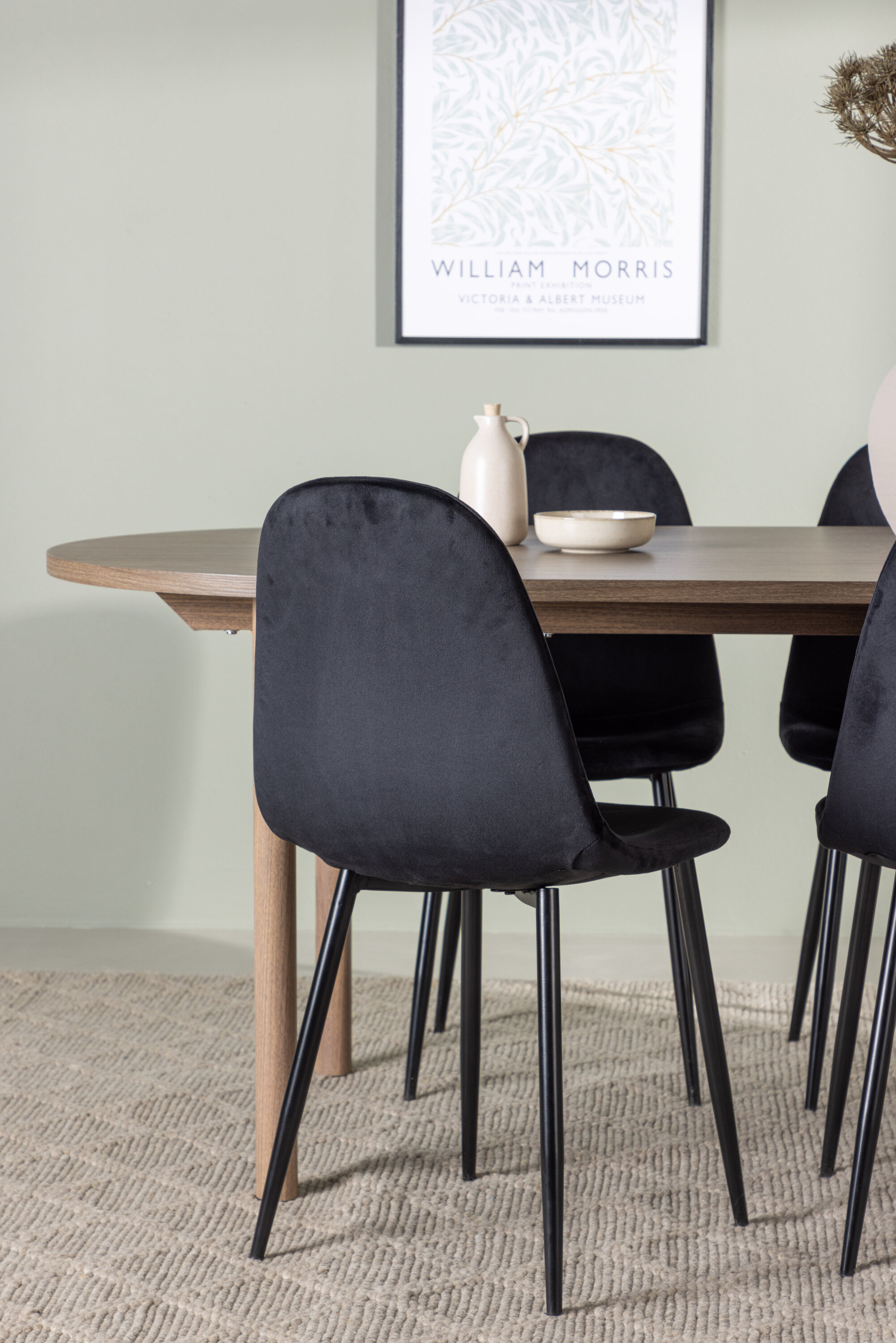 See söögikomplekt sisaldab nelja tooli, mistõttu on see ideaalne väiksemateks koosviibimisteks ja pereõhtusöökideks. Skandinaavialiku disaini ja silmatorkava välimusega ansamblist saab elegantne sisustusdetail, mis tõstab kogu ruumi atmosfääri. Ideaalne stiilse ja kutsuva söögitoakeskkonna loomiseks.