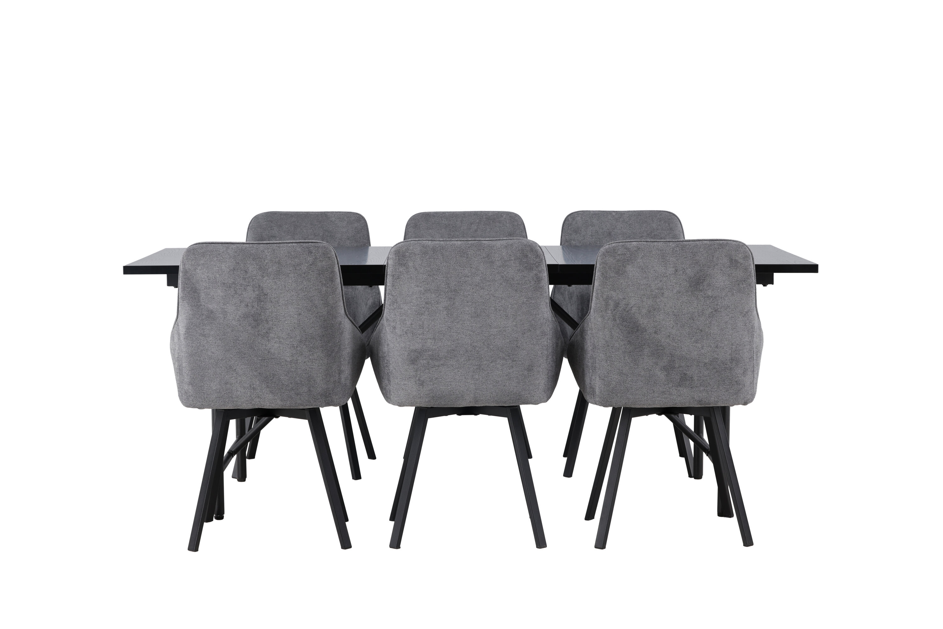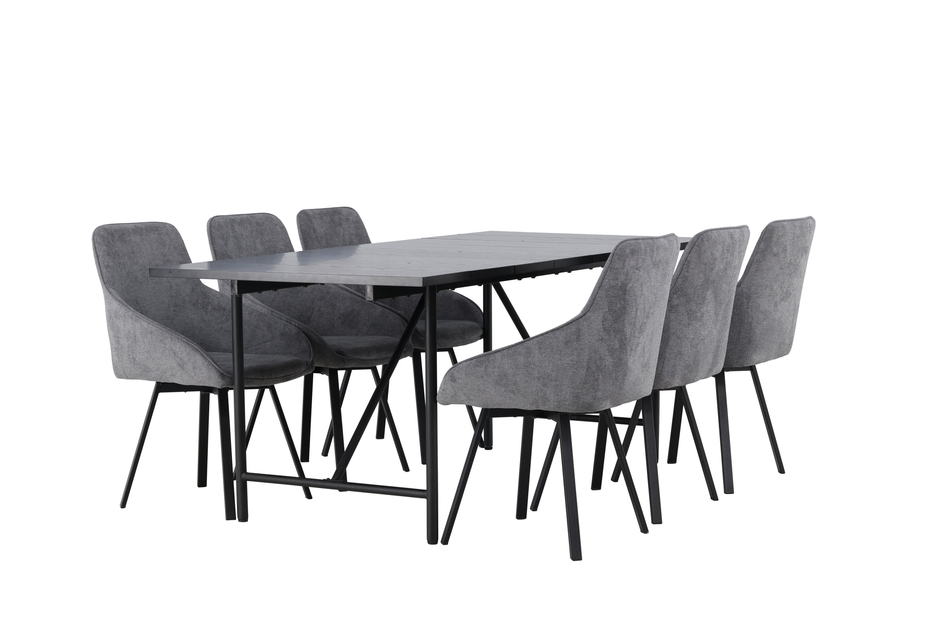 Koos Rosie sarja hallide toolidega muutub see söögikomplekt terviklikuks. Need Skandinaavia disainiga toolid on ühtaegu trendikad ja mugavad. Täielikult polsterdatud halli kangast iste ja mustad elegantsed õrnalt kumera kujuga metallist jalad lisavad teie interjöörile moodsat hõngu. Integreeritud käetugede abil saate nautida lõõgastavat einet, säilitades samal ajal elegantse stiili.