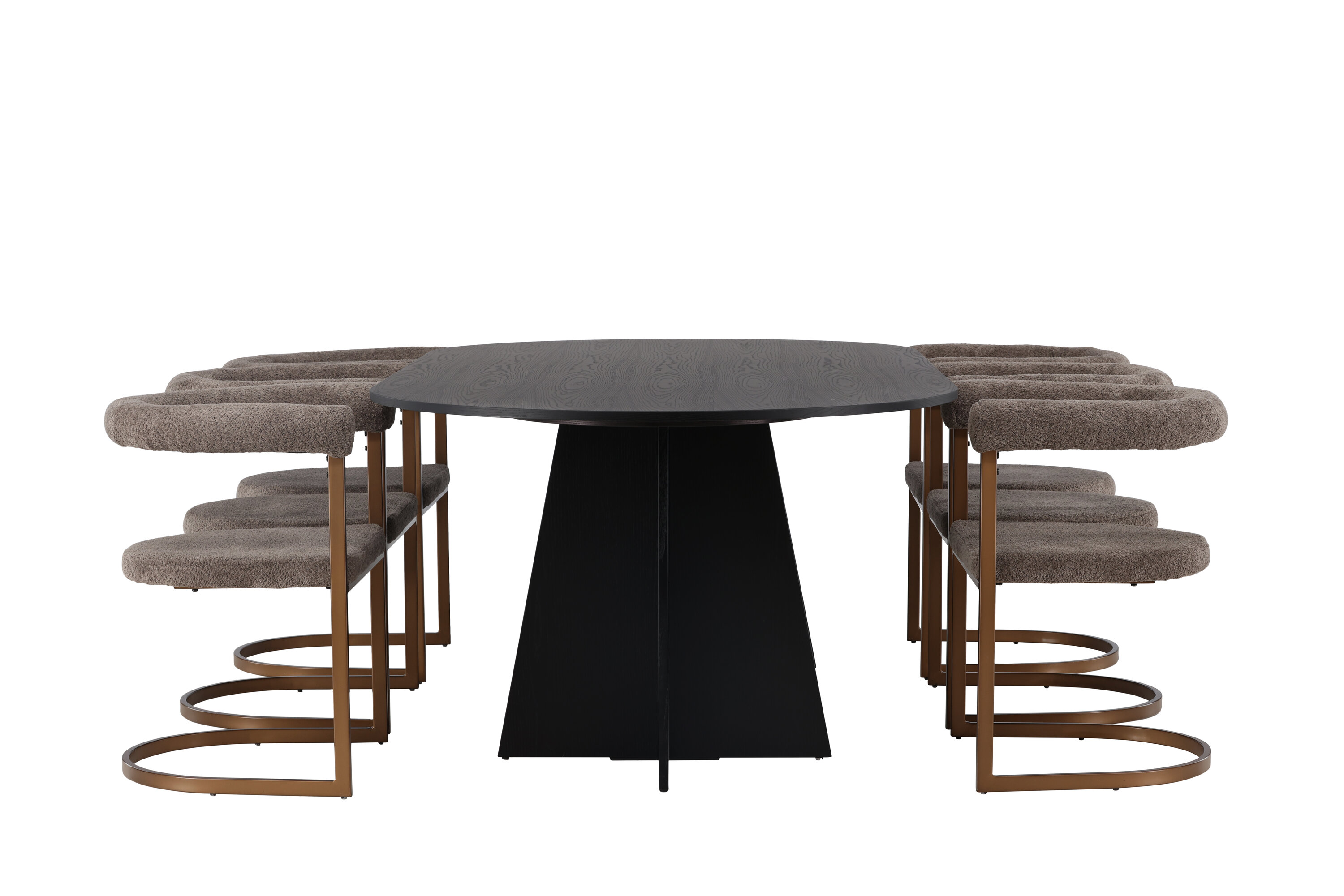 Meie Bootcut seeria ovaalsel söögilaual on minimalistlik ovaalne mustast spooniga MDF-plaadist lauaplaat, mis loob elegantse kontrasti omapärase raamiga. Kaks avatud disainiga ühtlast jalga ei taga mitte ainult stabiilsust, vaid loovad ka visuaalse mulje disainist ja täpsusest. Laua mõõdud 115x230cm.