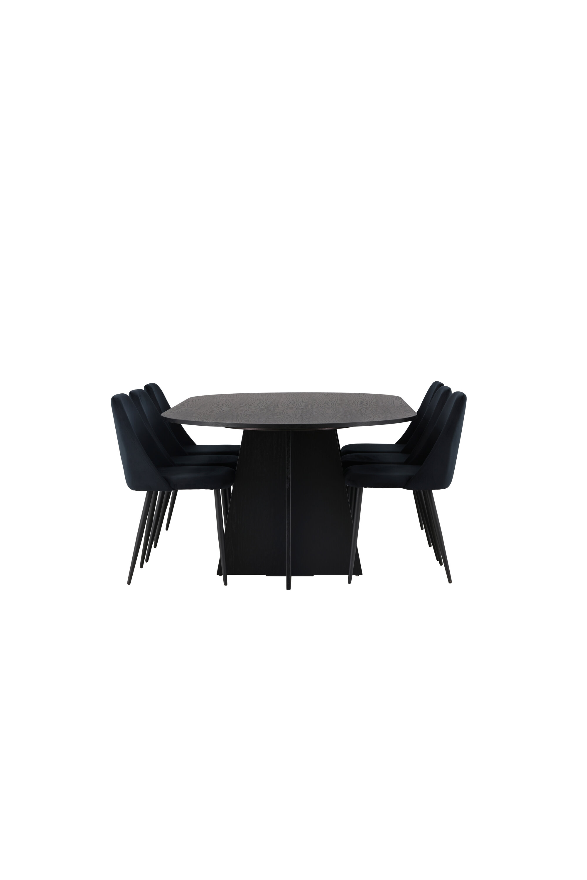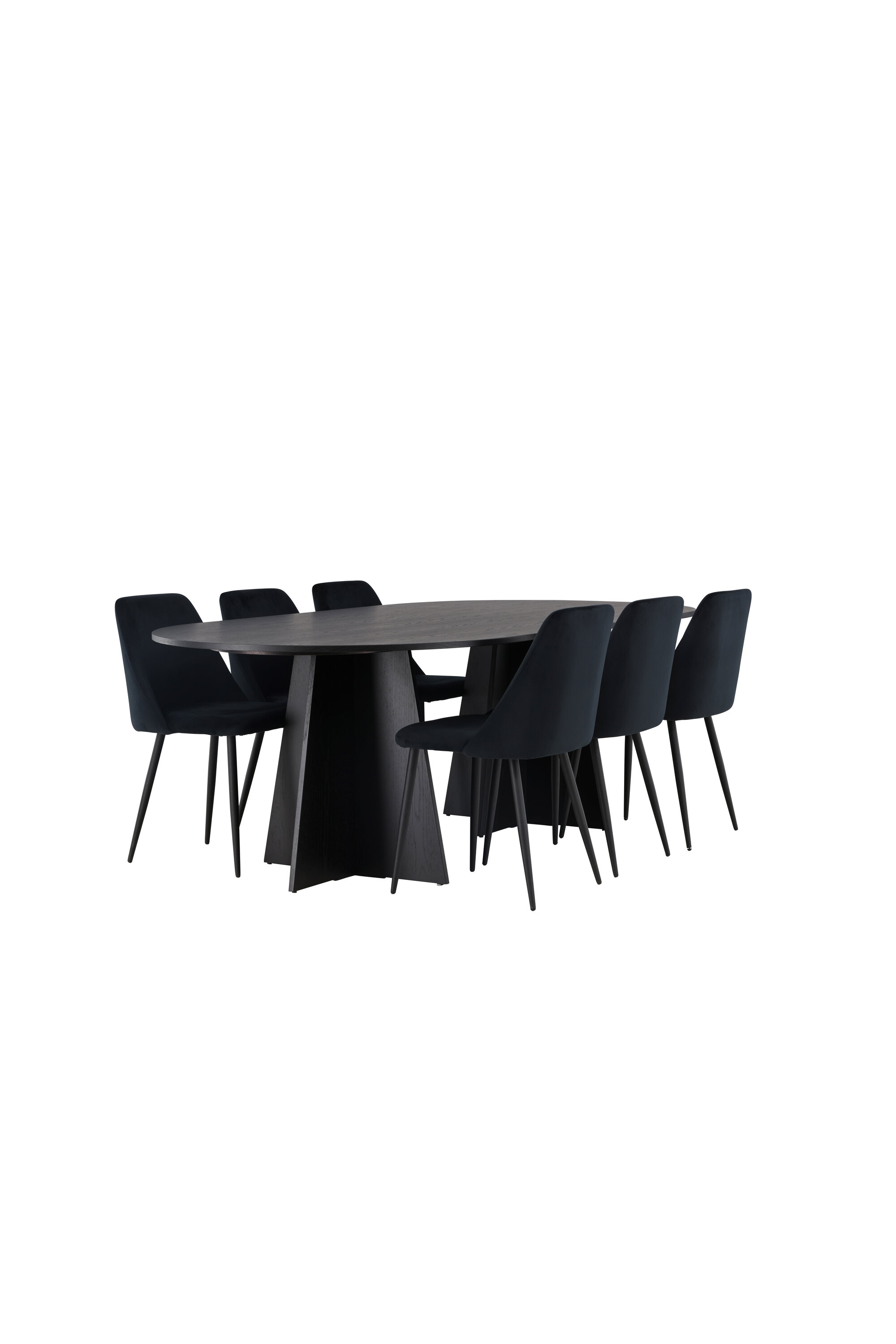 Siin on ideaalses koosluses Night sarja mustad söögitoolid. Täielikult polsterdatud sametmustast kangast istmetega öösöögitoolid pakuvad mugavust, milles viibite hea meelega pikkade ja veetlevate einete ajal. Sobivad mustad toolijalad annavad kogu fookuspunktile elegantse ja ühtse esteetika. Lisaks loob iga tool toas luksusliku sära ja aitab luua teie külalistele kutsuva atmosfääri.