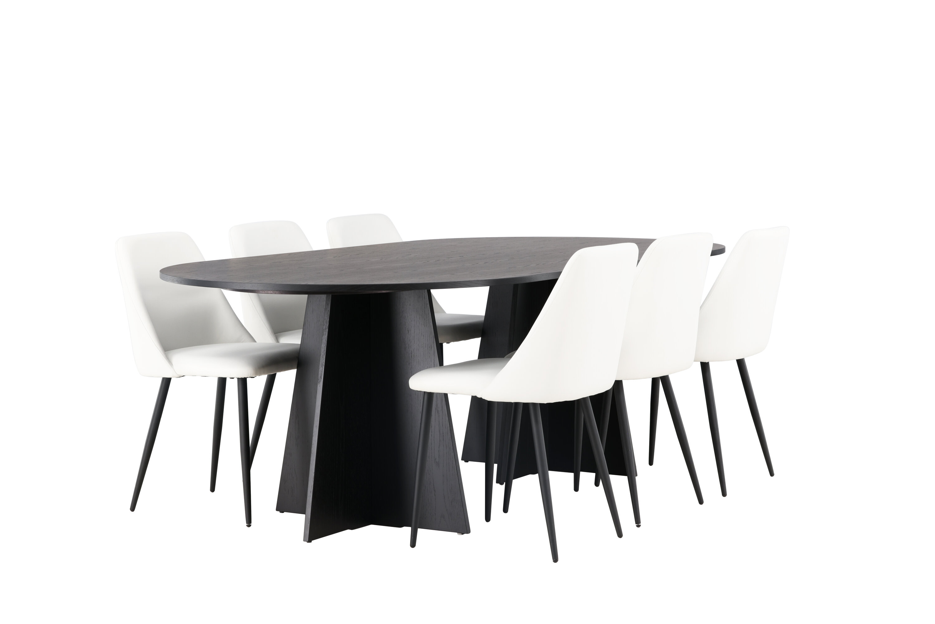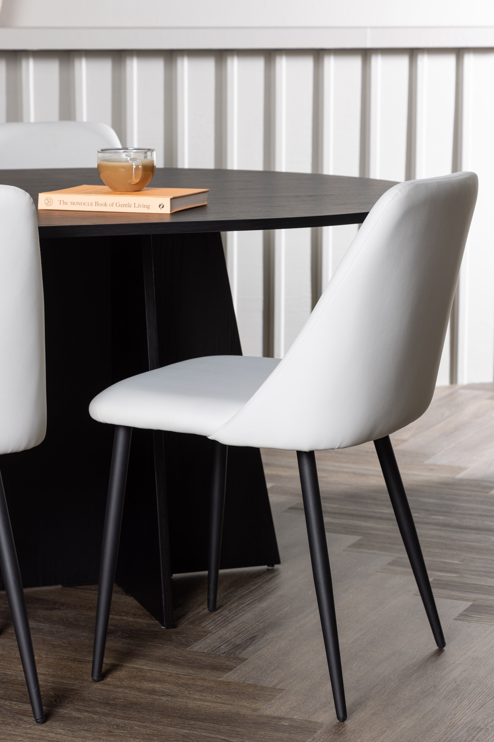 Musta Bootcut söögilaua kõrvale pakume oma valgeid toole sarjast Night. Tooli täielikult polsterdatud valgest PU-nahast iste on sama luksuslik kui ka elegantne. Mustad terasest toolijalad lisavad moodsat hõngu ja täiendavad kaunilt laua disaini. Mida veel võiks soovida?