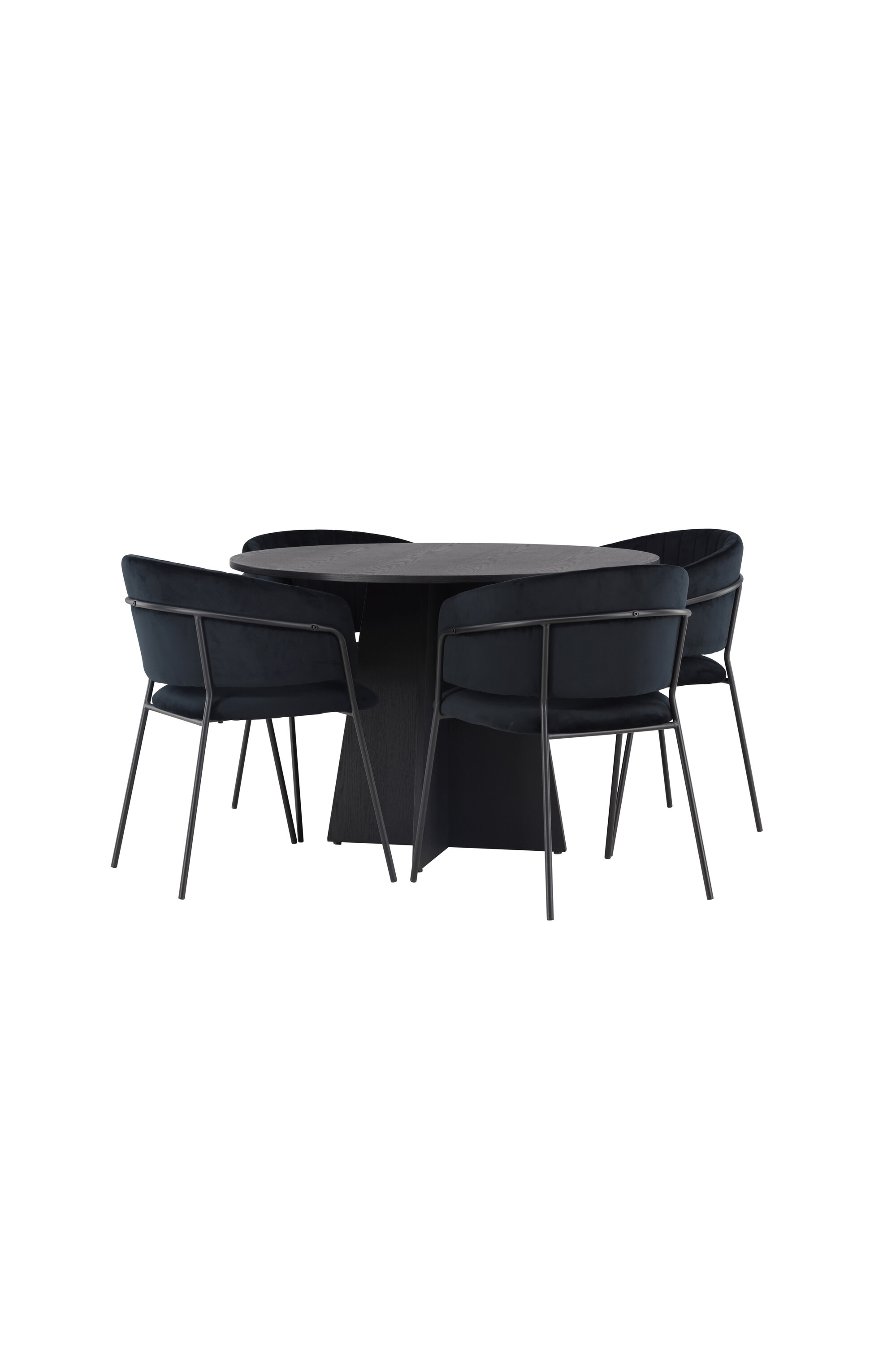 Tõstke oma kodu stiilitaset ajatu ümara söögigrupiga, mis kutsub teid edaspidi maitsvatele einetele! Meie ümmargune söögilaud Bootcut avaldab muljet oma õhukese lauaplaadi ja disainirikka raamiga, mis annab lauale ainulaadse iseloomu. Valmistatud läbivalt mustast MDF-st, spooniga, mis muudab elava materjali elegantselt nähtavaks. Laua mõõdud: 110 cm.