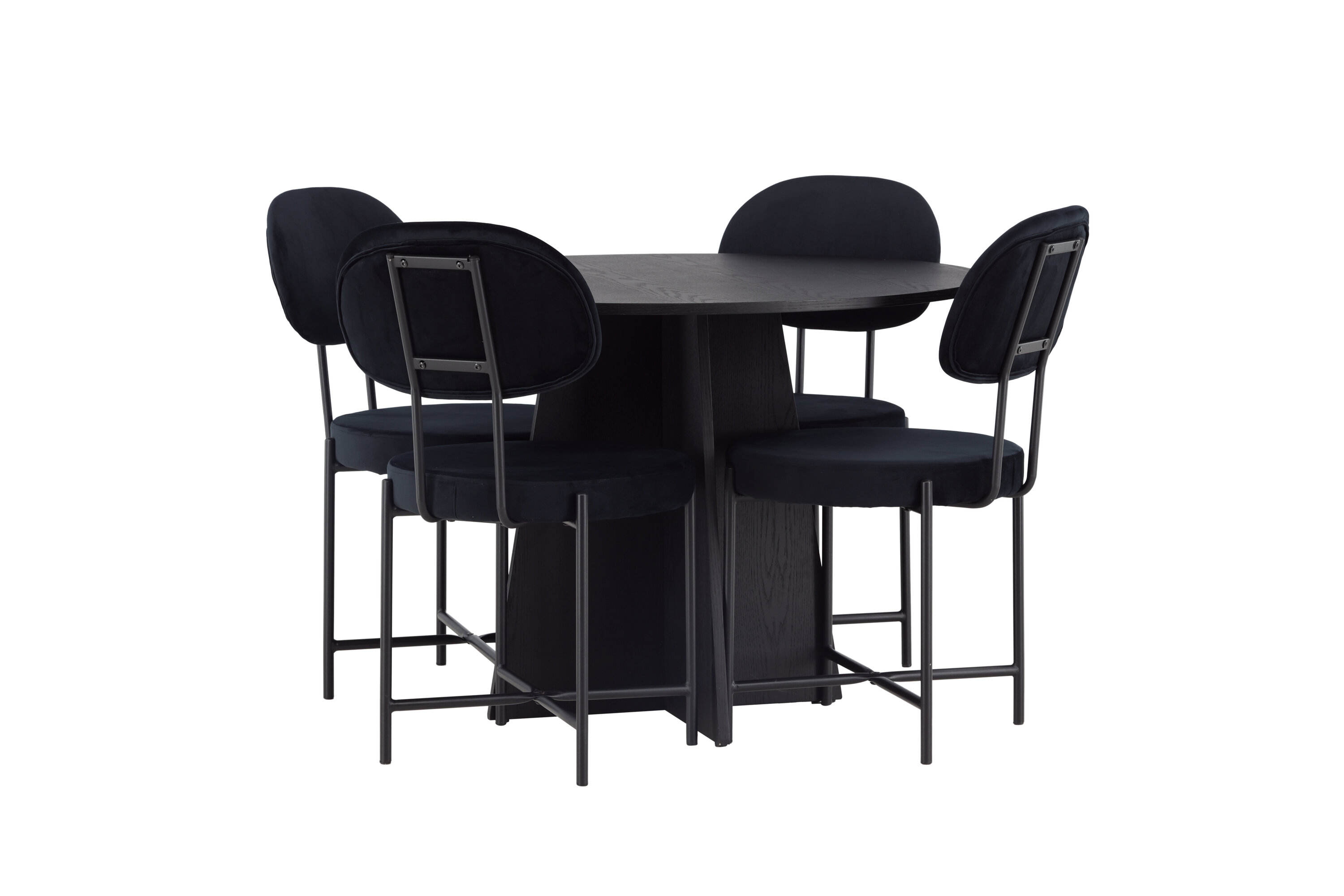 Meie kokkusobivad Stella seeria toolid täiustavad elamust oma trendika skandinaavialiku disainiga. Toolid ei paku mitte ainult veetlevat mugavust, vaid lisavad ka luksust oma musta sametise kanga ja minimalistlike mustade terasest jalgadega.