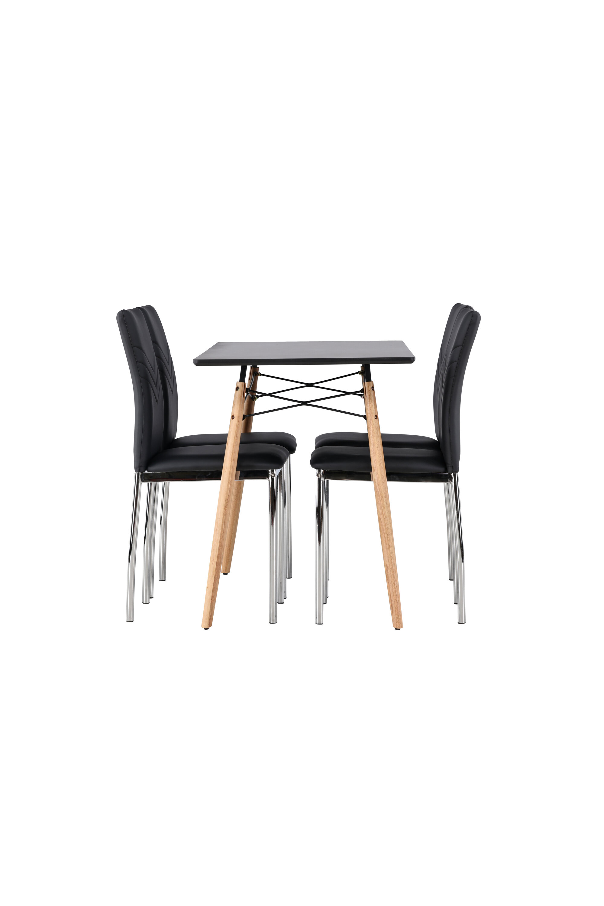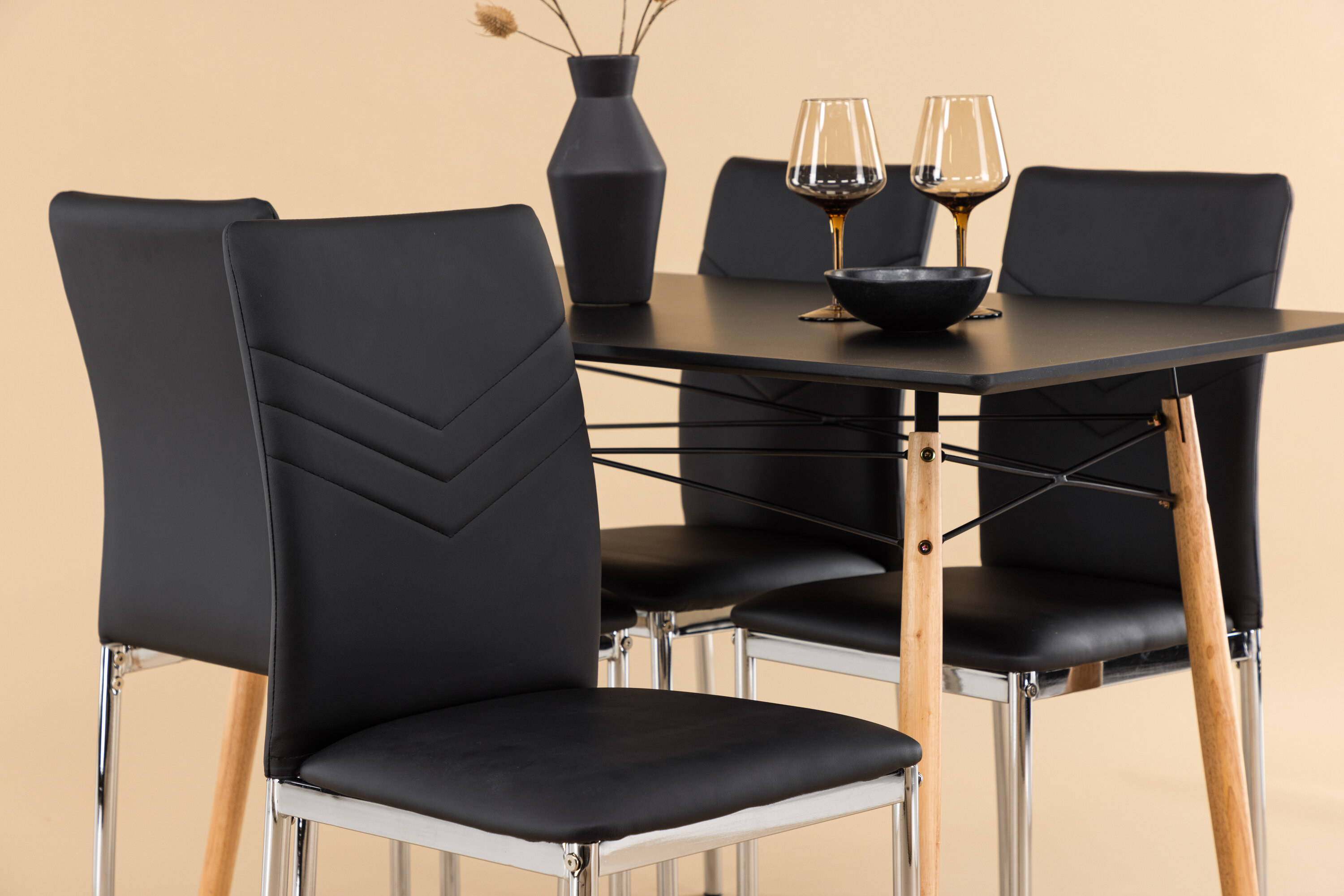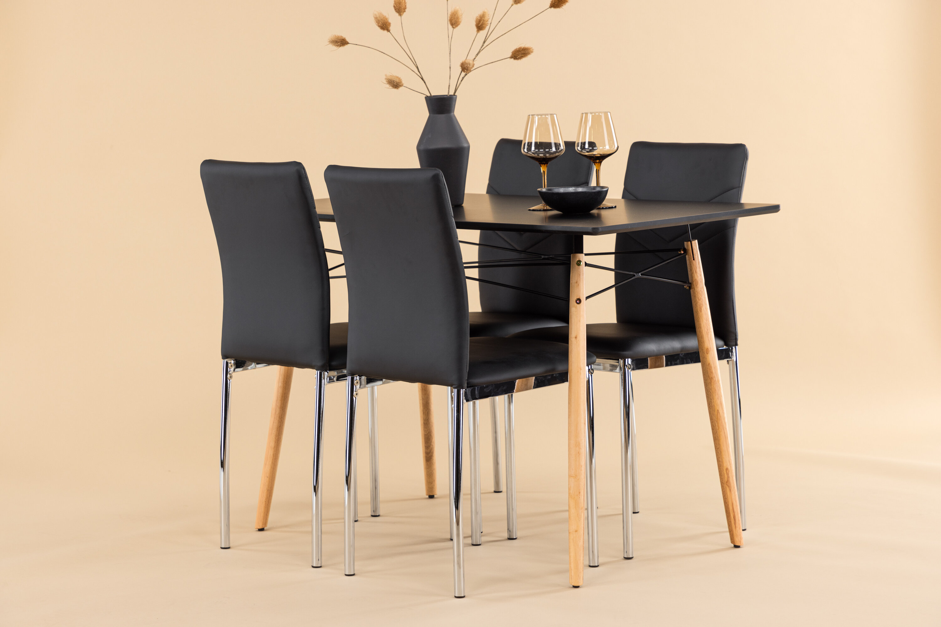 Koos Danburi lauaga on söögikomplekti komplekteeritud si Lily toolidega. Need elegantsed mustad PU-materjalist toolid lisavad teie söögiruumile rafineeritud hõngu. Mugavate istumiskohtade ja kaasaegse disainiga Lily toolid täiendavad suurepäraselt Danburi laua elegantsi, luues ühtse atmosfääri.