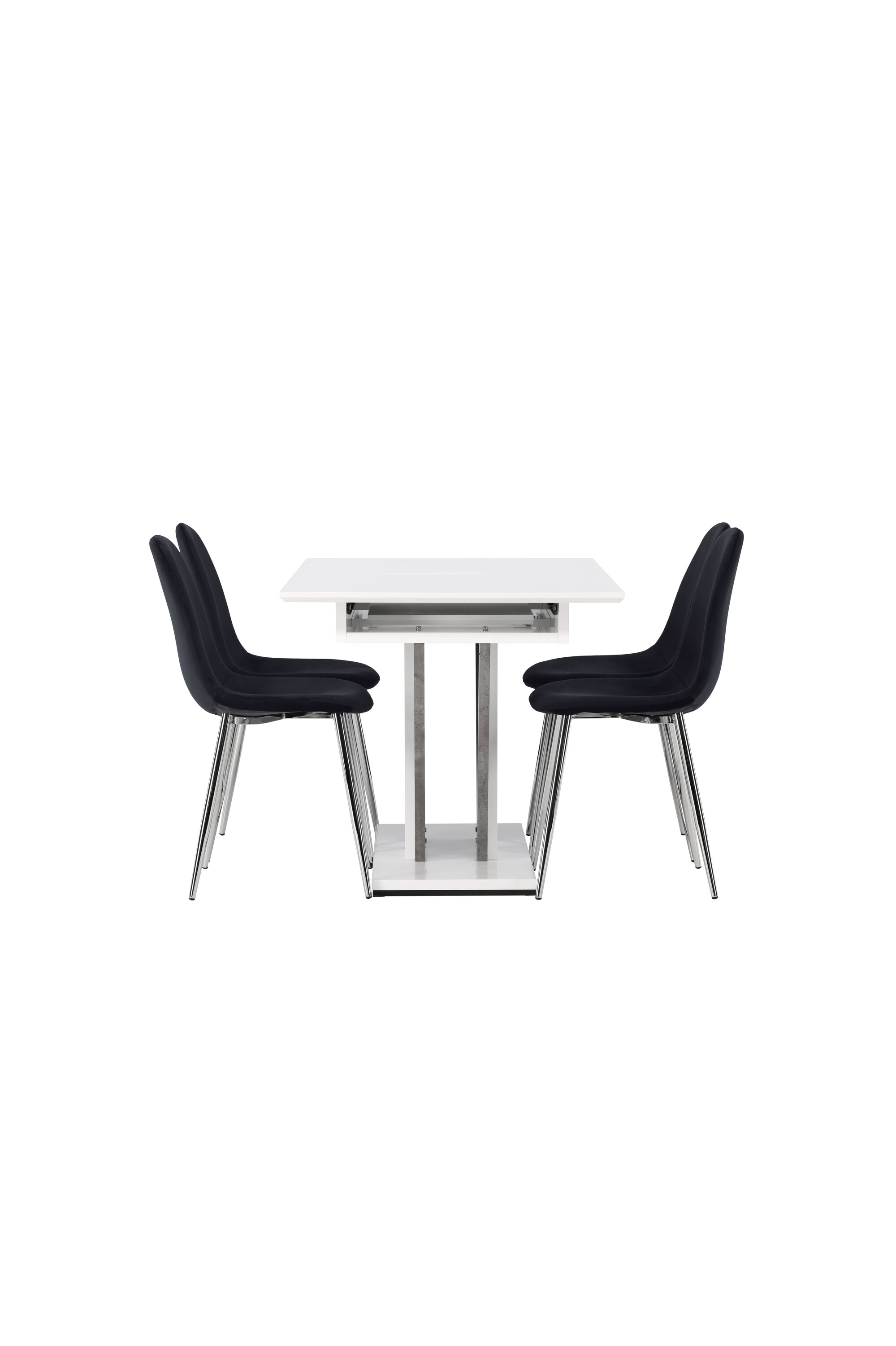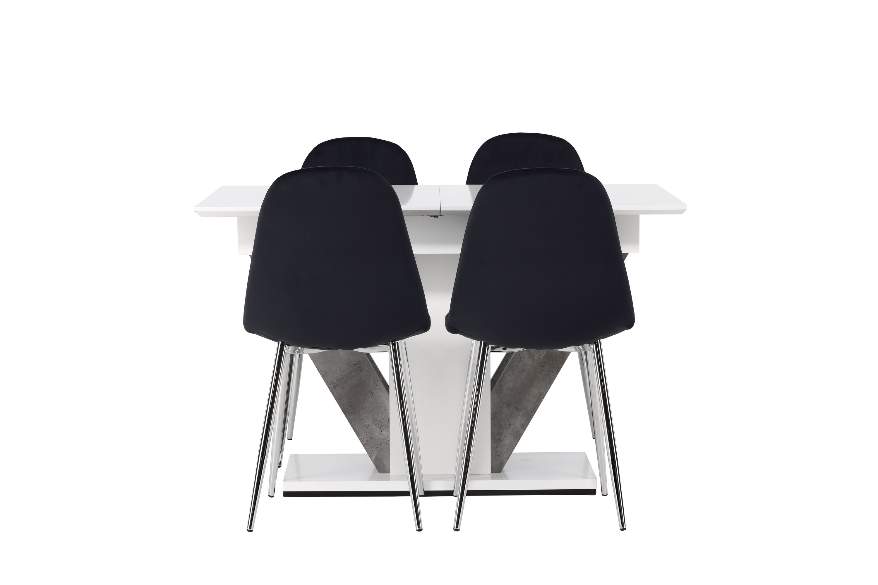 Koos meie Polari seeria samettoolidega saab sellest söögikomplektist terviklik. Polari toolid avaldavad muljet oma täielikult polsterdatud disaini, elegantsete kroomitud metallist jalgade ja veidi ümardatud seljatoega, mis tagavad täiendava mugavuse. Iste on kaetud sileda musta sametkangaga, mis tundub luksuslik ja mugav istuda. Koju hubast sööki nautides peaks olema suurepärane tunne!