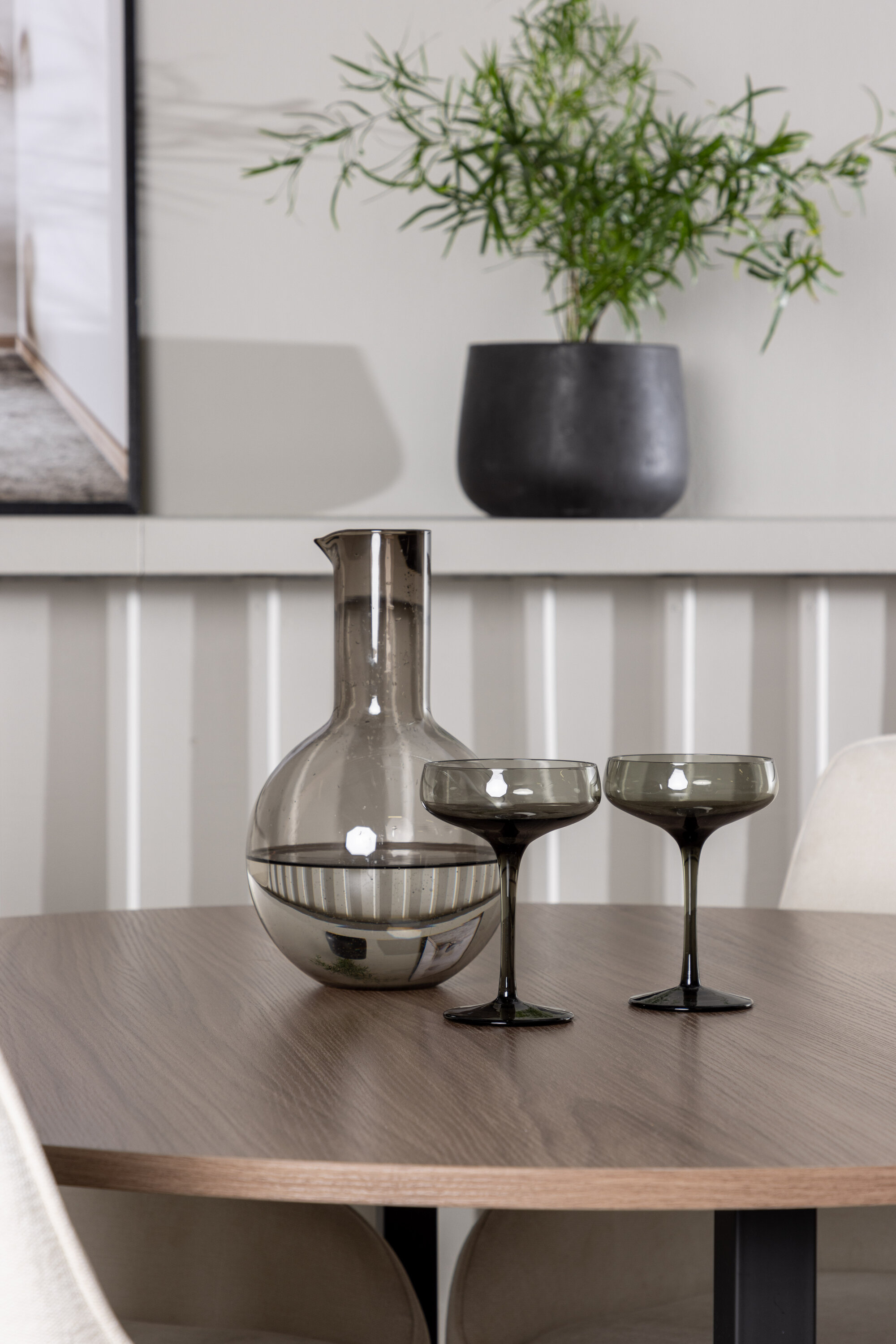 Ümmargune söögilaud Durango on valmistatud detailidele hoolika tähelepanuga. Pähklivärvi MDF lauaplaat loob ruumi sooja ja kutsuva tunde. Mustast terasest sirged lauajalad moodustavad põrandale ristikujulise mustri, pakkudes stabiilsust, lisades samas klassikalisele disainile moodsat hõngu. Laua mõõdud: 120 cm.