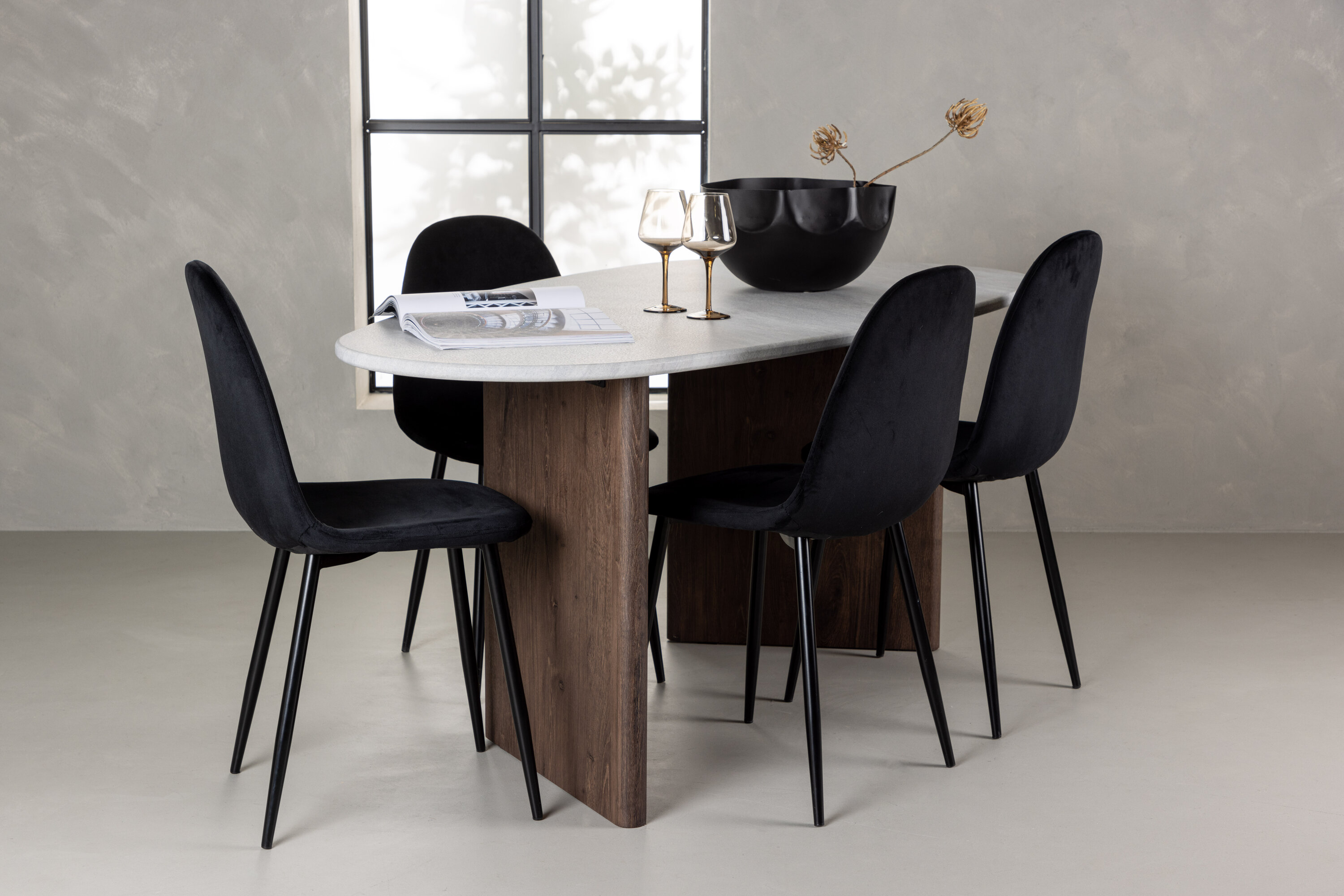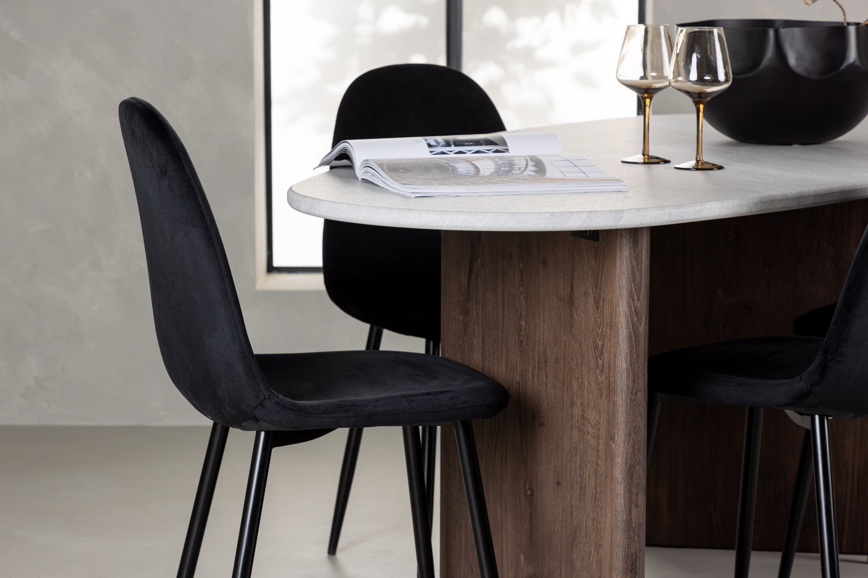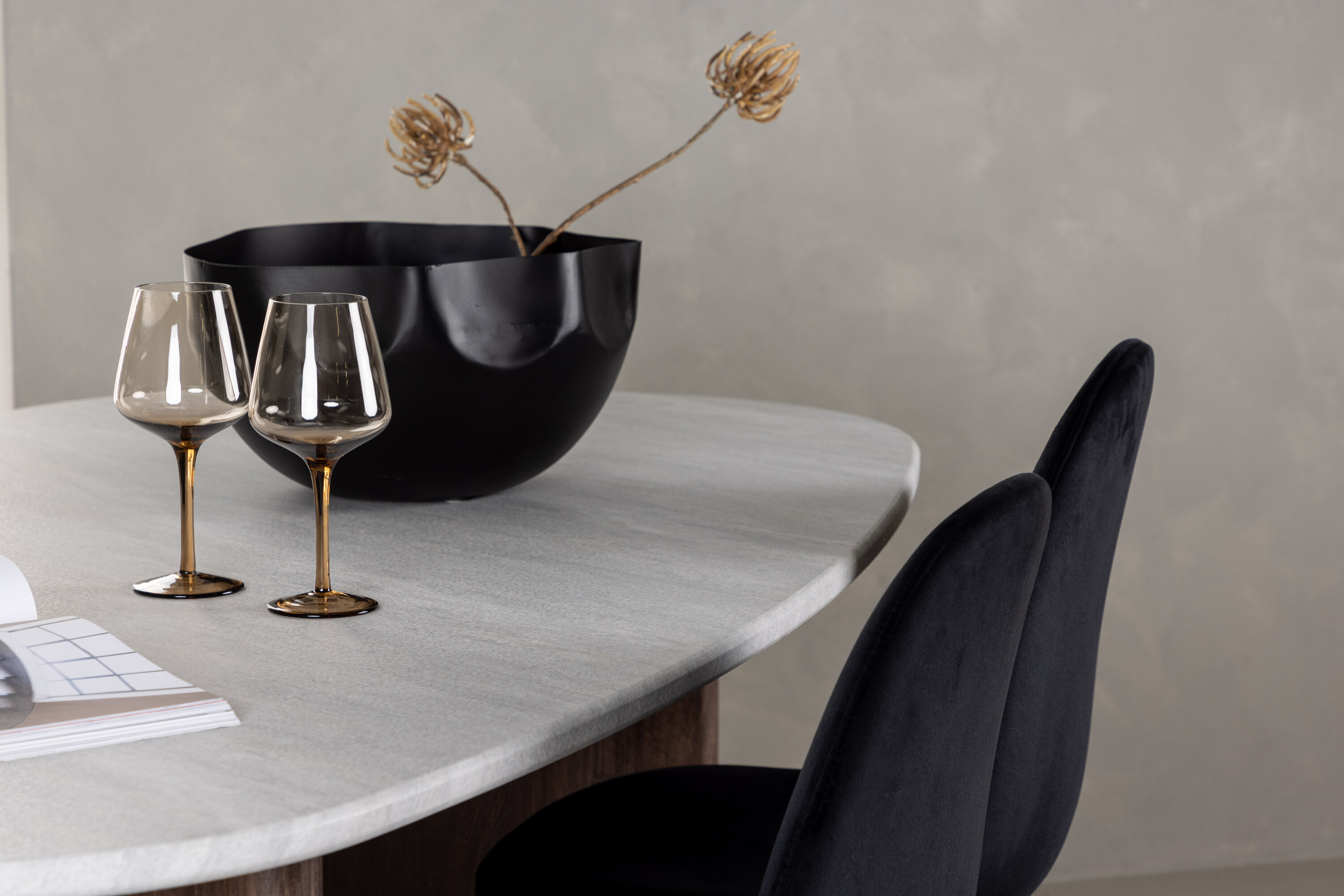 Täiusliku kompositsiooni loomiseks oleme selle sidunud meie Polari sarja mustade toolidega. Need toolid avaldavad muljet oma täielikult polsterdatud disaini, klassikaliste musta pulbervärvitud metallist jalgade ning pehmest mustast sametkangast seljatugi ja istmega. Mahukas polster pakub täiendavat mugavust, võimaldades istuda tundide kaupa söögilaua taga ilma, et tahaksid püsti tõusta. Siit saate kõike, mida vajate, et kutsuda pere ja sõbrad tulevikus meeldivatele õhtusöökidele. Küpseta midagi maitsvat, kata ilusti laud ja istuge maha, et veeta üks armas hetk koos!