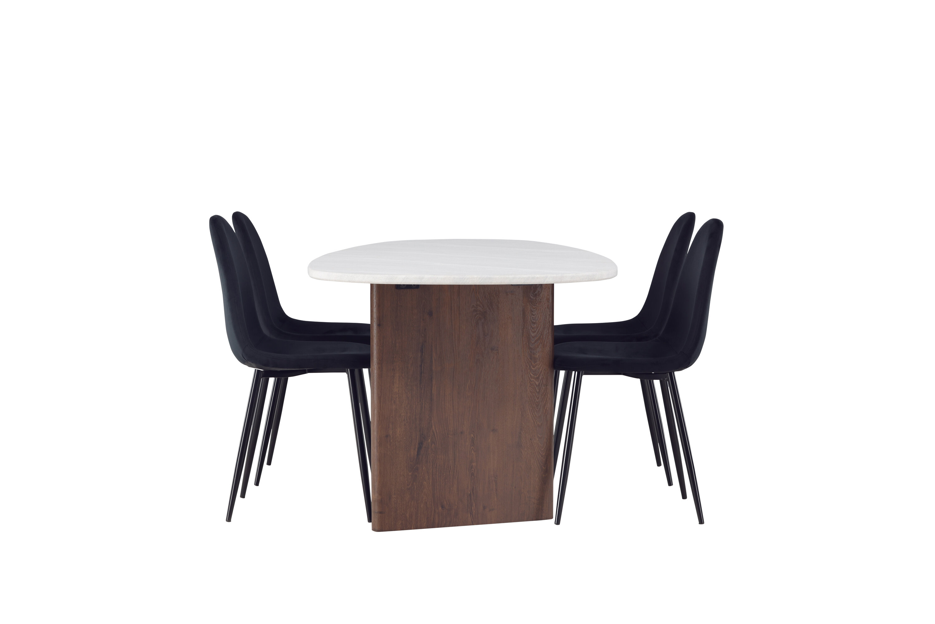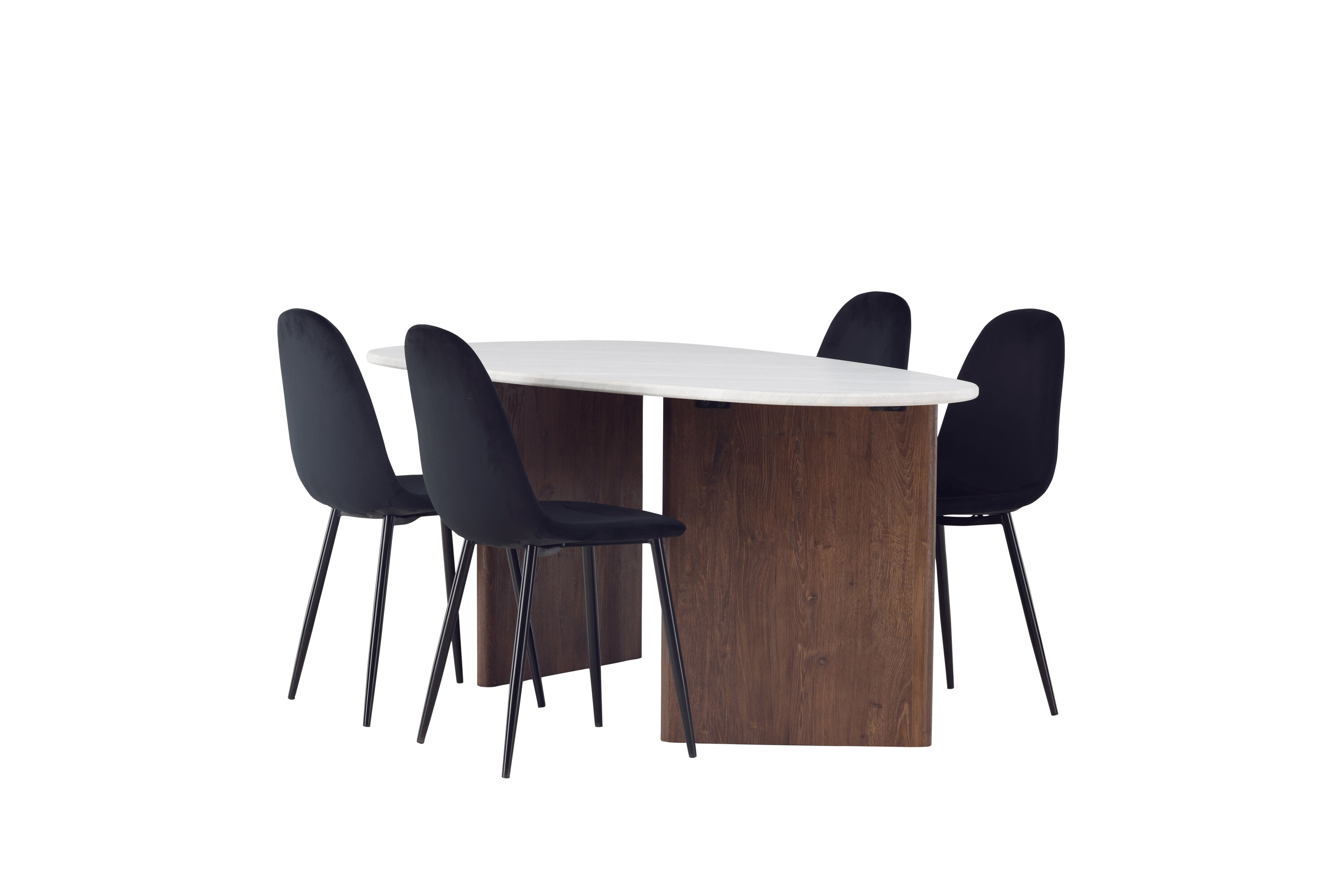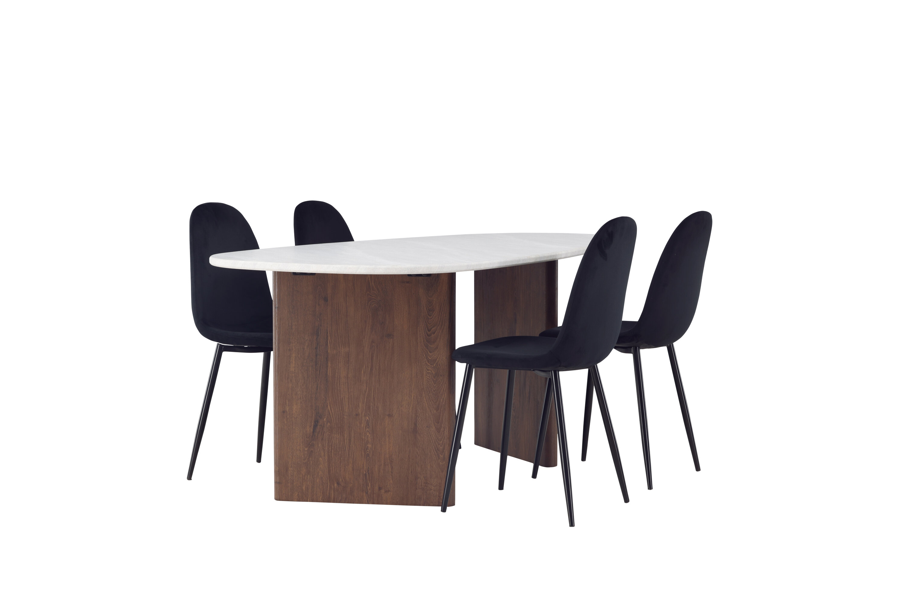 Täiusliku kompositsiooni loomiseks oleme selle sidunud meie Polari sarja mustade toolidega. Need toolid avaldavad muljet oma täielikult polsterdatud disaini, klassikaliste musta pulbervärvitud metallist jalgade ning pehmest mustast sametkangast seljatugi ja istmega. Mahukas polster pakub täiendavat mugavust, võimaldades istuda tundide kaupa söögilaua taga ilma, et tahaksid püsti tõusta. Siit saate kõike, mida vajate, et kutsuda pere ja sõbrad tulevikus meeldivatele õhtusöökidele. Küpseta midagi maitsvat, kata ilusti laud ja istuge maha, et veeta üks armas hetk koos!