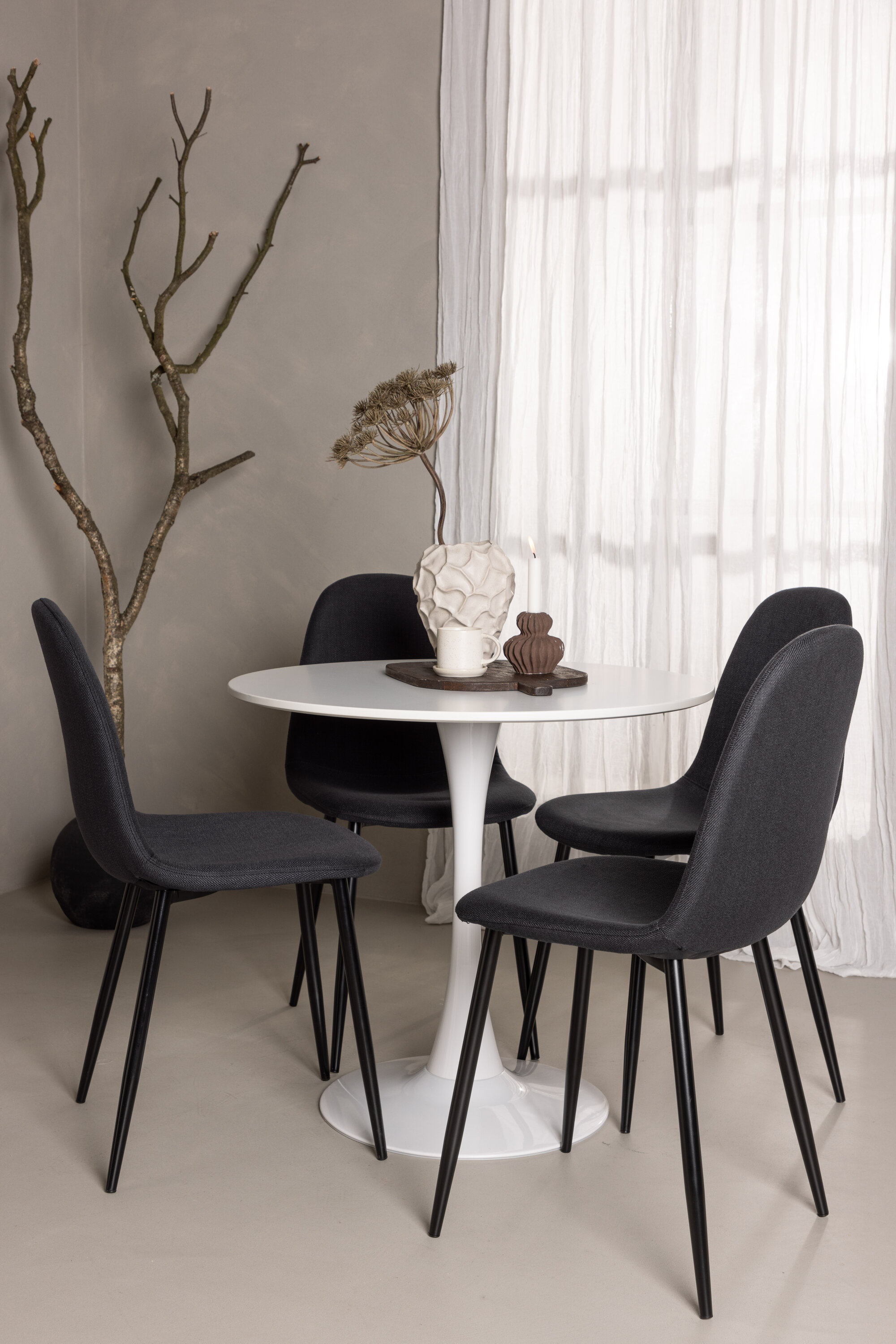Kaasasolevad Polari toolid on loodud selle söögikomplekti täiuslikult täiendama. Need neli sügavmustas toonis tooli annavad valge lauaga kombineerituna kontrastse ja elegantse esteetika. Toolid pole mitte ainult visuaalselt atraktiivsed, vaid ka mugavad, võimaldades nautida pikki ja meeldivaid eineid.