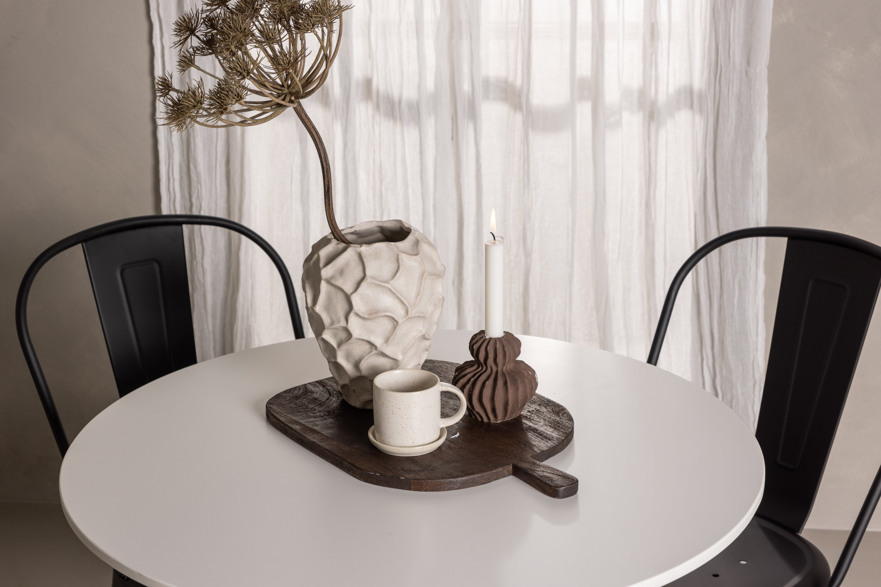 Lummavalt valge ümara pinna ja 80 cm läbimõõduga Hamdeni laud on teie kodus kesksel kohal. See pole lihtsalt laud; see on vestluse alustaja, moodsa elegantsi sümbol ja hea maitse avaldus. Olenemata sellest, kas kutsute külalisi juhuslikule hilisele hommikusöögile või peenele õhtusöögile, pakub Hamdeni laud ideaalset ruumi koosviibimisteks ja meeldejäävateks eineteks.