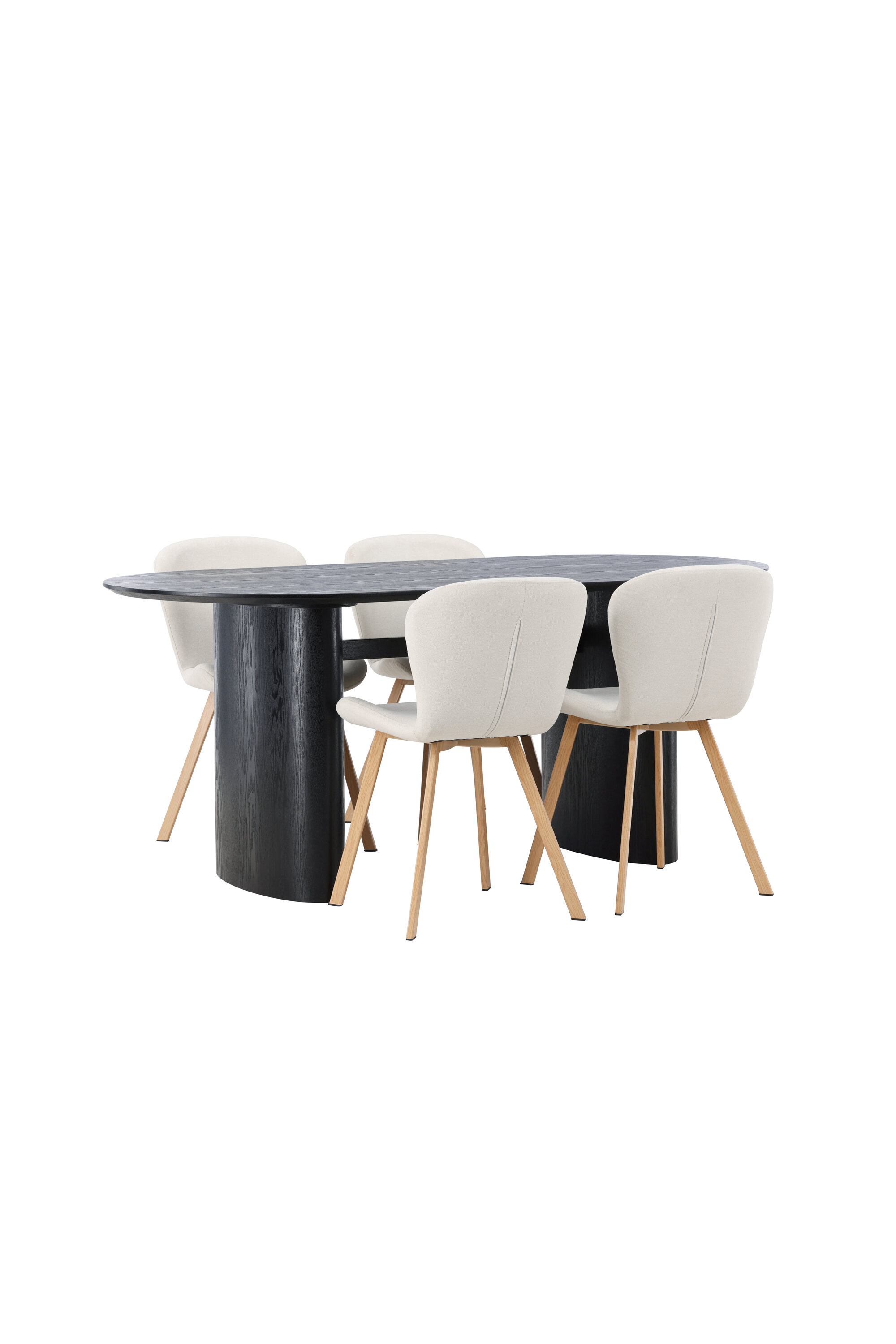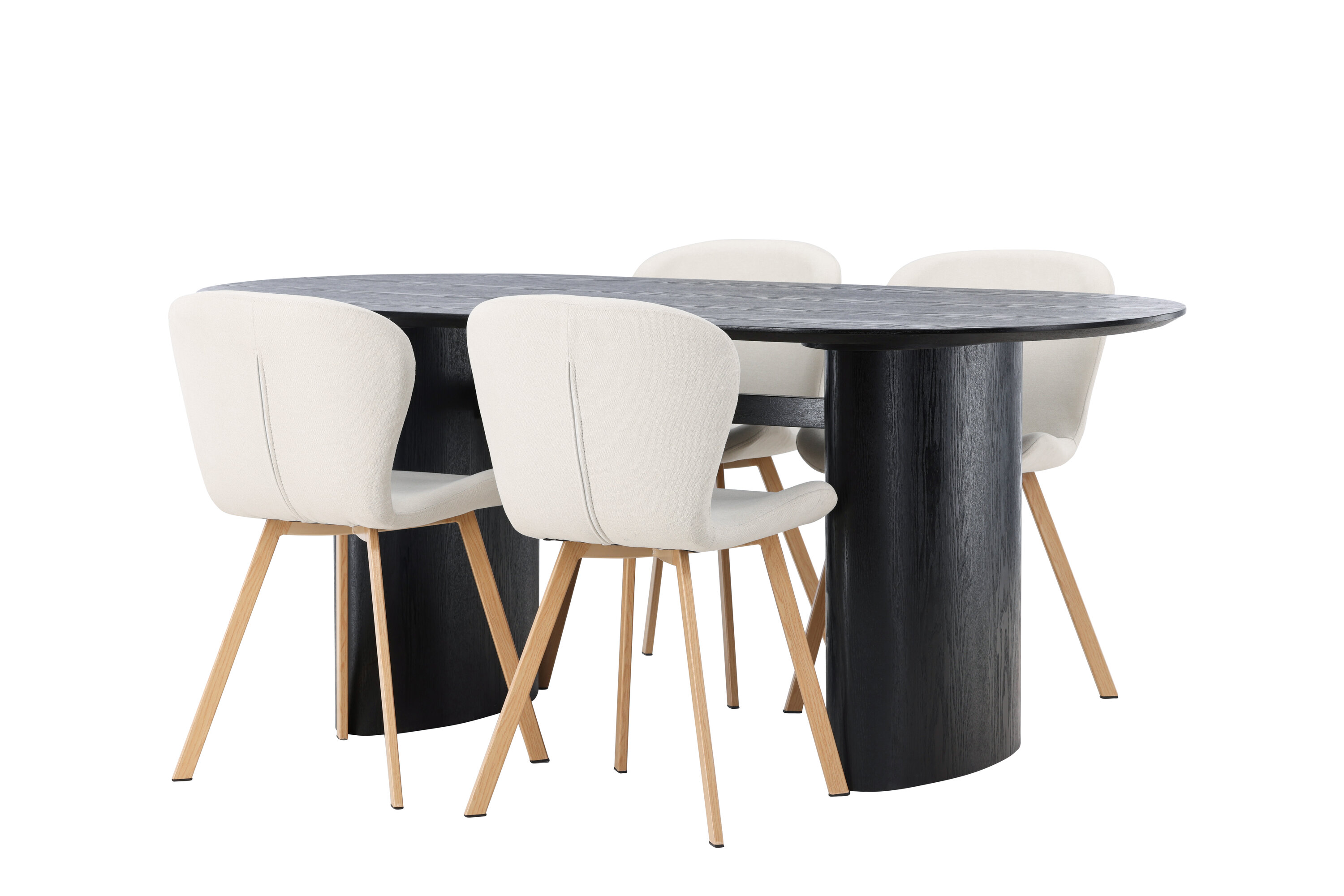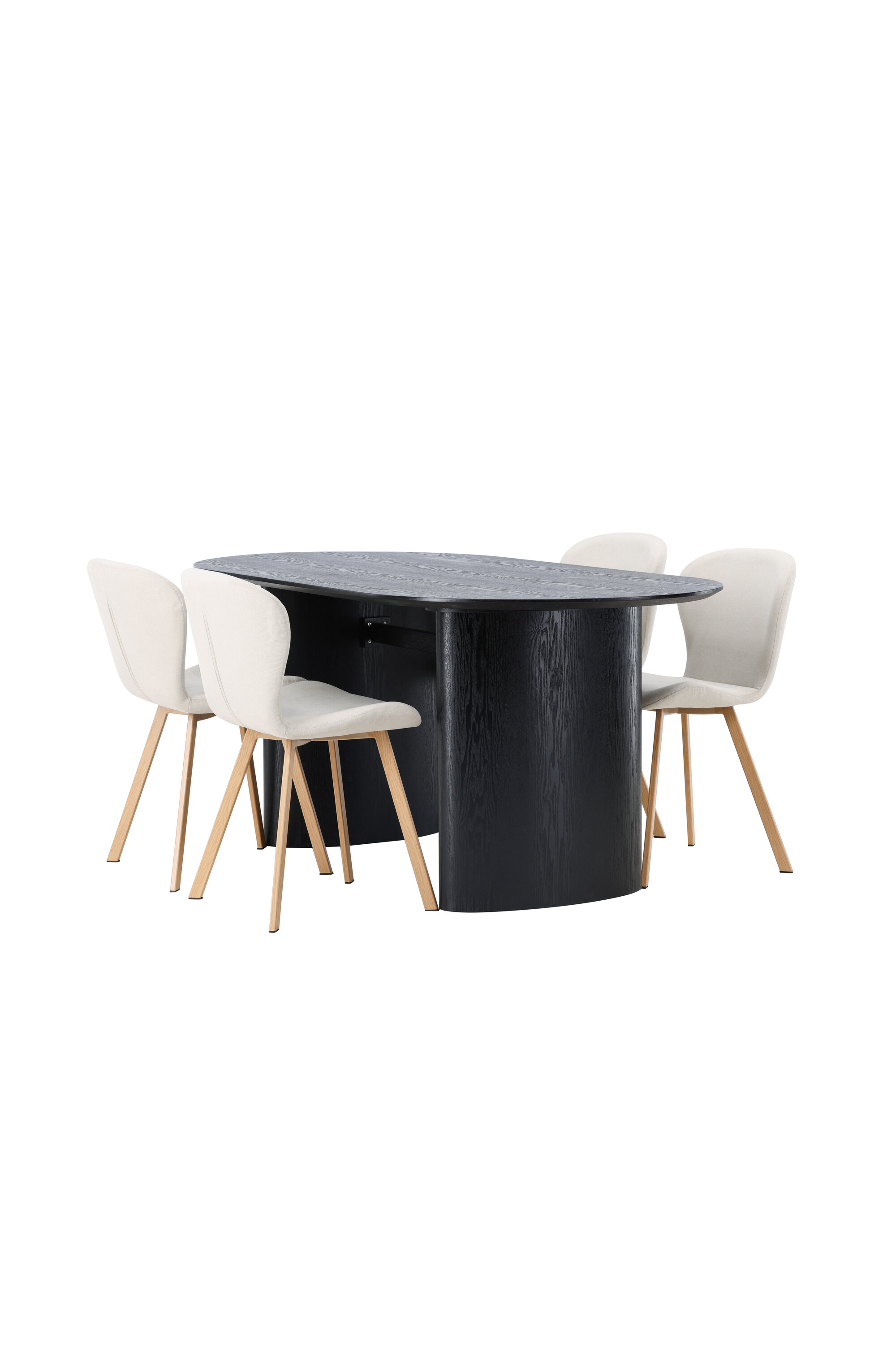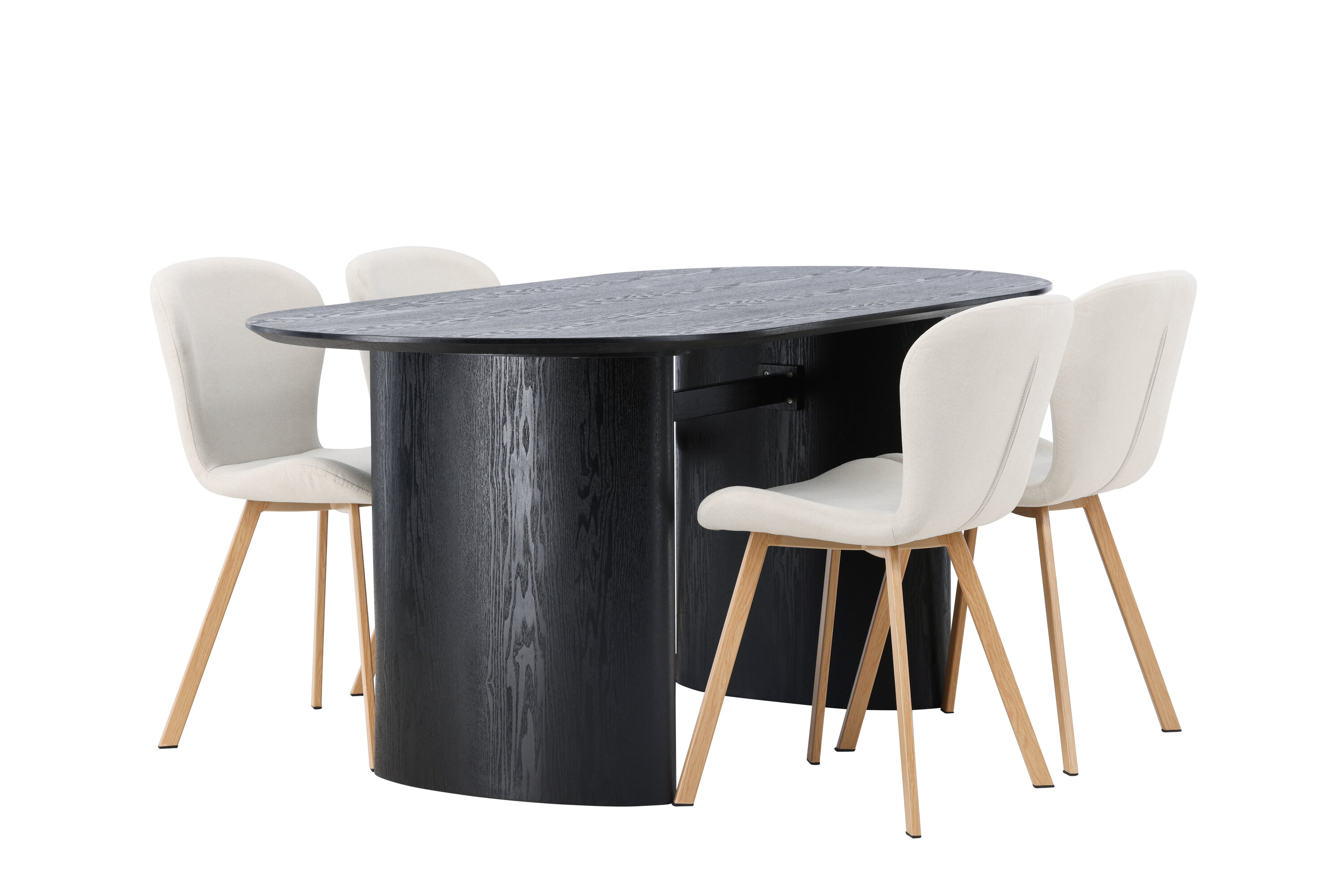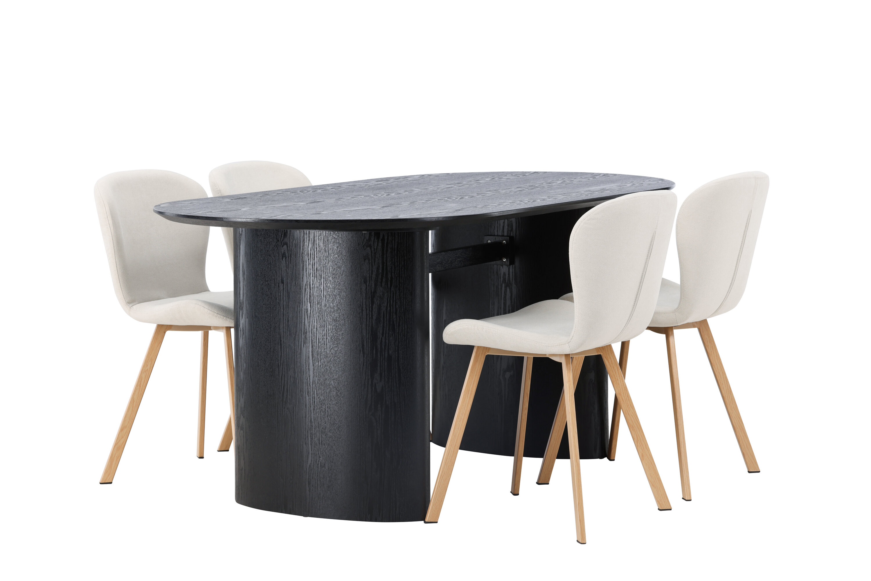 Loo elutoas mugav õhkkond! Musta värvi ovaalne söögilaud Isolde on moodsa disainiga ovaalse MDF-plaadist lauaplaadi ja tugeva raamiga, mis jätab ühtlase mulje. Elav materjal annab pilgupüüdjale maitseka liikumise. Siin imelises koosluses Lilja sarja beežide söögitoolidega. Toolil on painduv ümmargune disain, mille iste on beežist polüesterkangast ja kergelt laienevad mustast metallist toolijalad. Vältige kompromisse stiili ja mugavuse vahel! Laua mõõdud: 180x75cm.