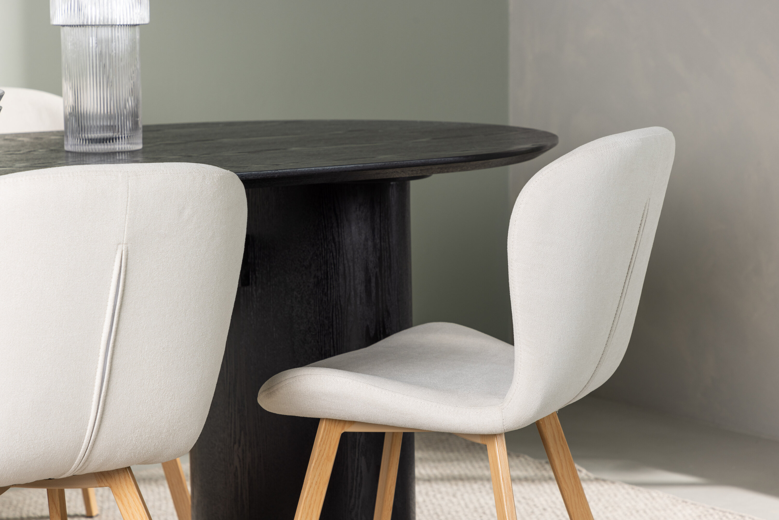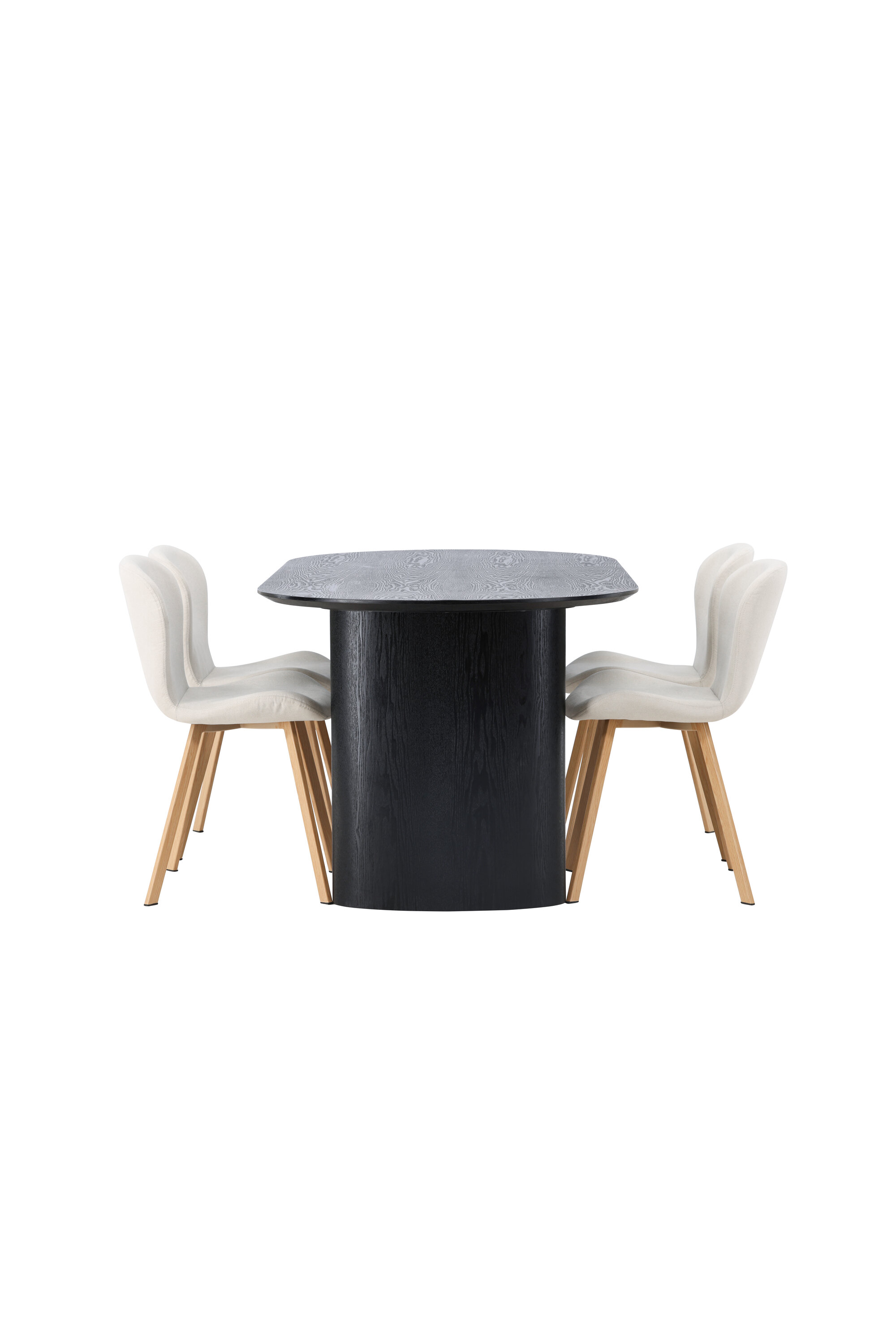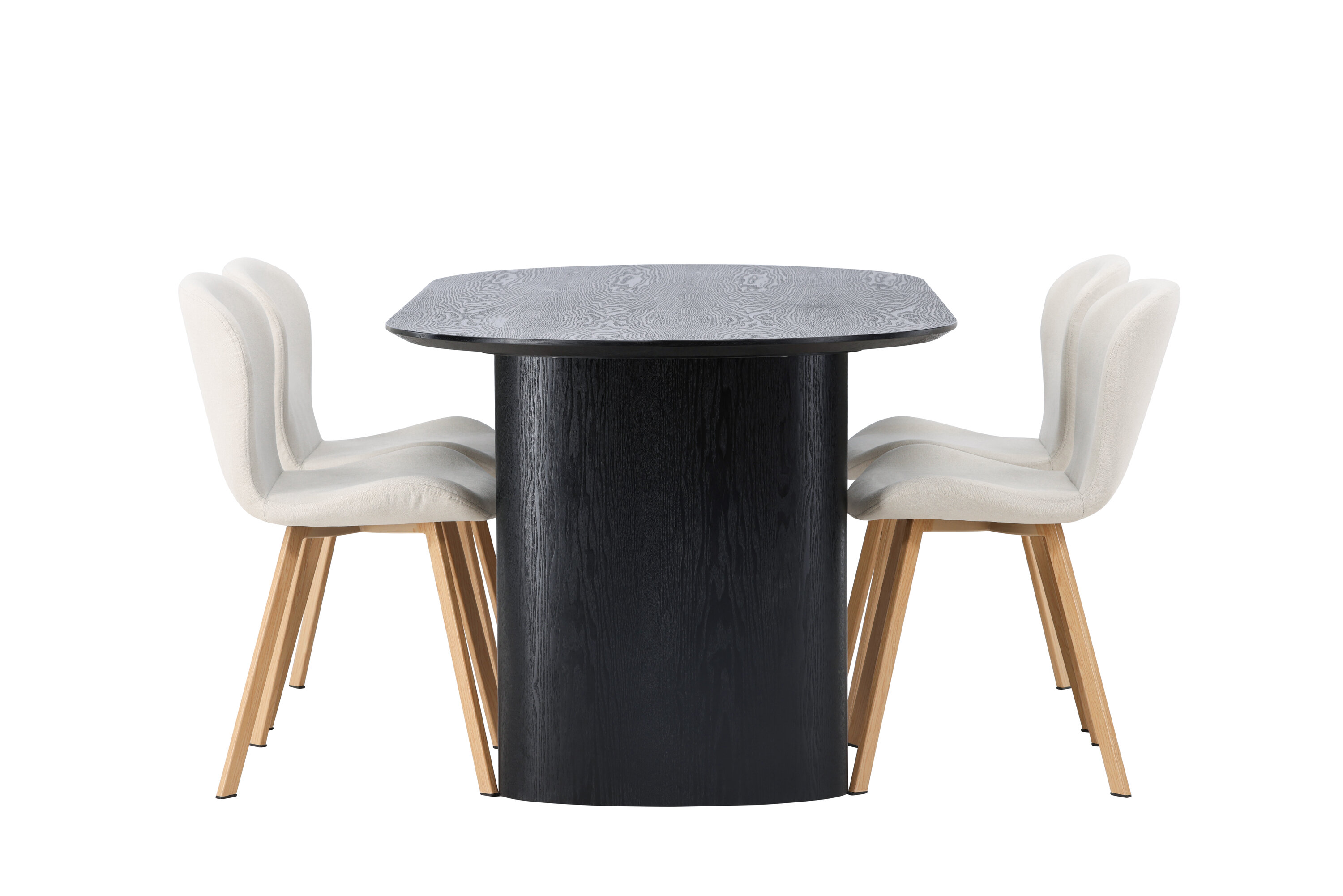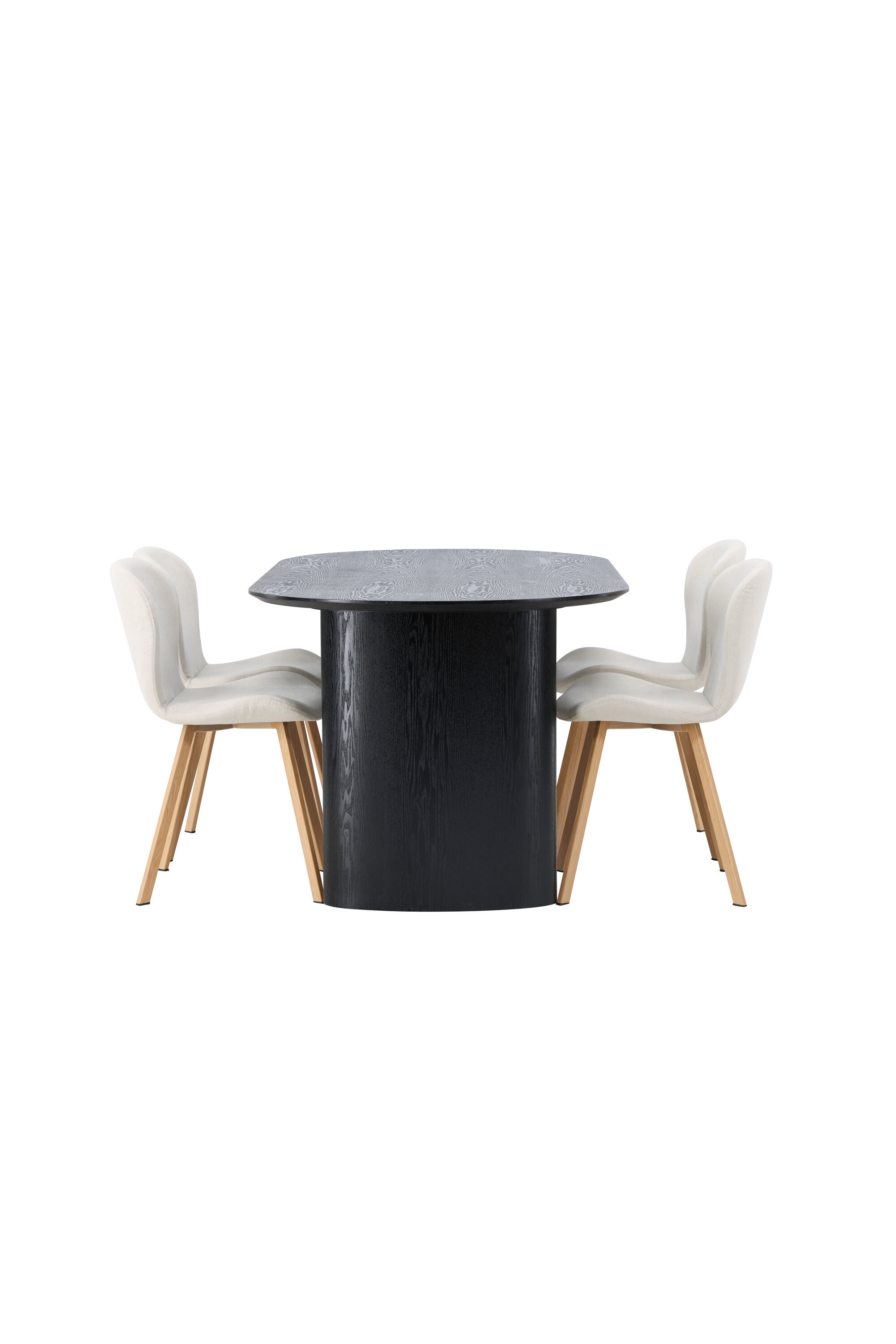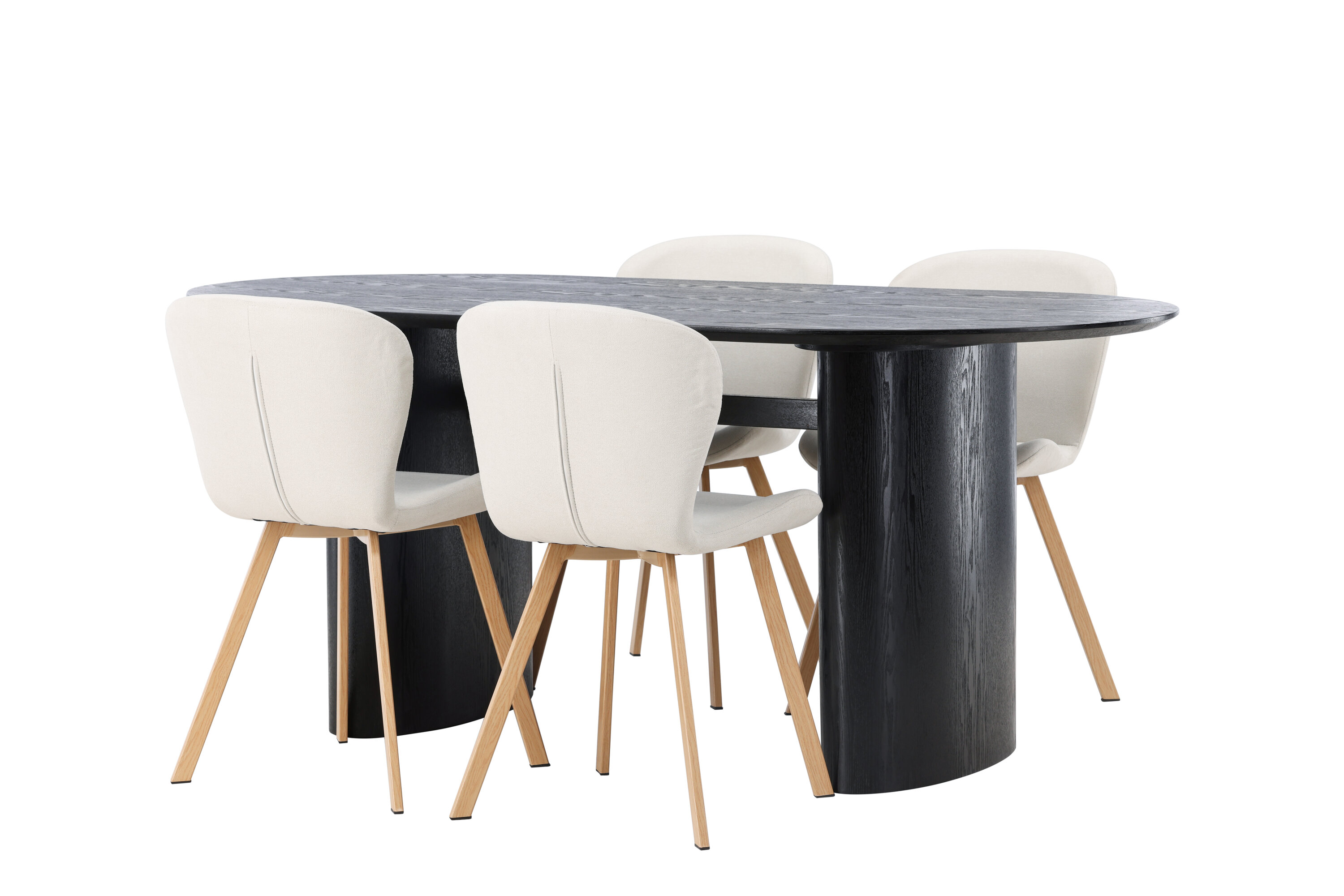 Loo elutoas mugav õhkkond! Musta värvi ovaalne söögilaud Isolde on moodsa disainiga ovaalse MDF-plaadist lauaplaadi ja tugeva raamiga, mis jätab ühtlase mulje. Elav materjal annab pilgupüüdjale maitseka liikumise. Siin imelises koosluses Lilja sarja beežide söögitoolidega. Toolil on painduv ümmargune disain, mille iste on beežist polüesterkangast ja kergelt laienevad mustast metallist toolijalad. Vältige kompromisse stiili ja mugavuse vahel! Laua mõõdud: 180x75cm.