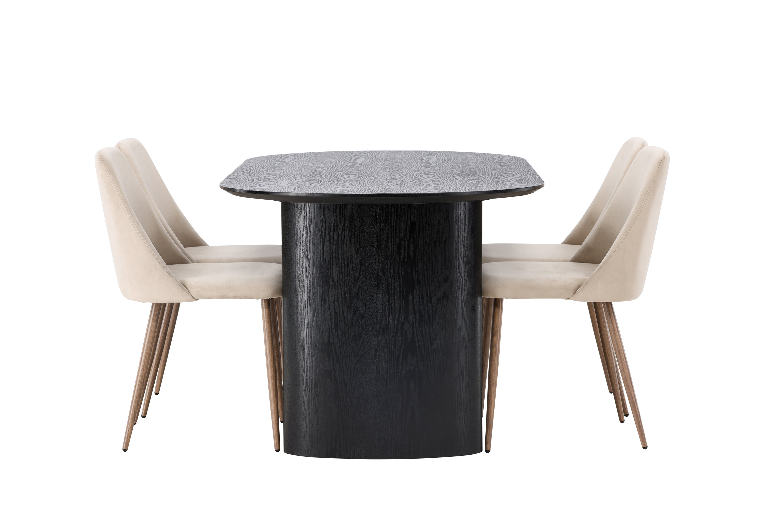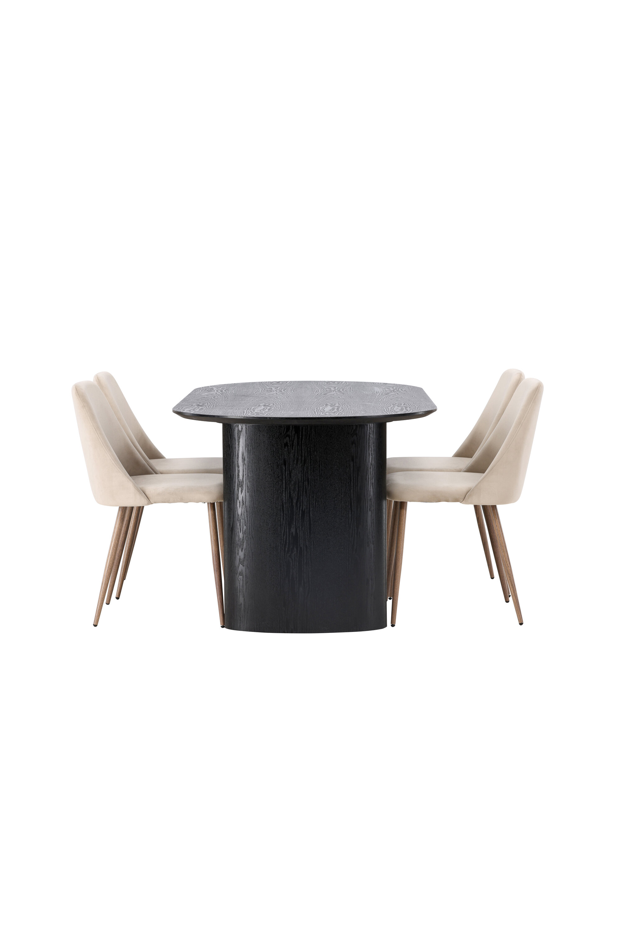 Soojad toonid ja vastupidavad materjalid! Musta värvi ovaalne söögilaud Isolde on moodsa disainiga ovaalse MDF-plaadist lauaplaadi ja tugeva raamiga, mis jätab ühtlase mulje. Elav materjal annab pilgupüüdjale armsa liikumise. Siin koos meie liivavärvi söögitoolidega sarjast Night. Toolil on täielikult polsterdatud iste pruunist sametkangast ja jalad pähklivärvi terasest. See ühendab endas parima mõlemast maailmast! Laua mõõdud: 180x75cm.